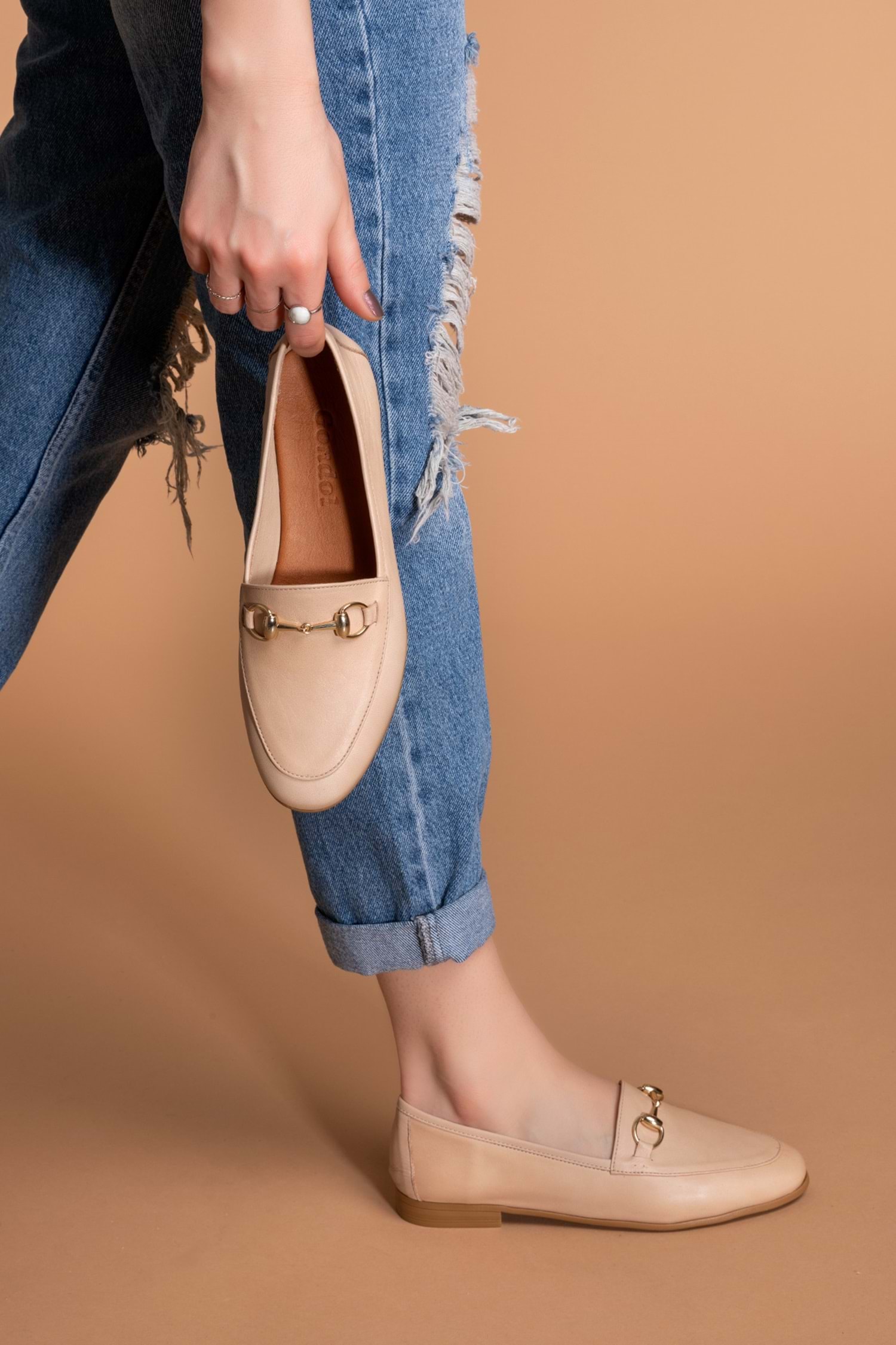 Gondol Hakiki Deri Kadın Babet iz.3501 - Bej - 38