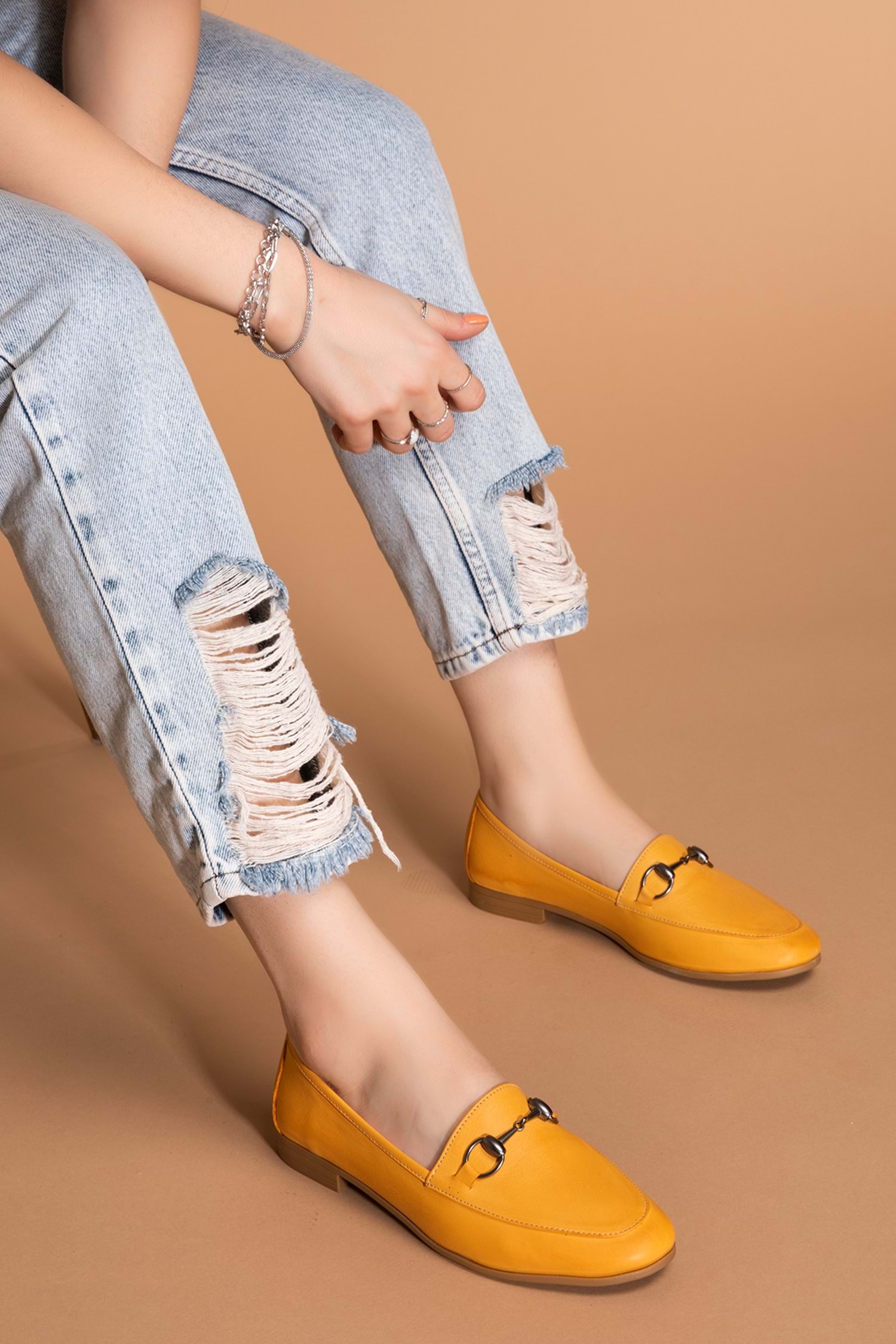 Gondol Hakiki Deri Kadın Babet iz.3501 - Sarı - 40