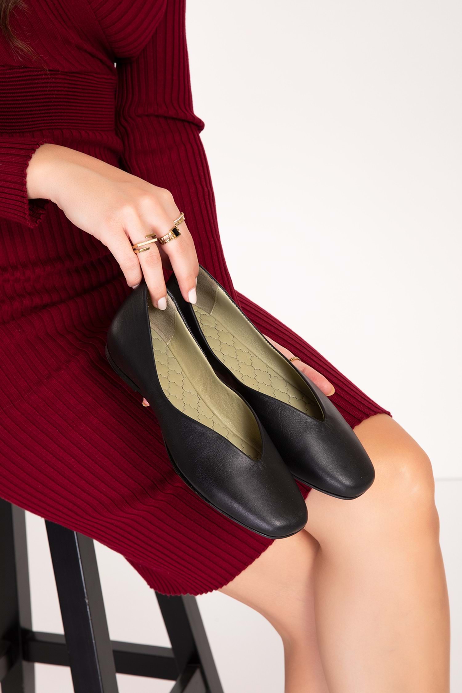 Gondol Hakiki Deri Sade Klasik Babet bel.303 - Siyah - 36