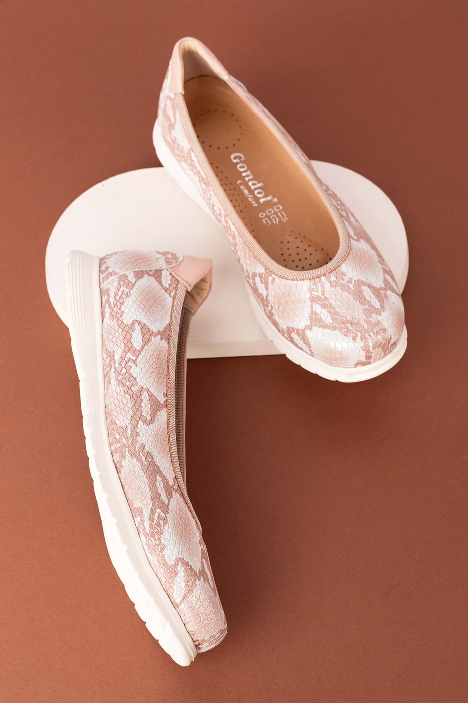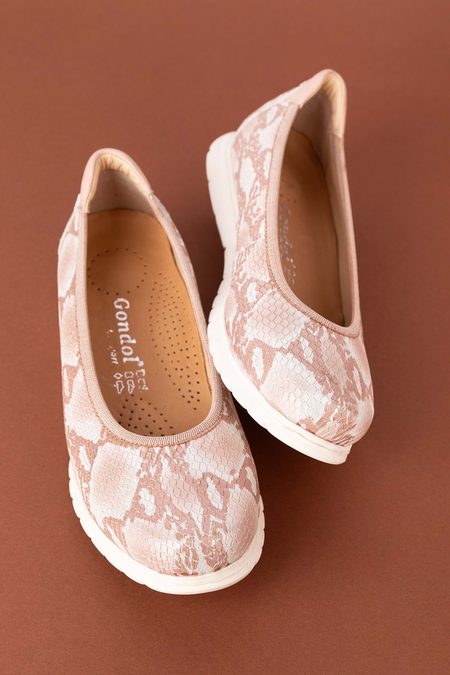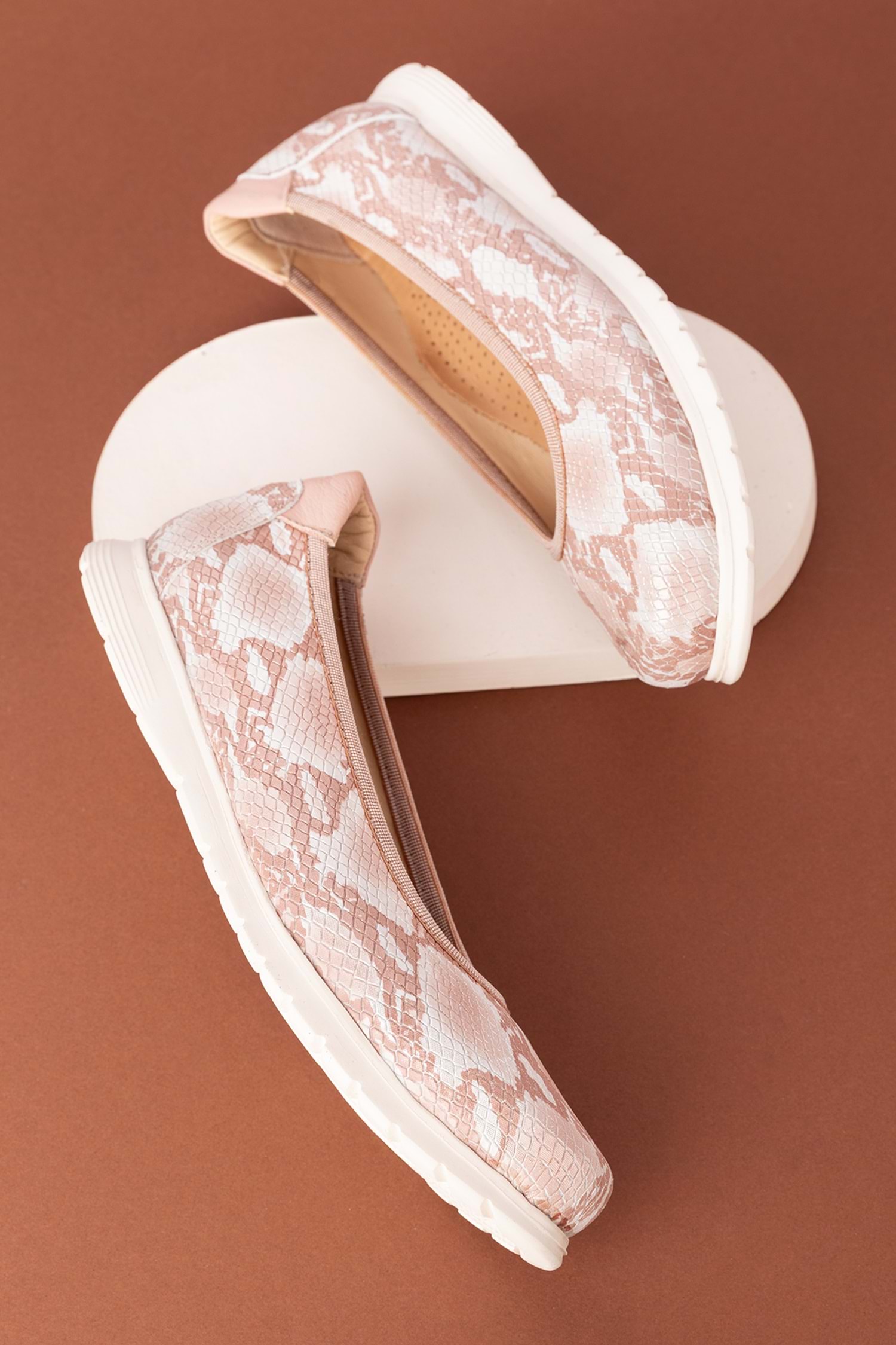Gondol Kadın Hakiki Deri Çok Hafif Rahat Günlük Babet ell.6311 - Pudra Yılan - 41