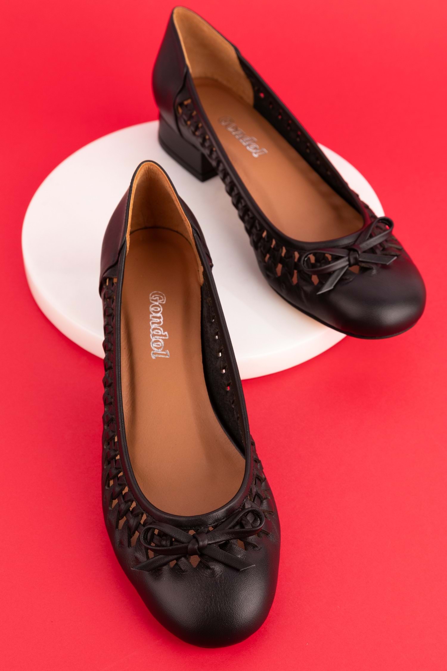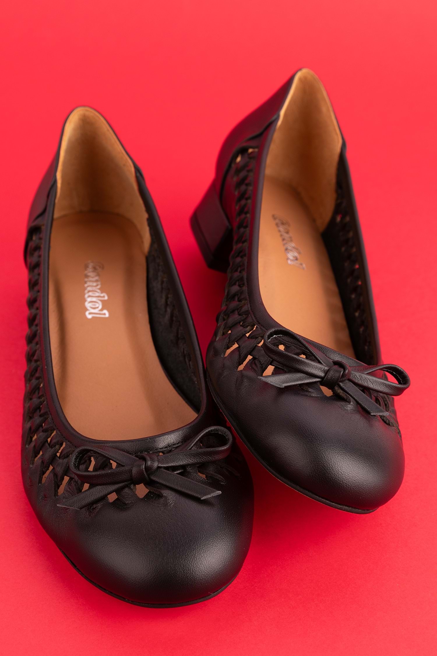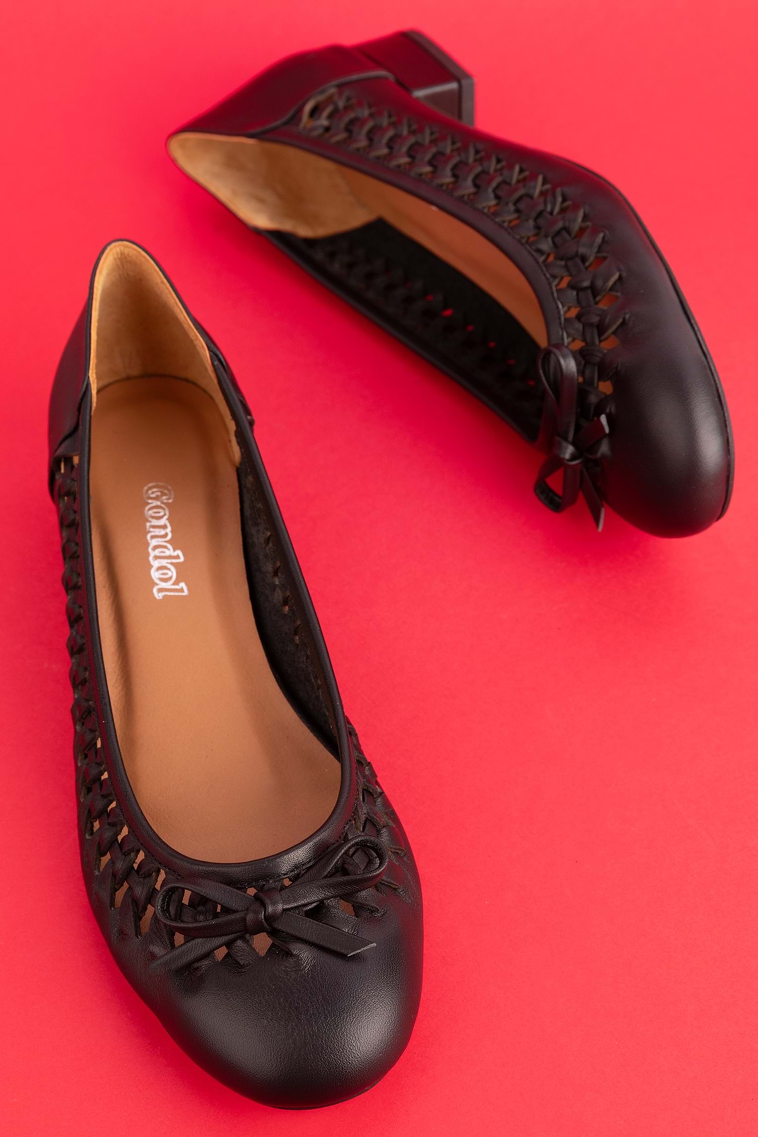 Gondol Kadın Hakiki Deri Günlük Kısa Topuklu Babet ss.2024 - Siyah - 41