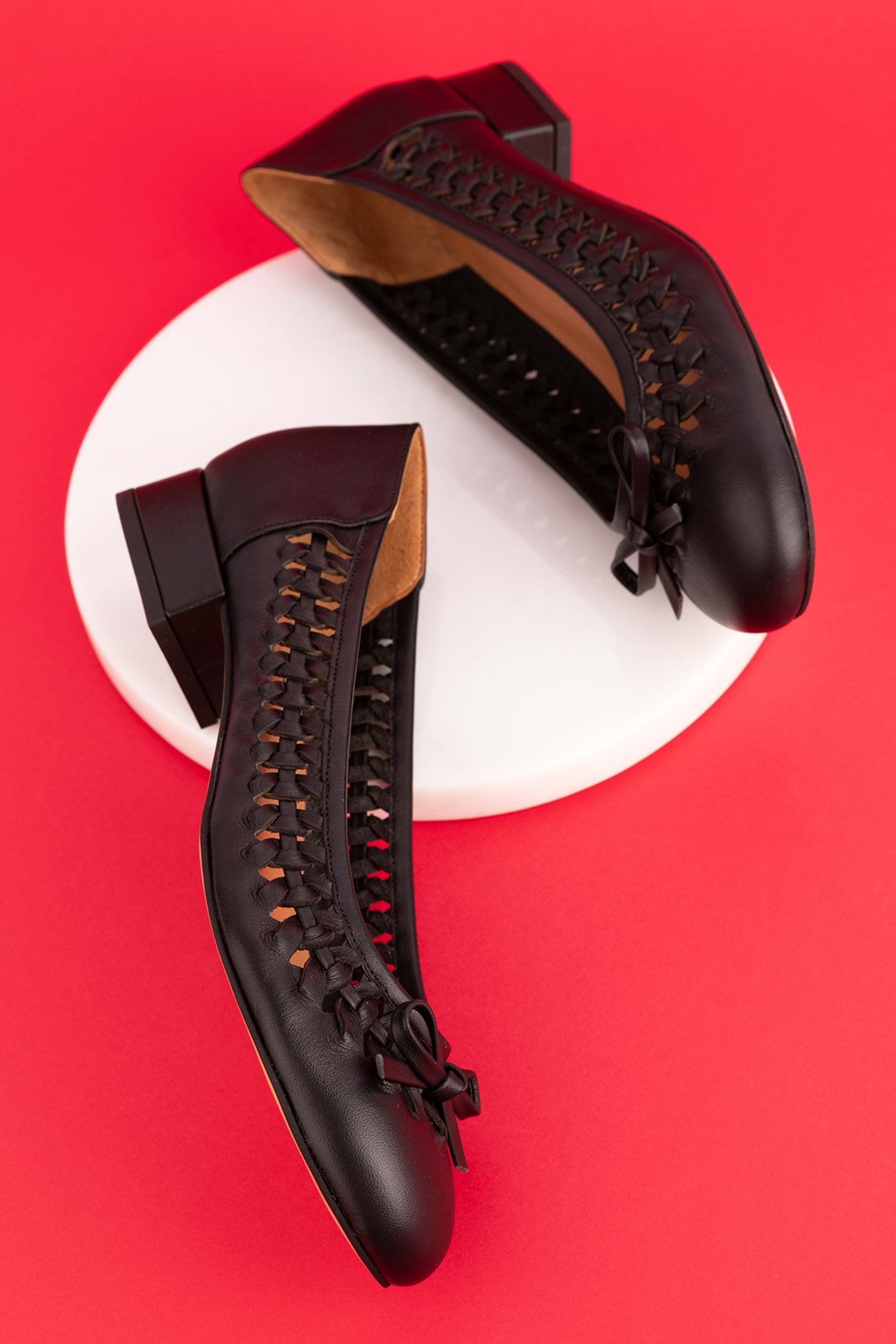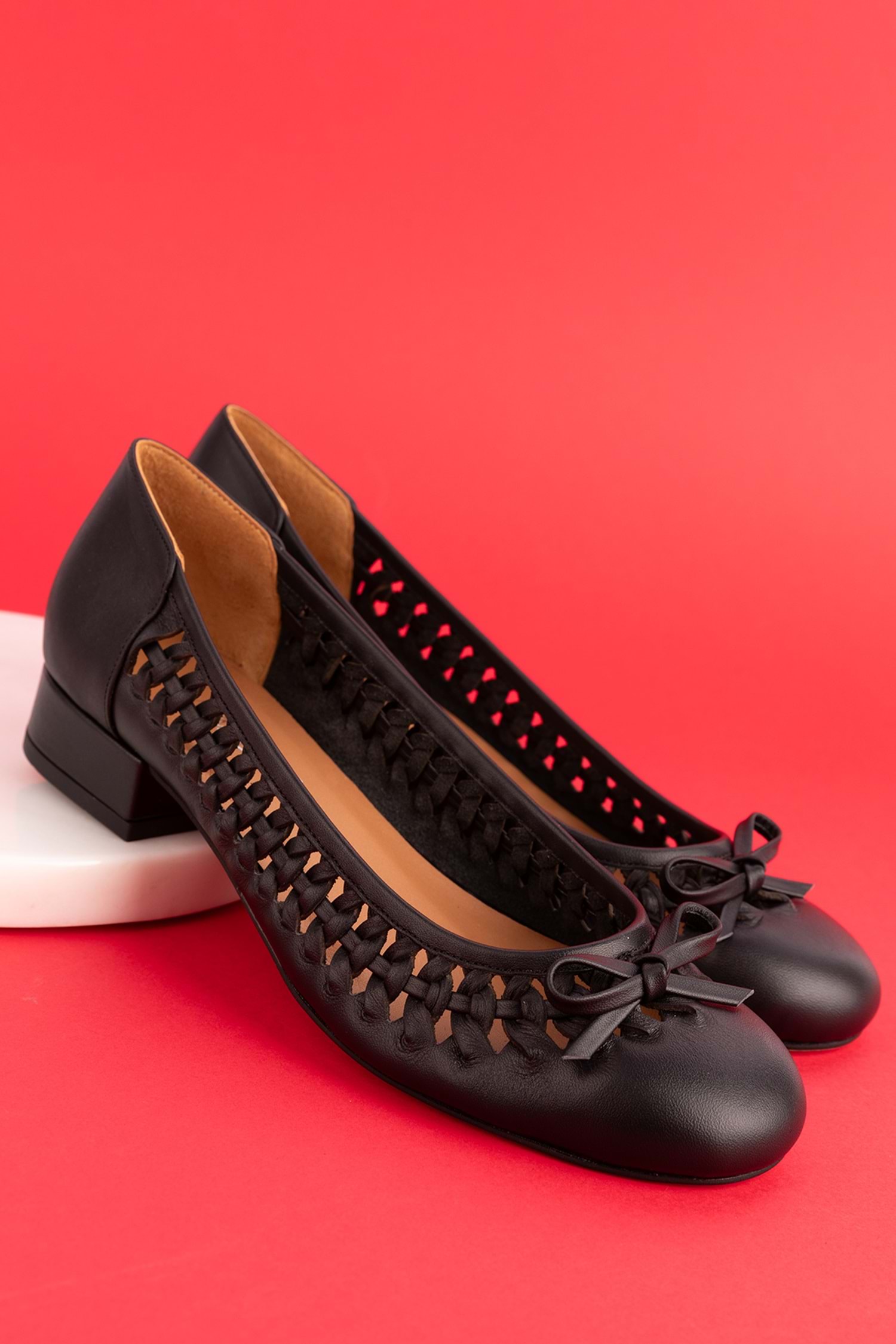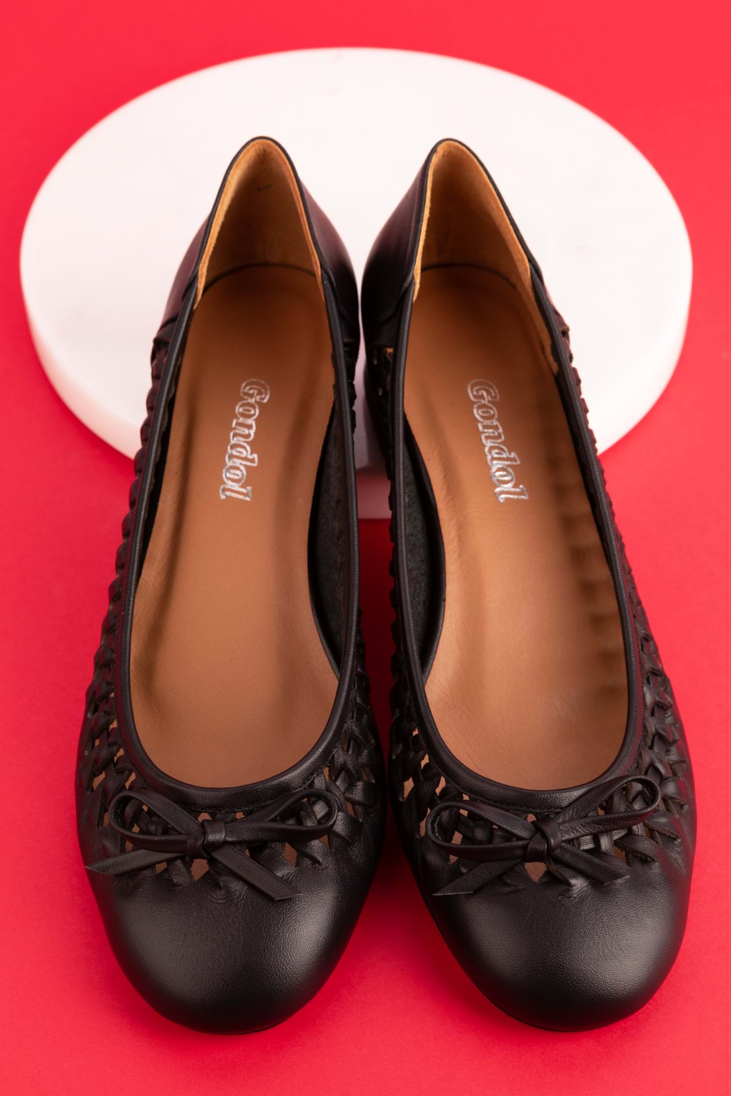 Gondol Kadın Hakiki Deri Günlük Kısa Topuklu Babet ss.2024 - Siyah - 41