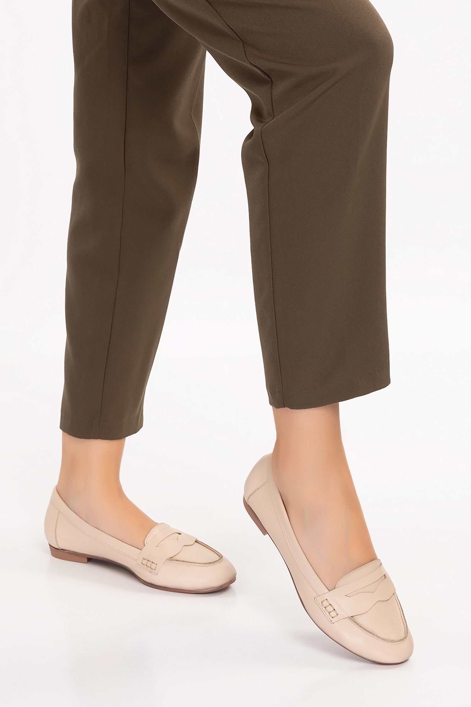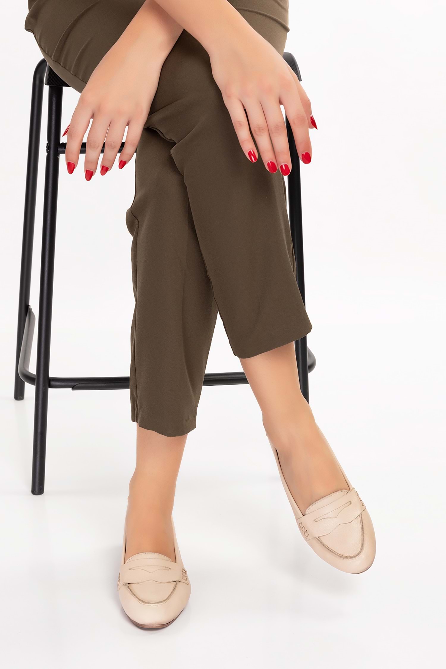 Gondol Kadın Hakiki Deri Loafer Babet Anl.6184 - Bej - 41