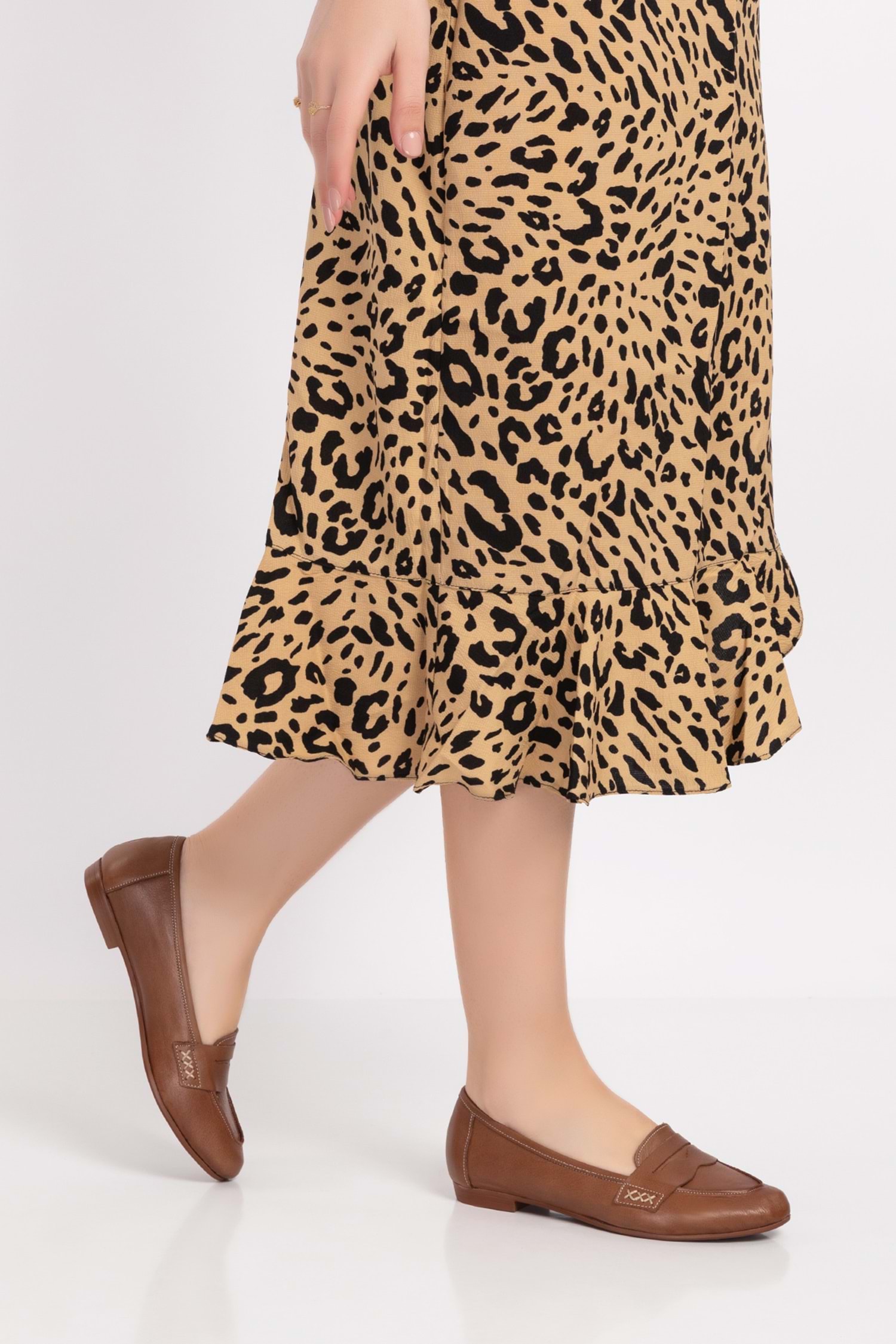 Gondol Kadın Hakiki Deri Loafer Babet Anl.6184 - Ceviz - 37