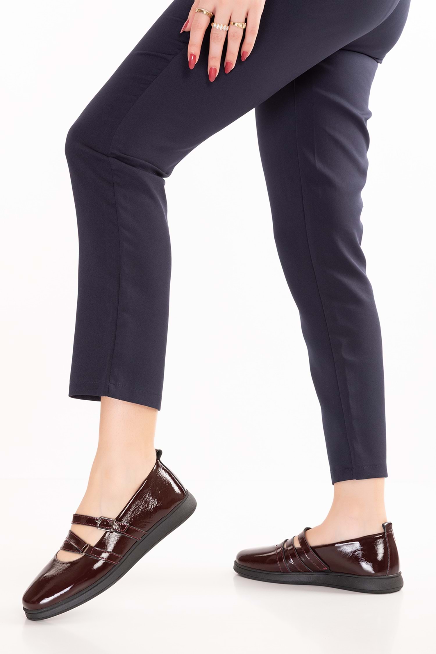 Hakiki Deri Toka Detaylı Topuk Boyu 2 cm Standart Kalıp Kaymaz Taban Klasik ve Rahat