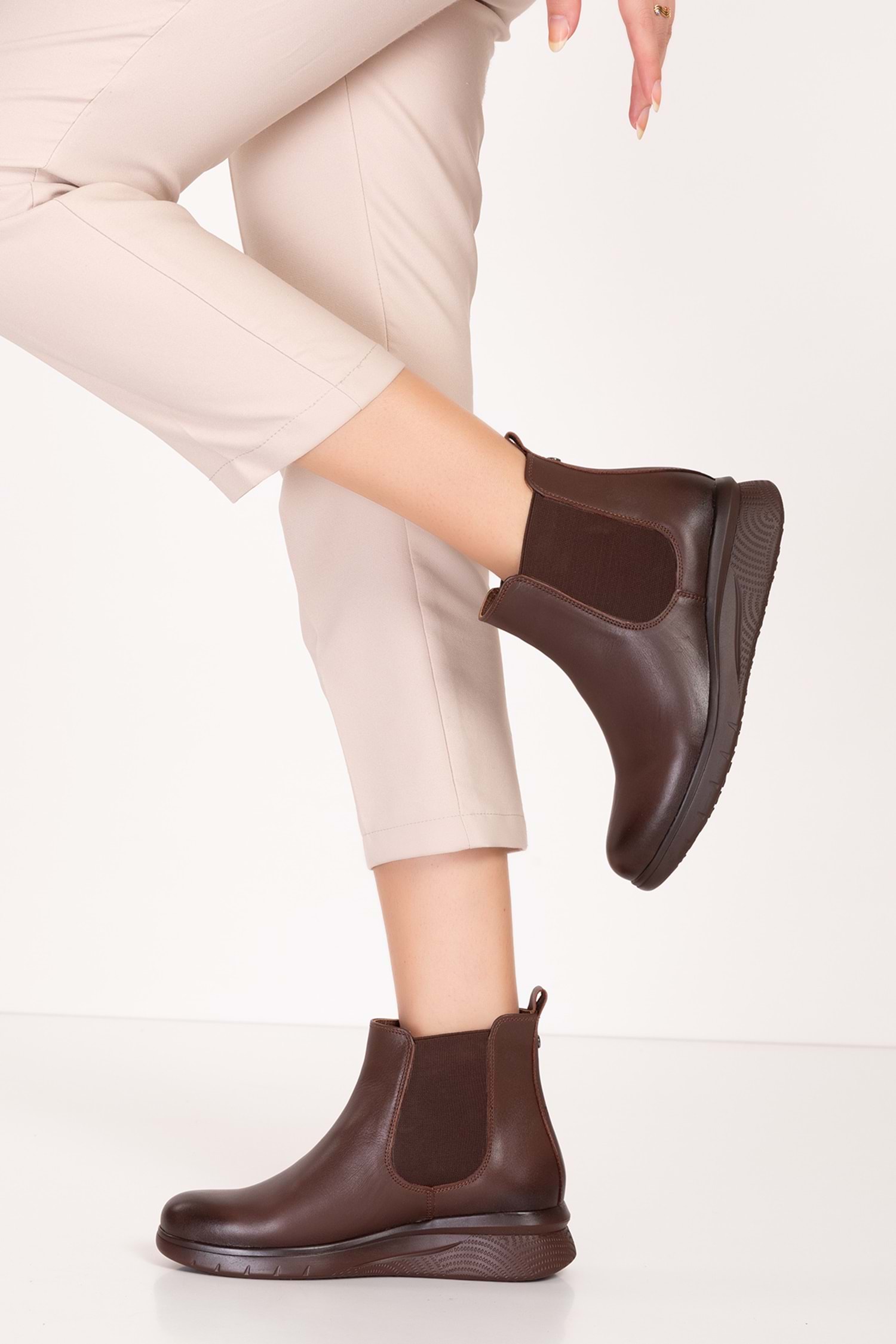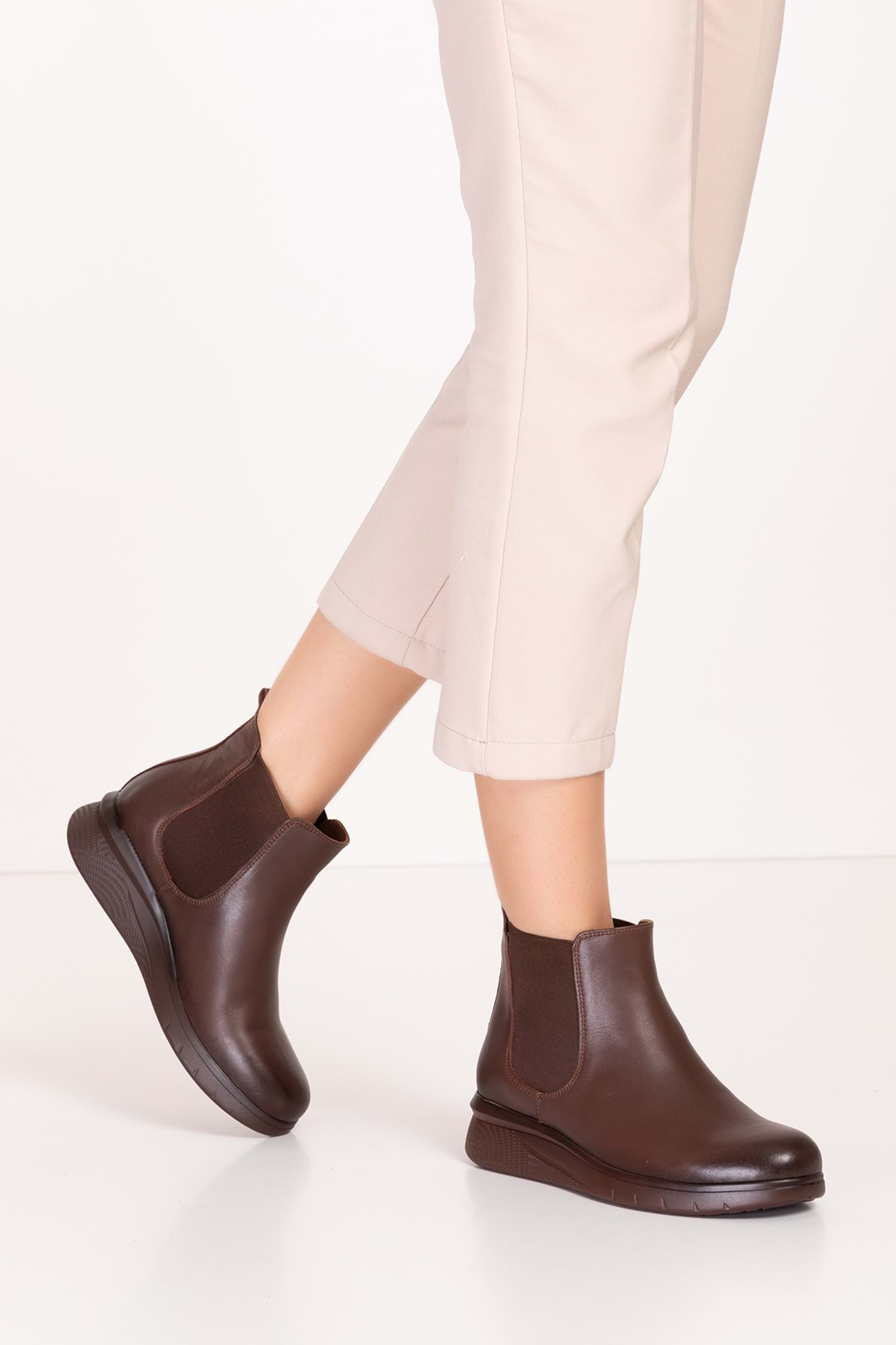 Hakiki Deri Anatomik Taban Rahat bot Bilek Kısmı Lastikli Rahat Giyim Topuk Boyu 4 cm