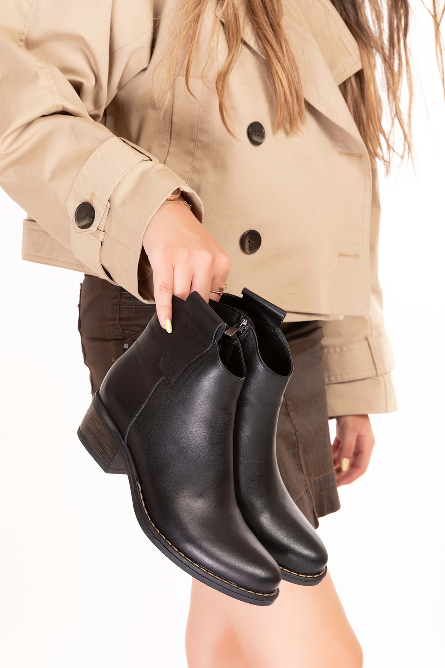 Minimal ve zarif tasarımıyla öne çıkan bu kadın bot modeli, %100 hakiki deri sayası ve doğal taba rengi ile hem klasik hem modern stillere uyum sağlar. Kısa bilek boyu ve düşük topuğu ile günlük kullanıma uygun konforlu bir deneyim sunar.