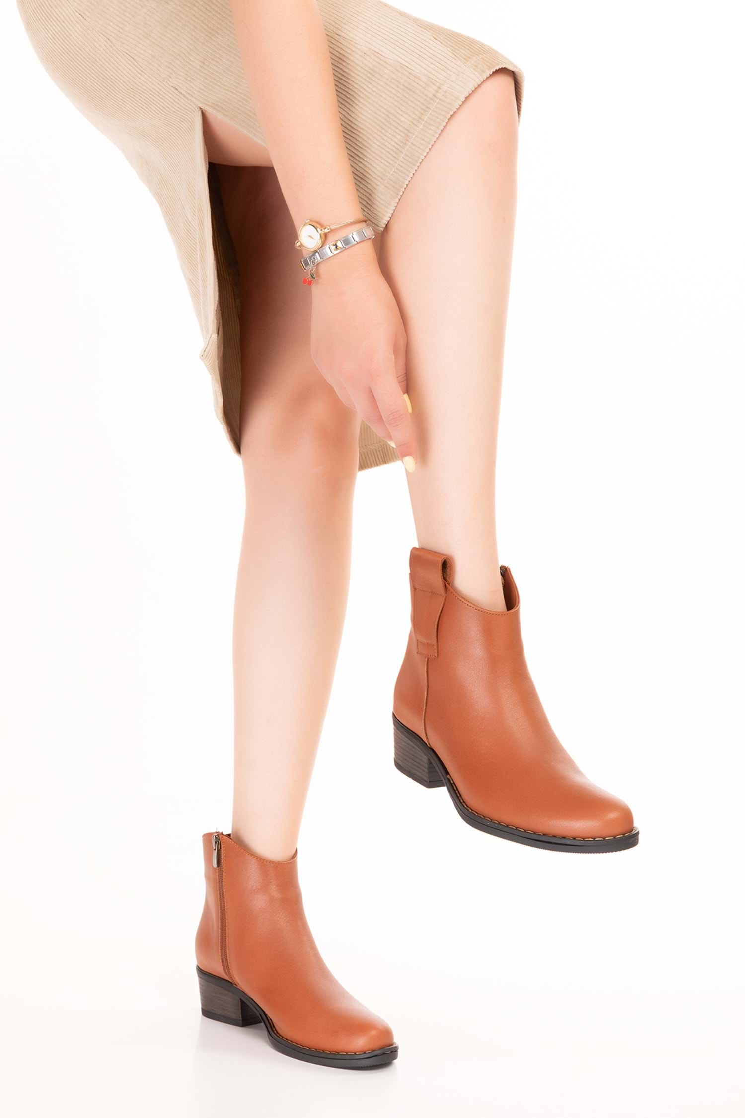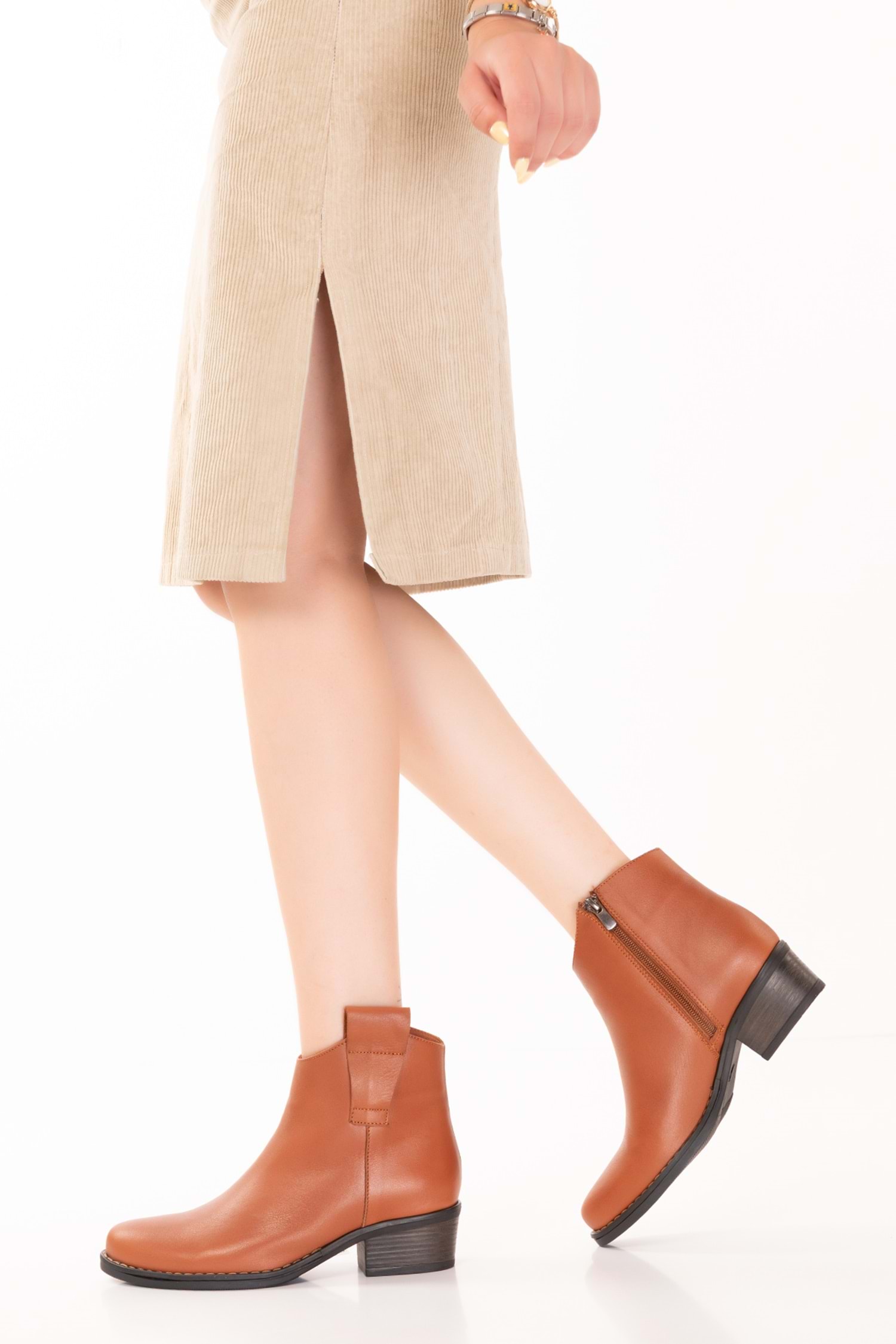 hakiki deri kadın bot, taba bot modeli, kısa topuklu bot, yandan fermuarlı bot, rahat kadın ayakkabısı, klasik deri