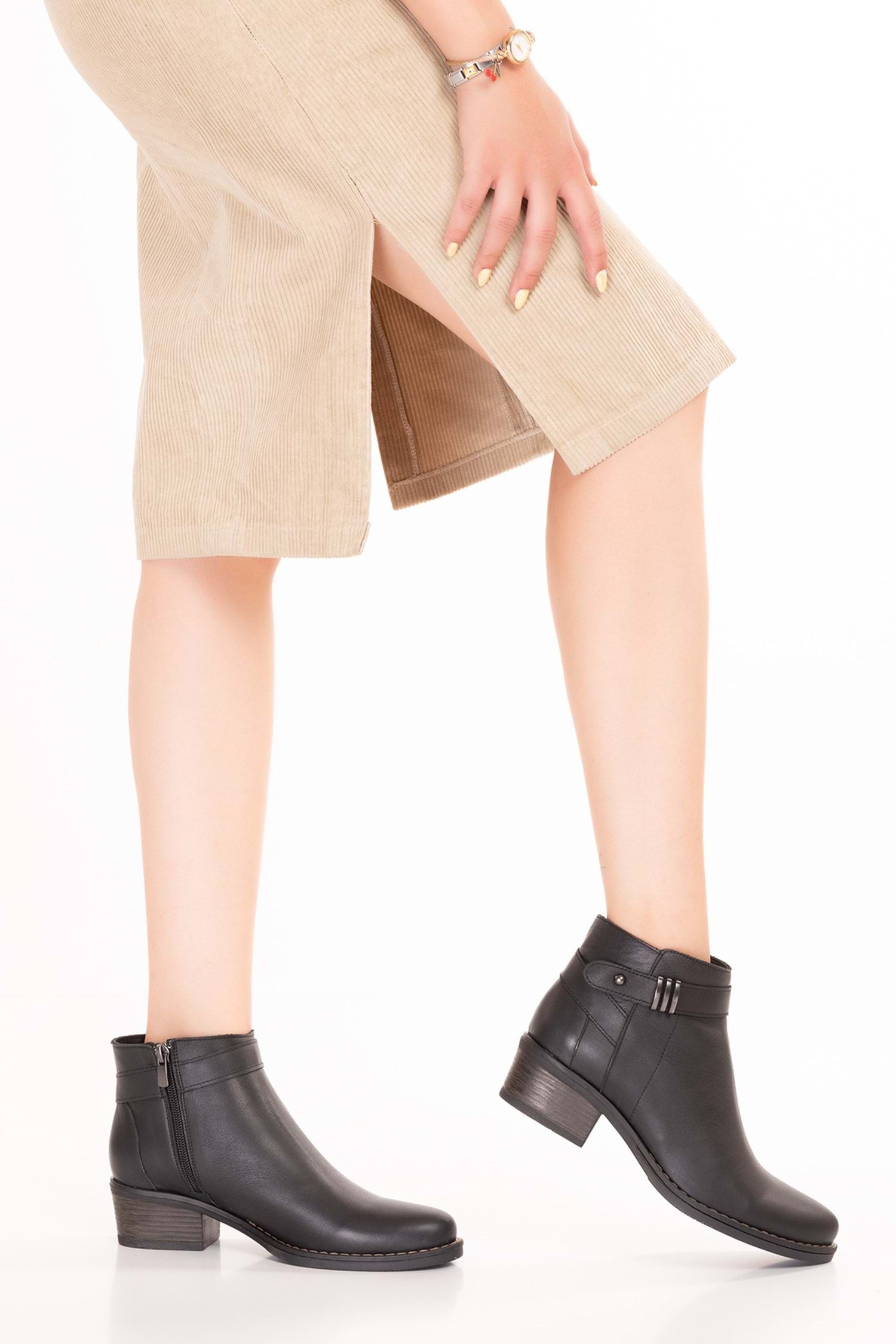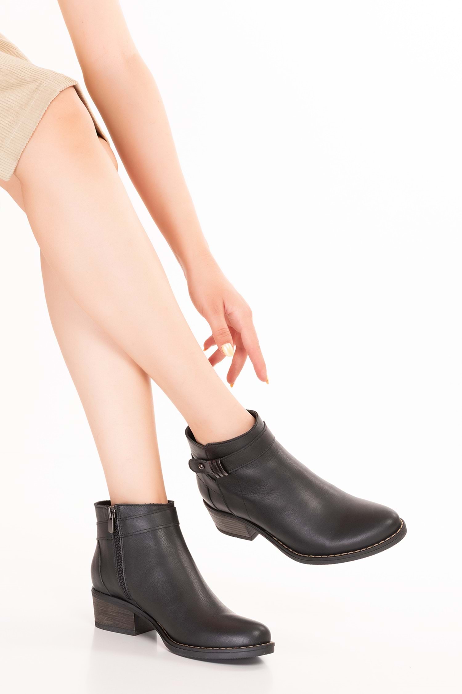 Gondol Hakiki Deri Günlük Kısa Topuklu Şık Bot Belinda - Siyah - 36
