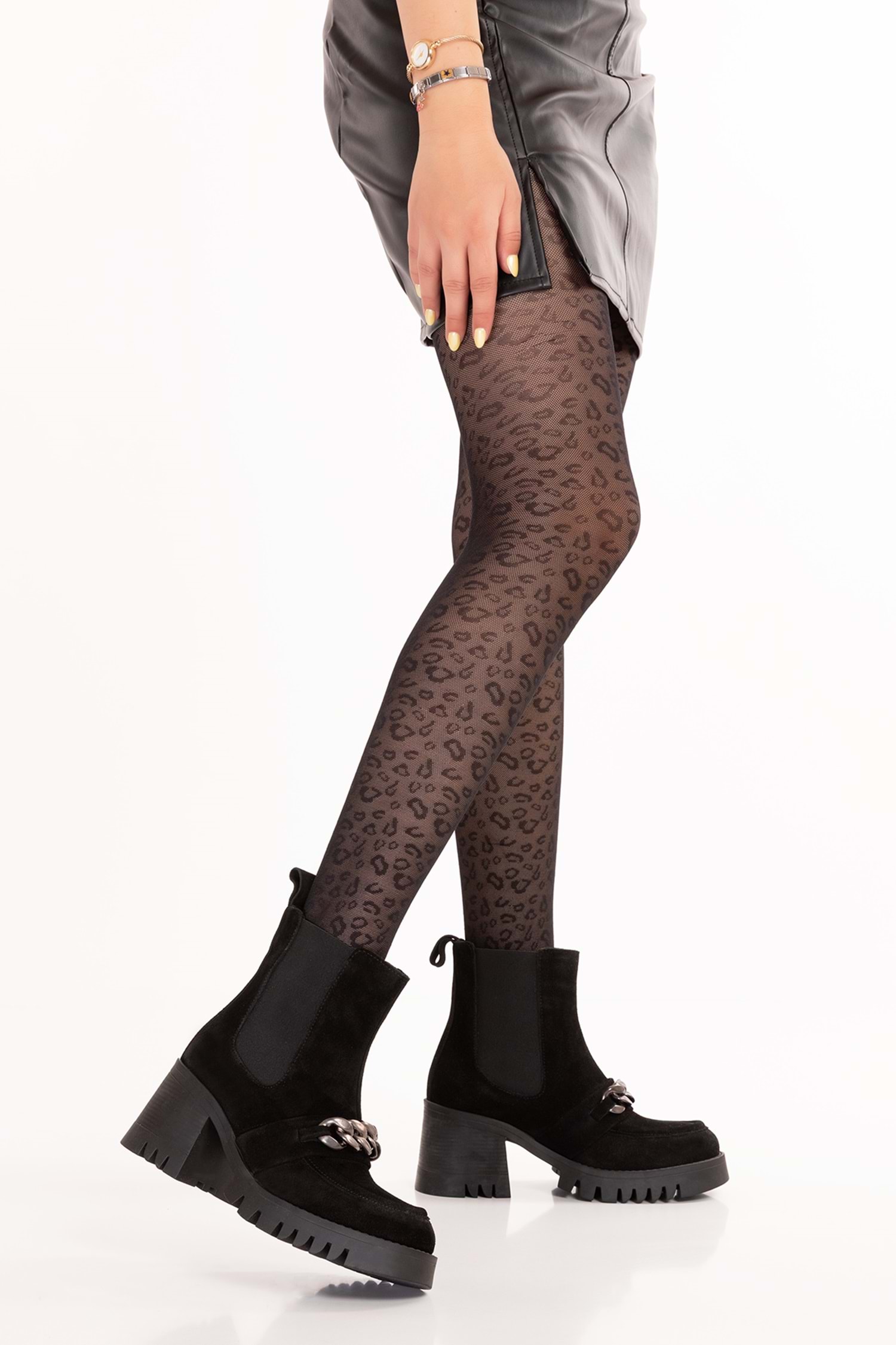 Stil sahibi kadınların favorisi olmaya aday bu taba bot modeli, %100 hakiki deri materyali ve gold renkli zincir aksesuarıyla modern ve güçlü bir görünüm sunar. Yüksek ve kalın topuk yapısı, hem konforlu hem dikkat çekici bir duruş sağlar.