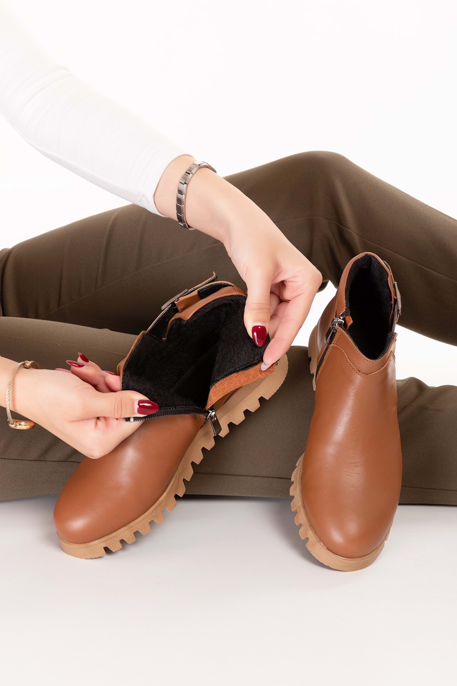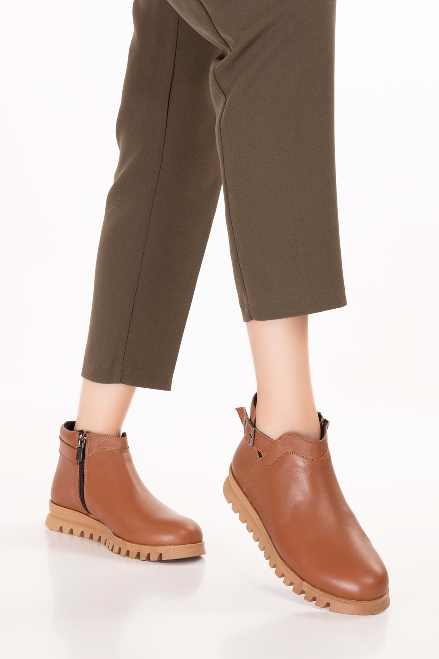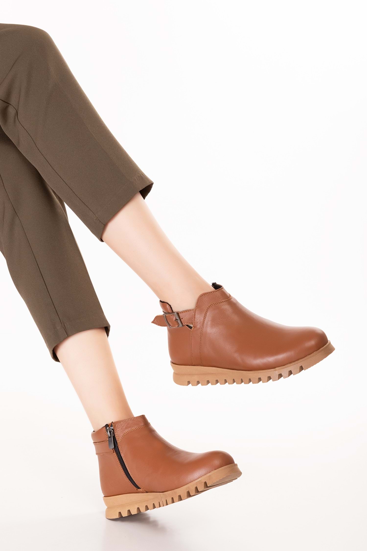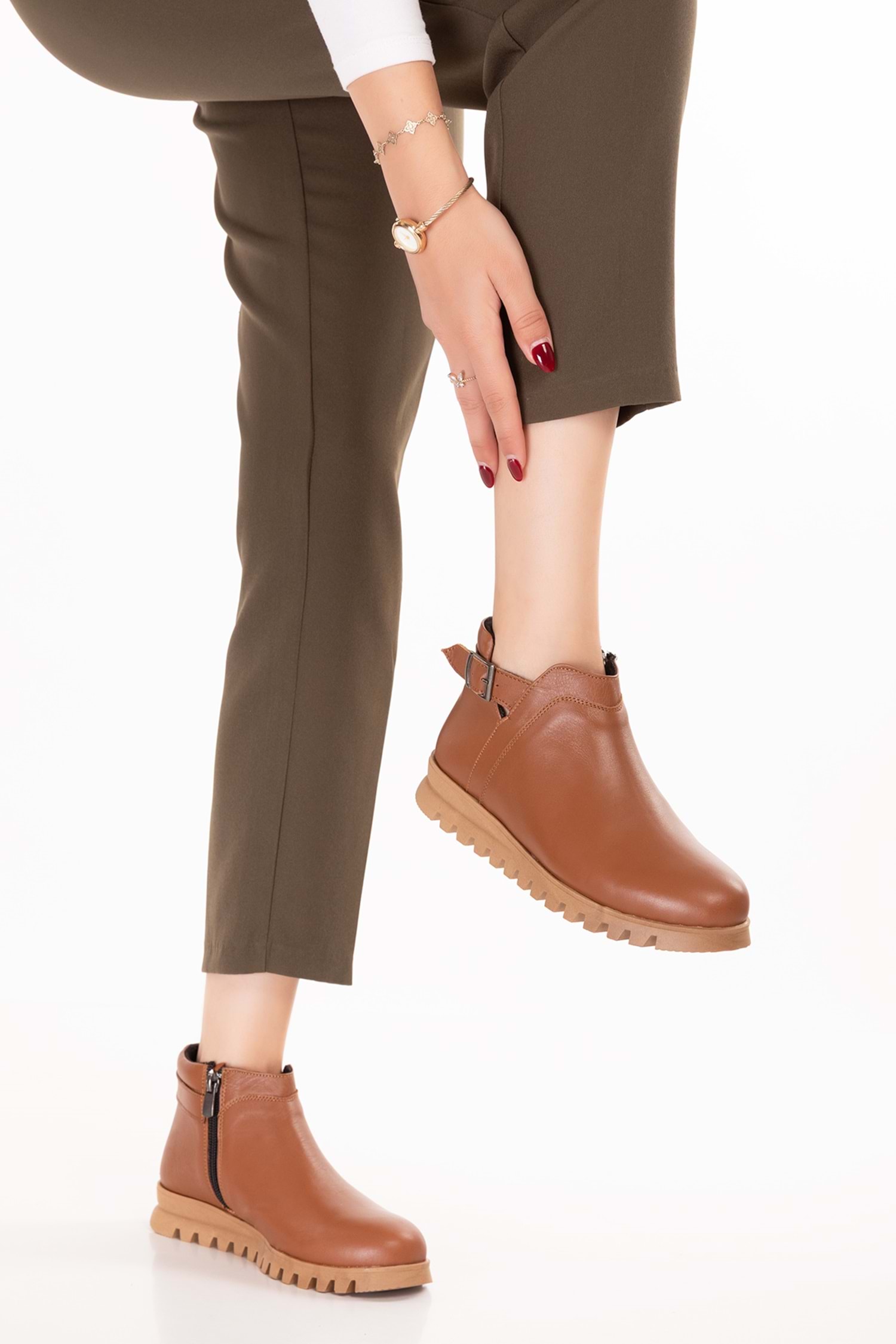 Hakiki Deri Kadın Rahat Günlük Bot – Kaymaz Rahat Tabanlı Modern Tasarım