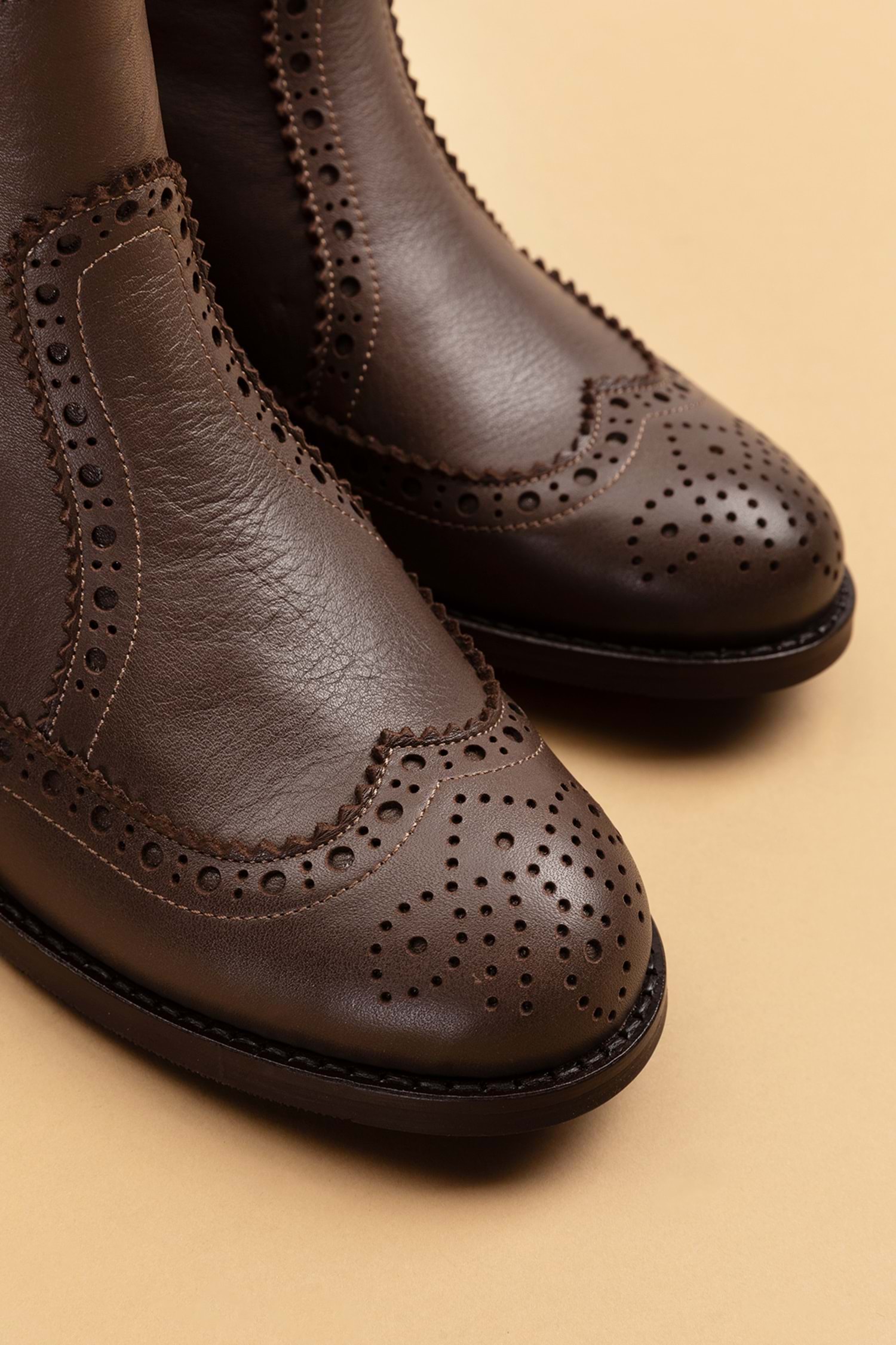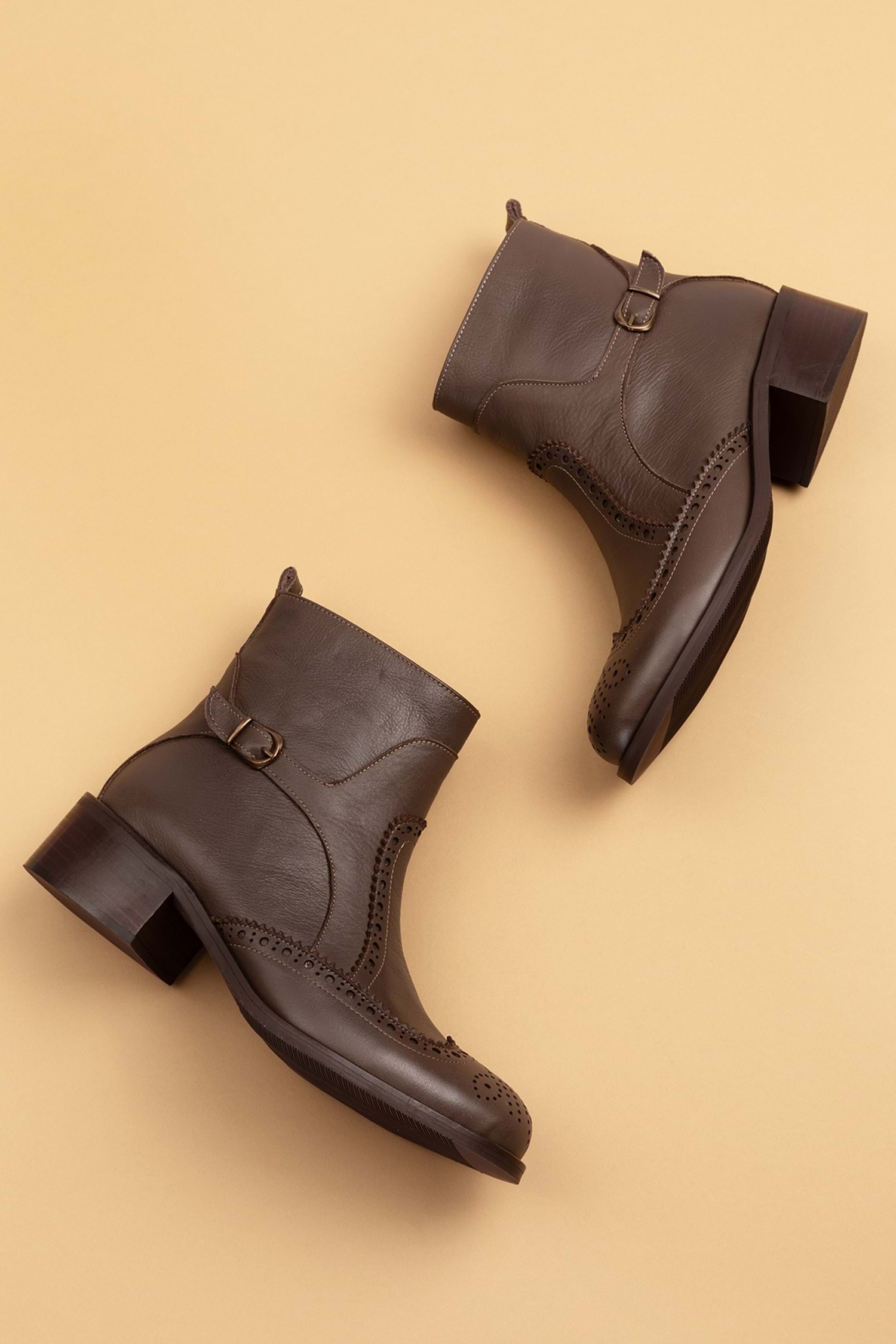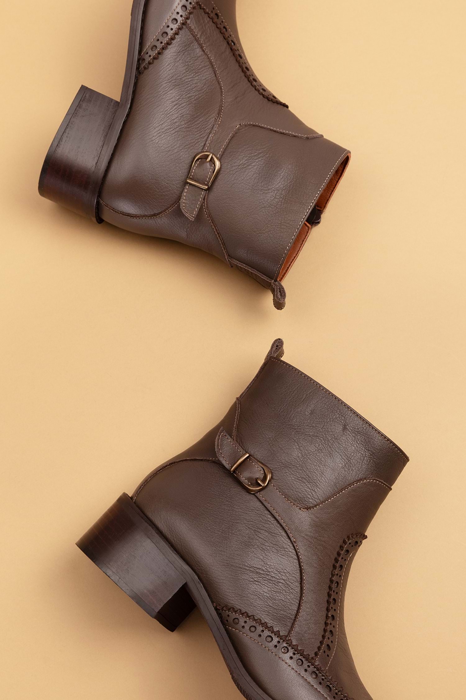 Gondol Hakiki Deri Kısa Topuklu Taz Bot ell.3792 - Kahverengi - 40