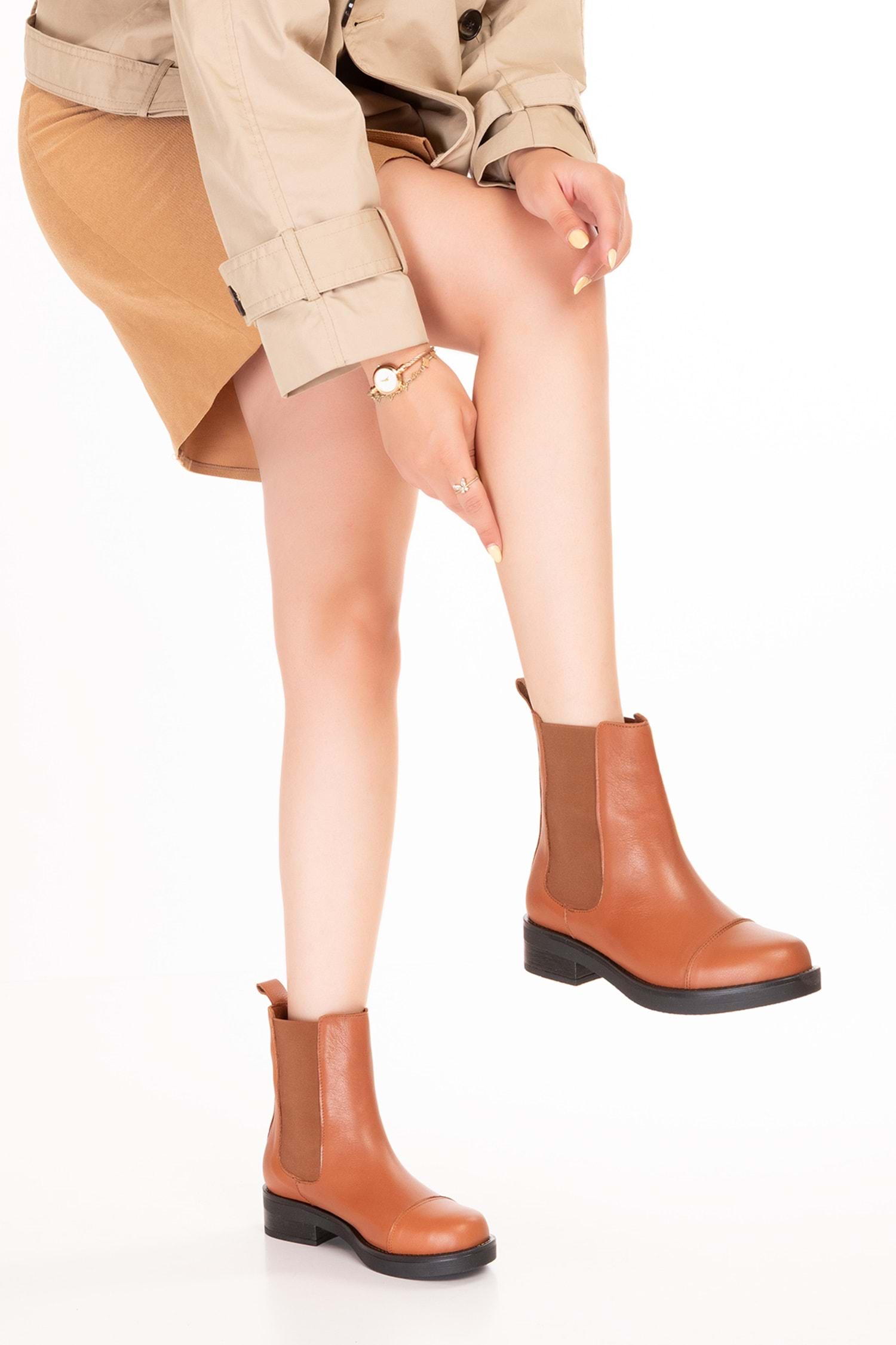 Gondol Hakiki Deri Lastikli Çekme Bot Belen - Taba - 36