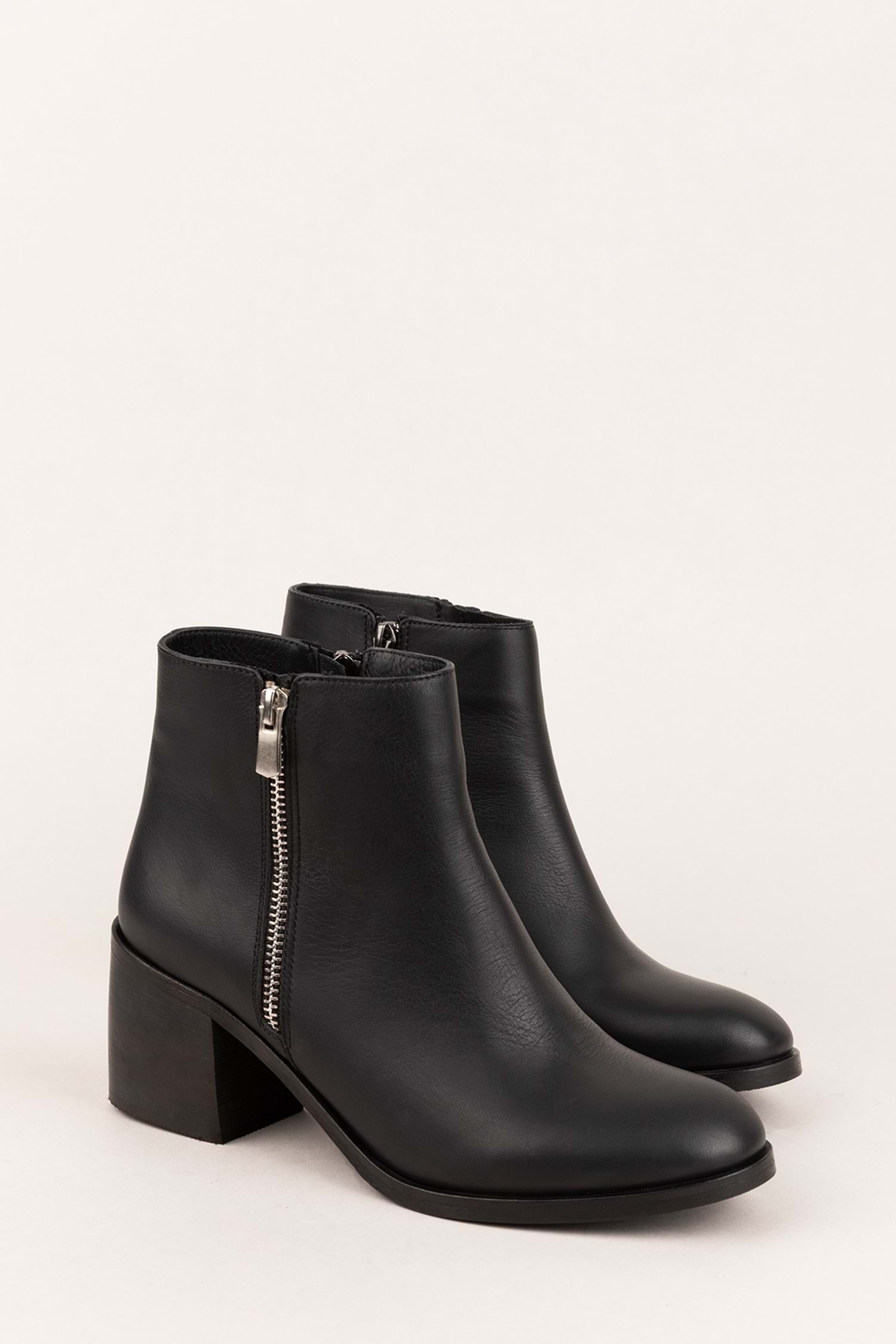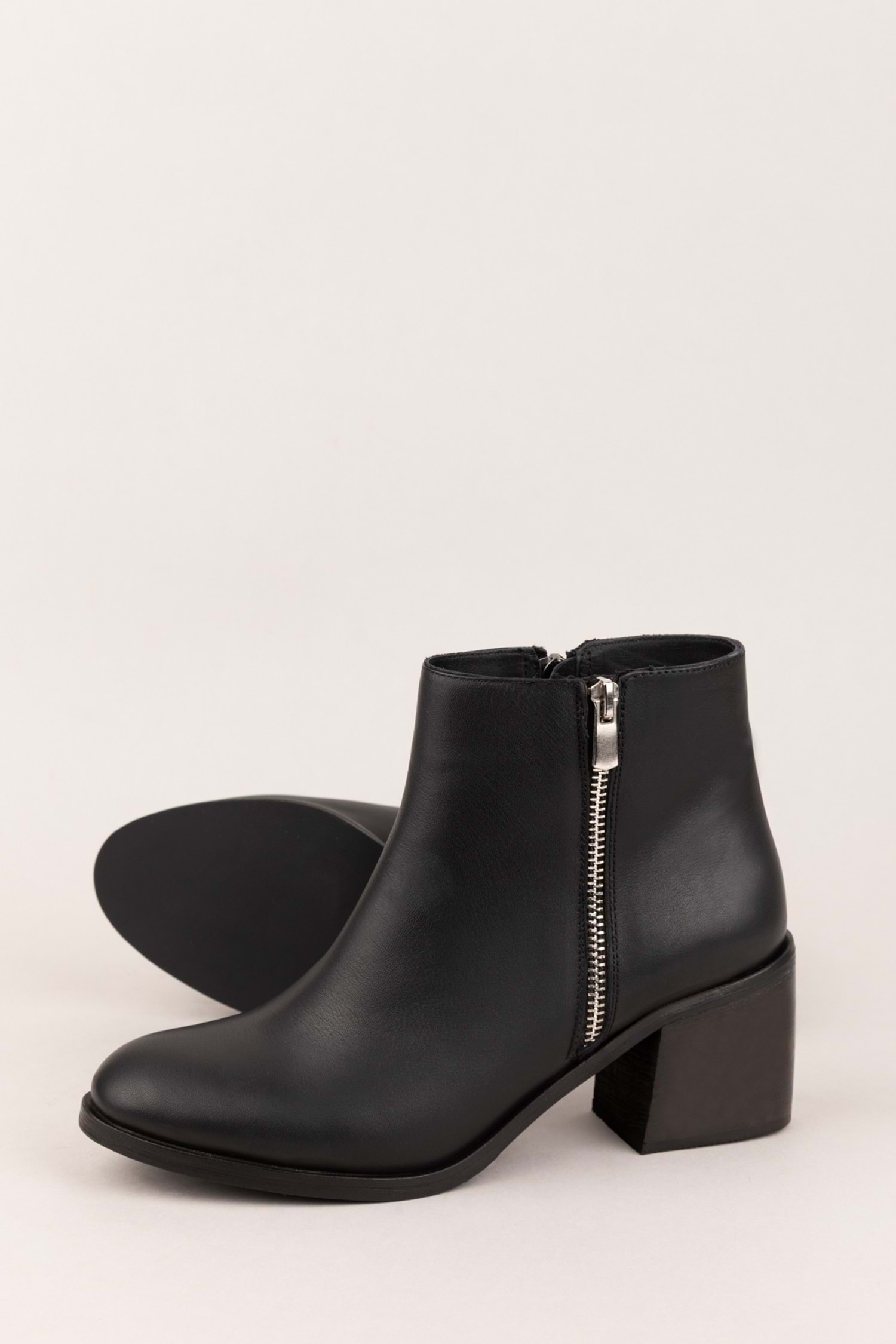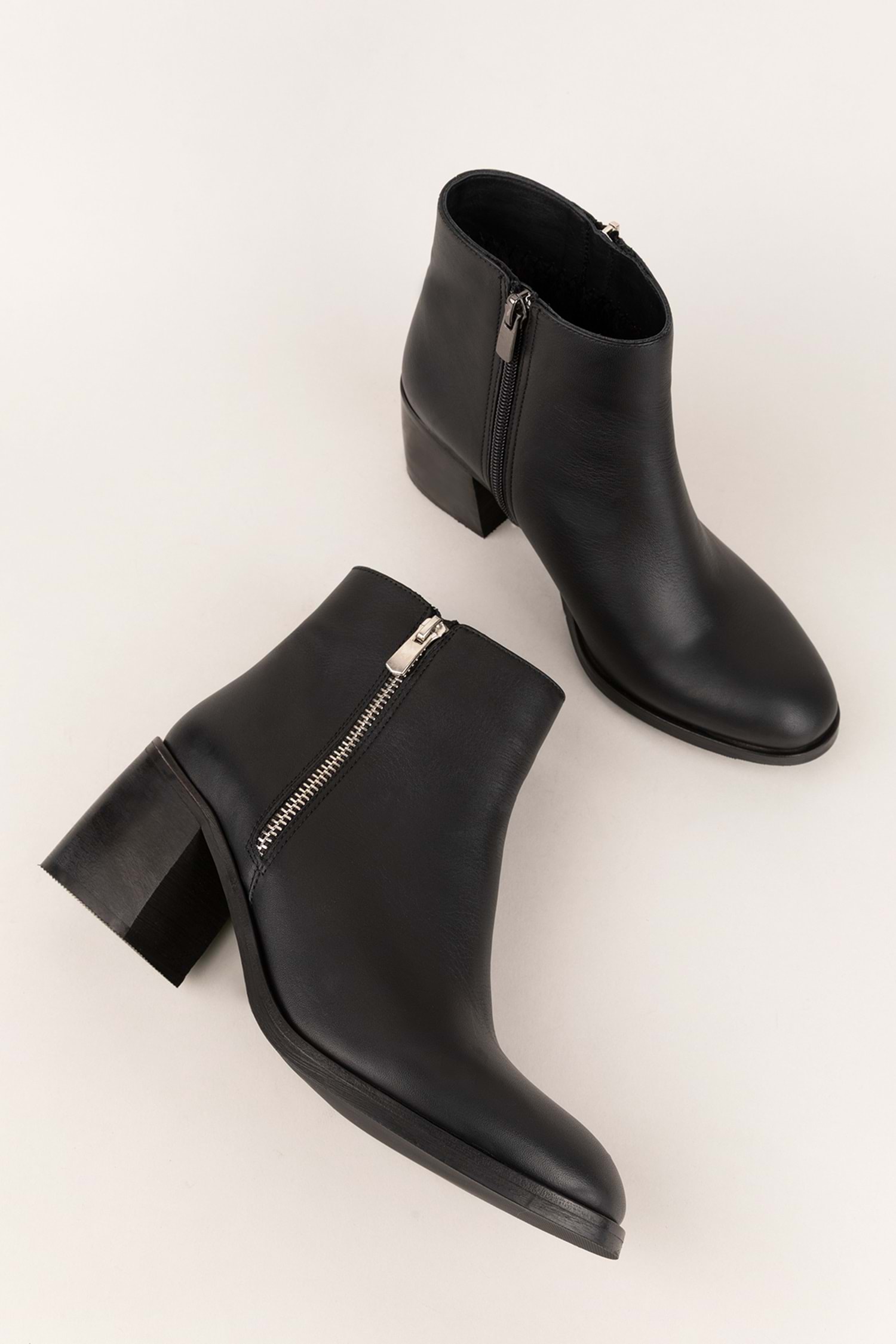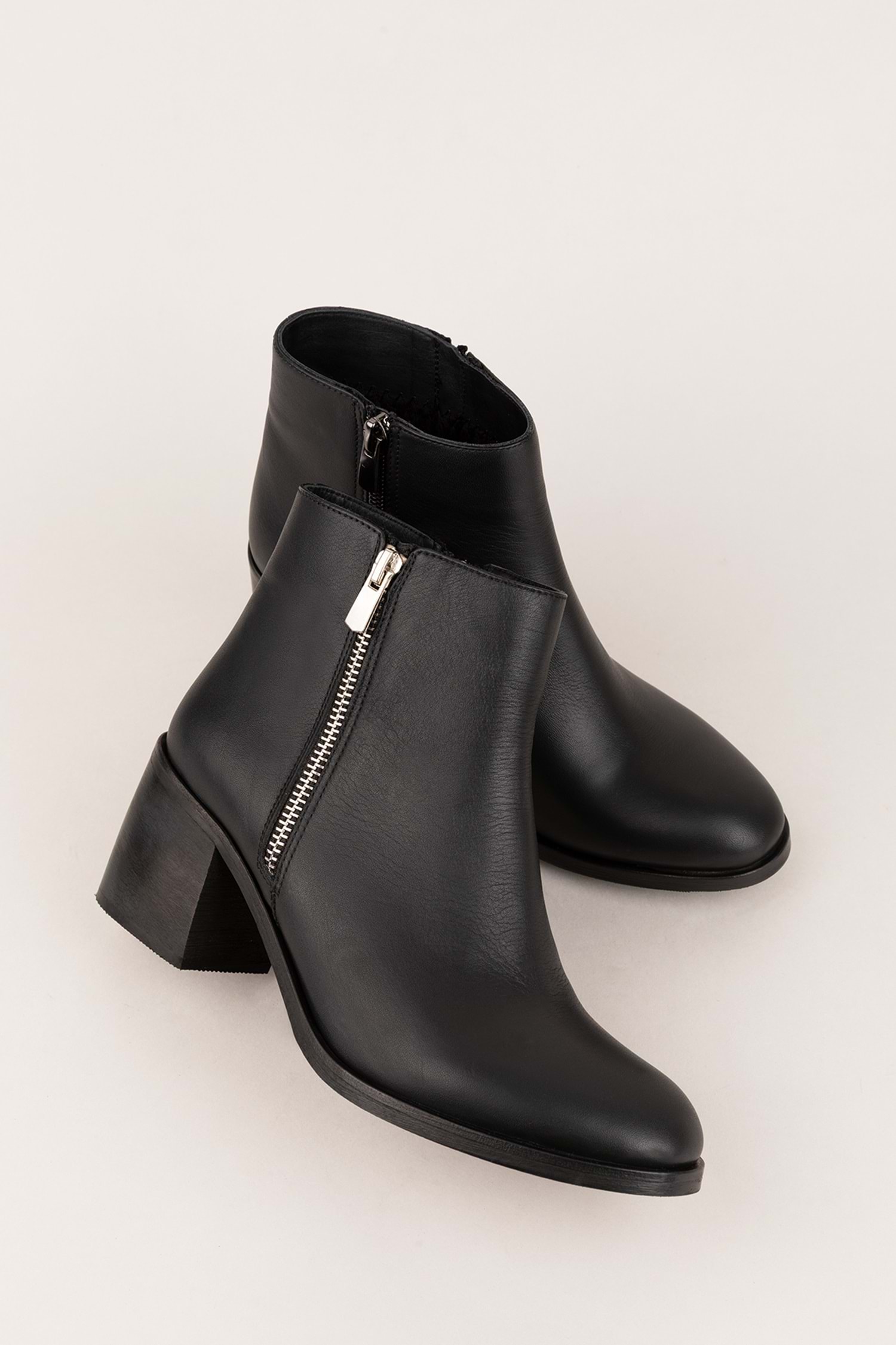 siyah deri kadın bot, kısa bilek bot, fermuarlı topuklu bot, sade deri ayakkabı, hakiki deri zarif bot, günlük klasik kadın bot