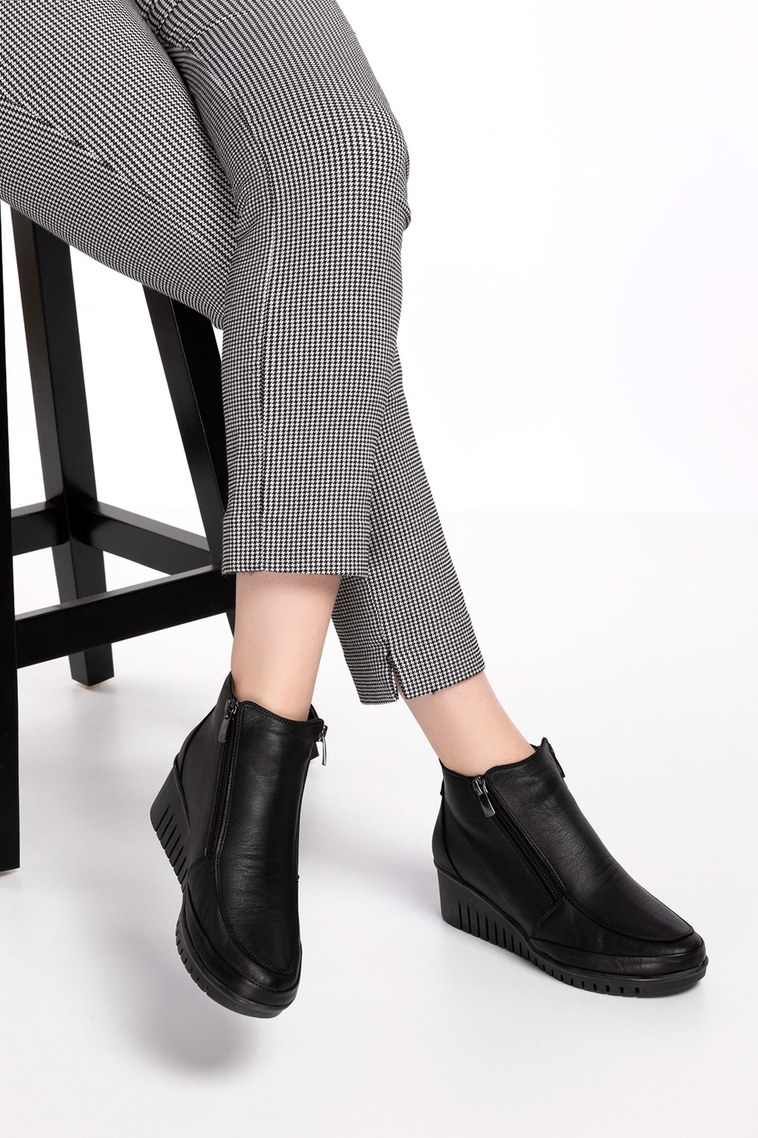 * Hakiki Deri * Standart Kalıp * Kaymaz Taban * Çift Fermuarlı Kolay Giyim * Topuk Boyu 4 cm