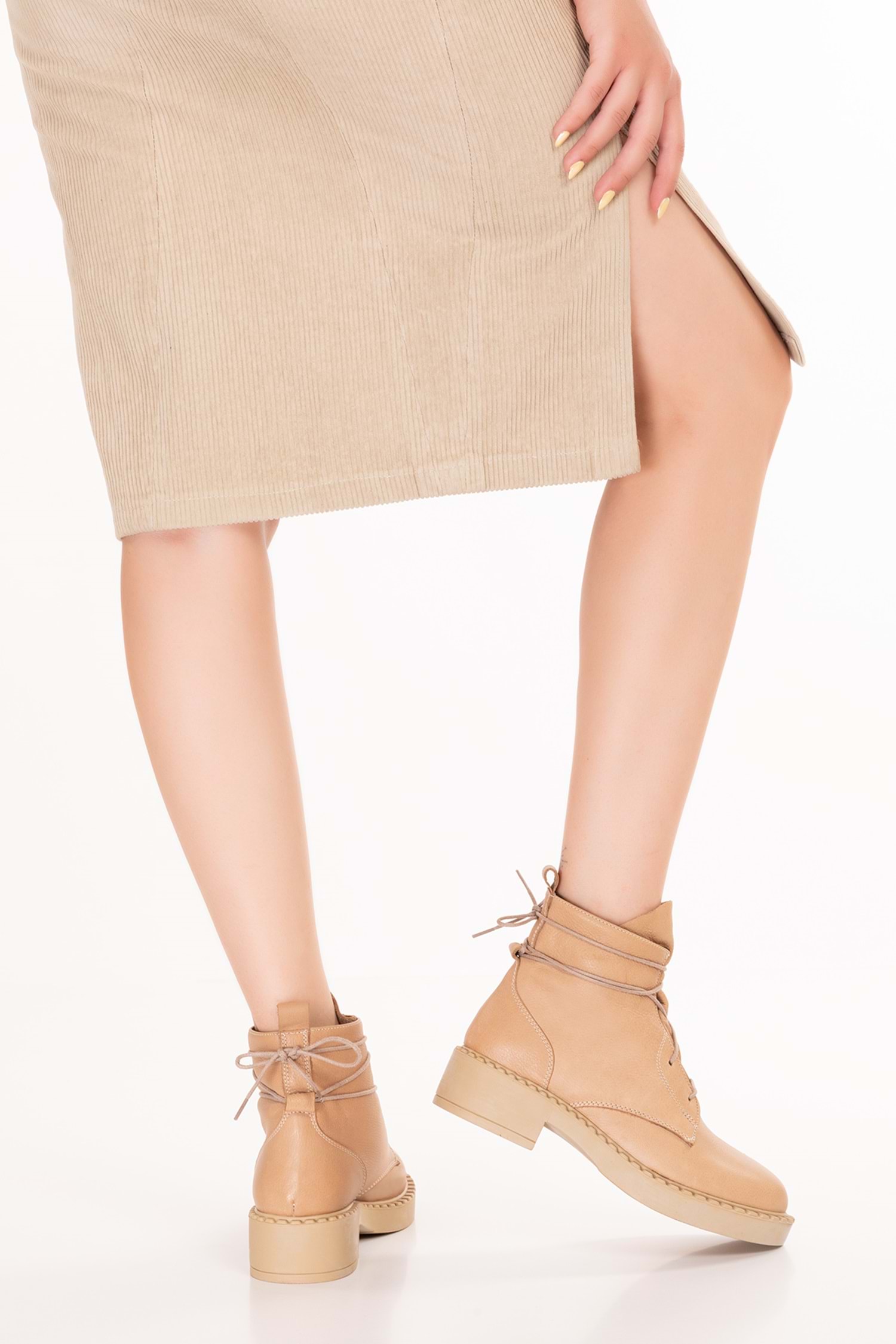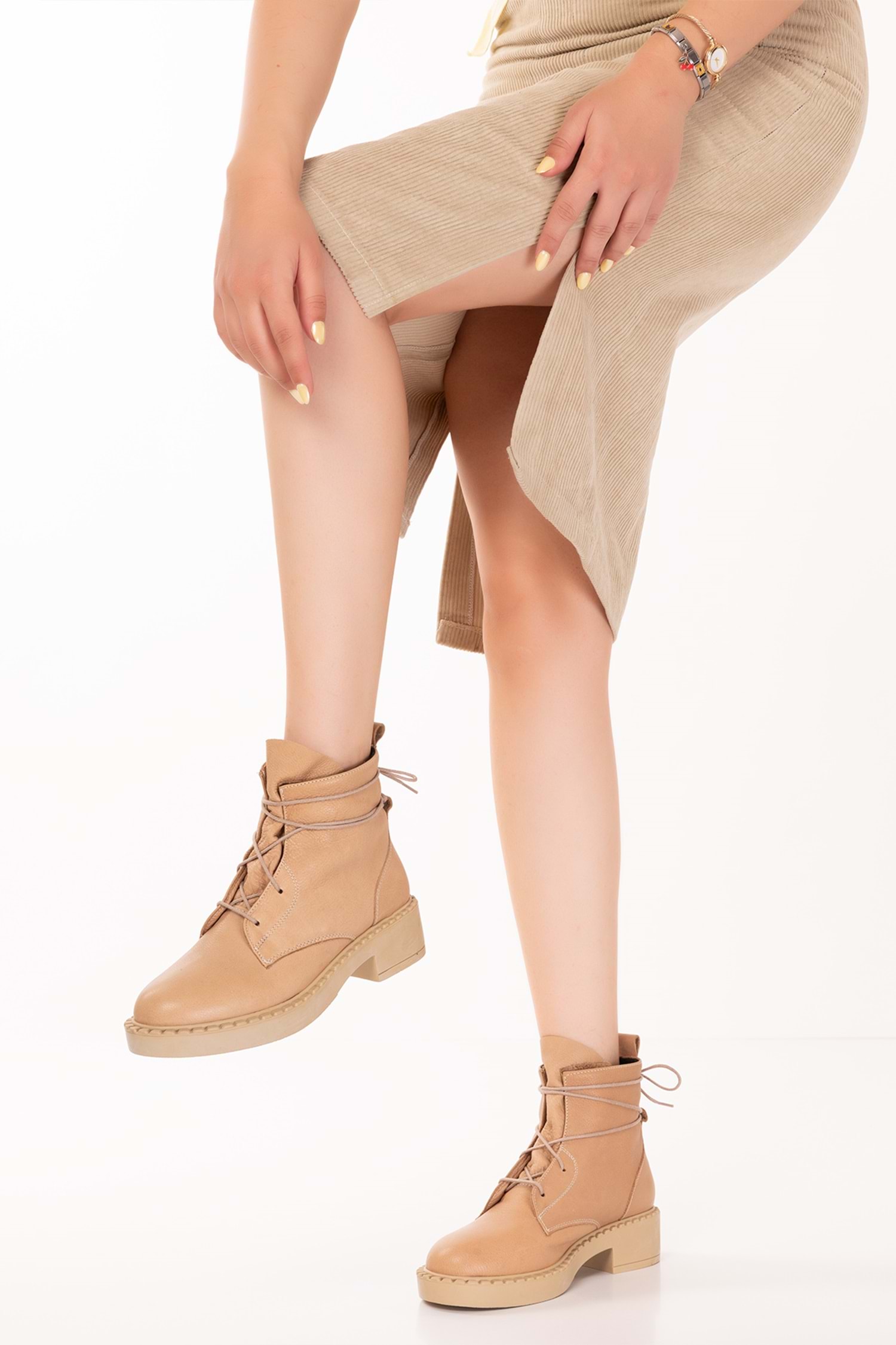 bej kadın bot, hakiki deri bağcıklı bot, kalın taban rahat bot, günlük deri kadın ayakkabı, kışlık bağcıklı bot, konforlu kadın bot modeli