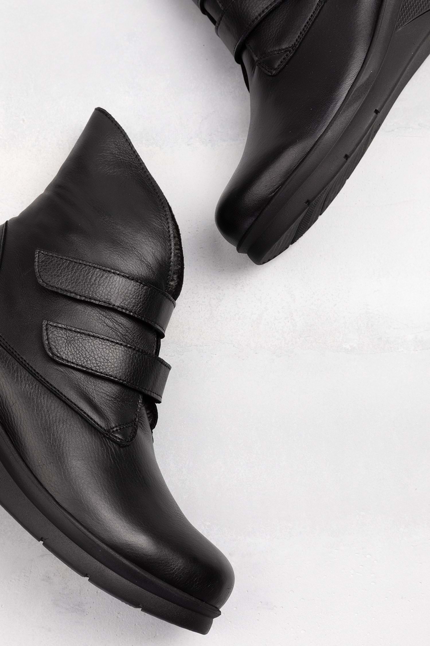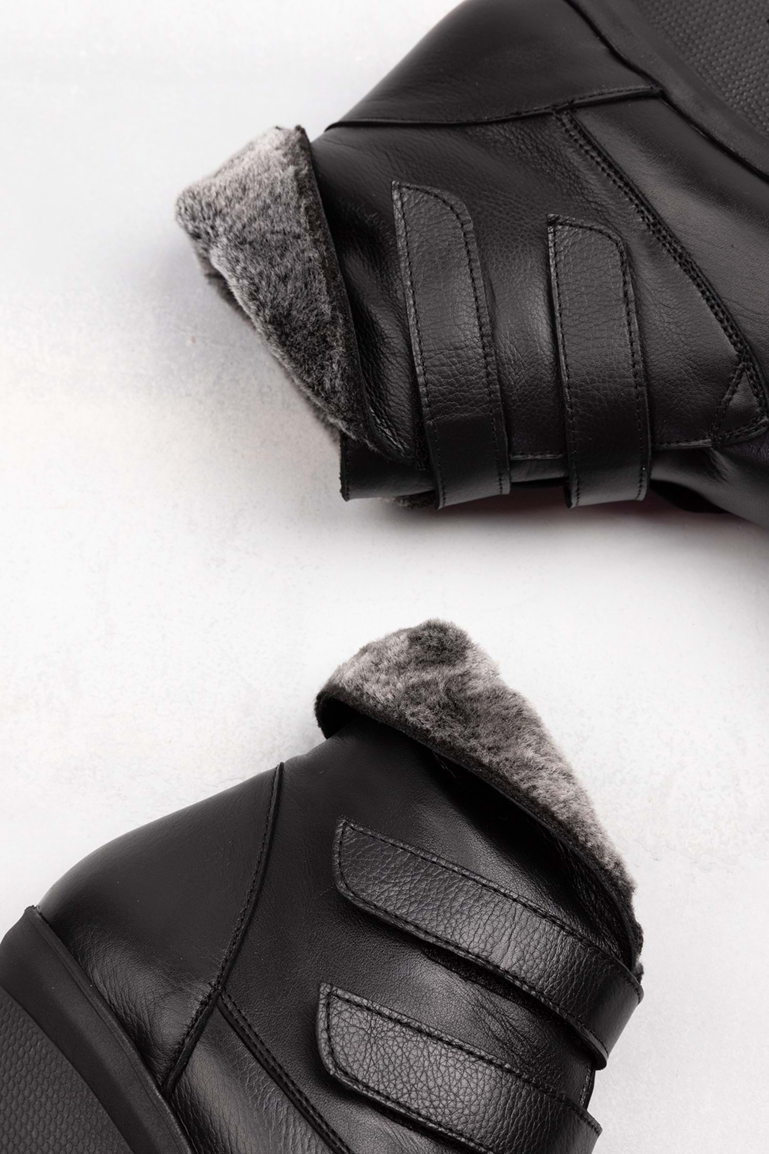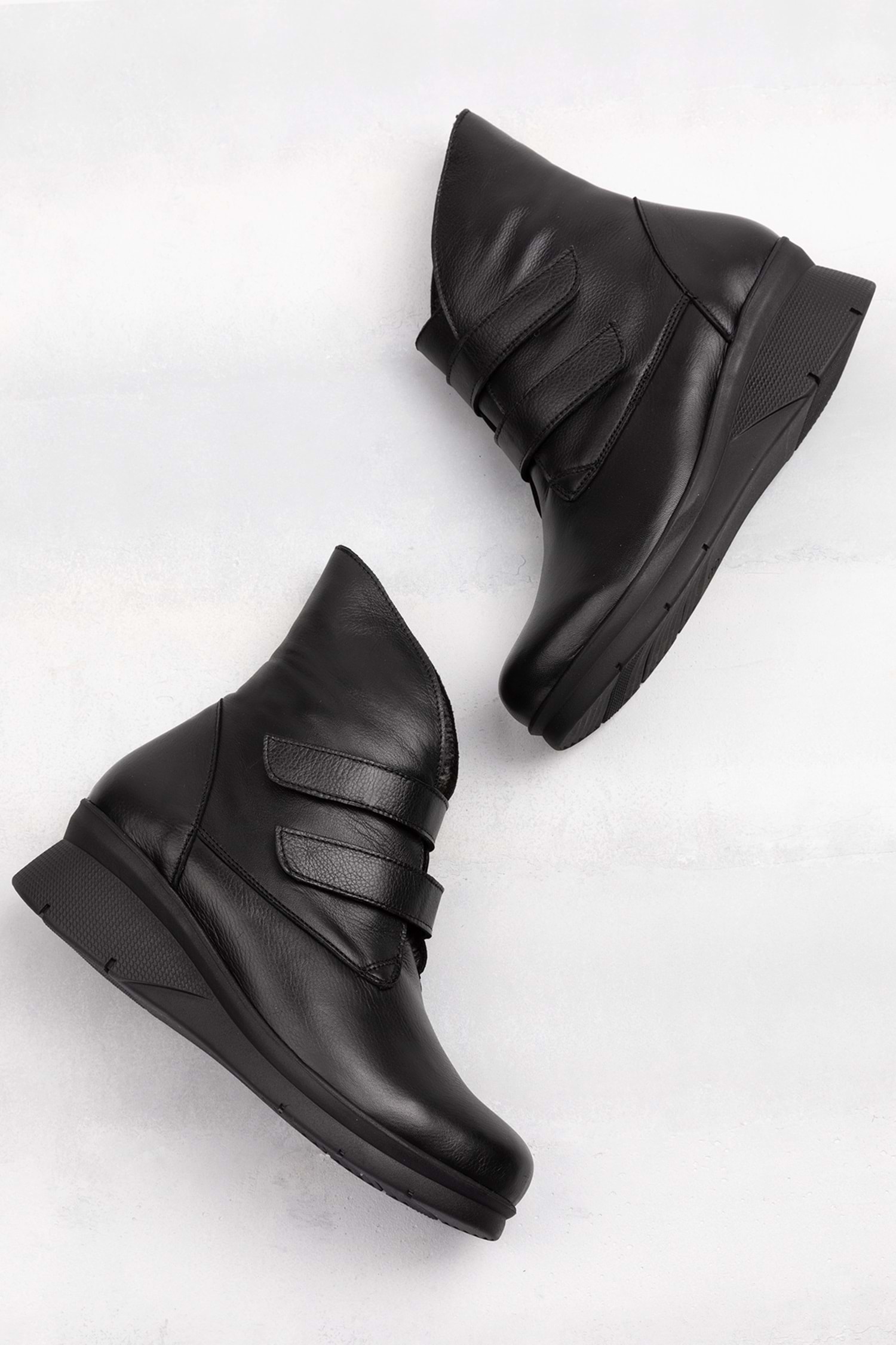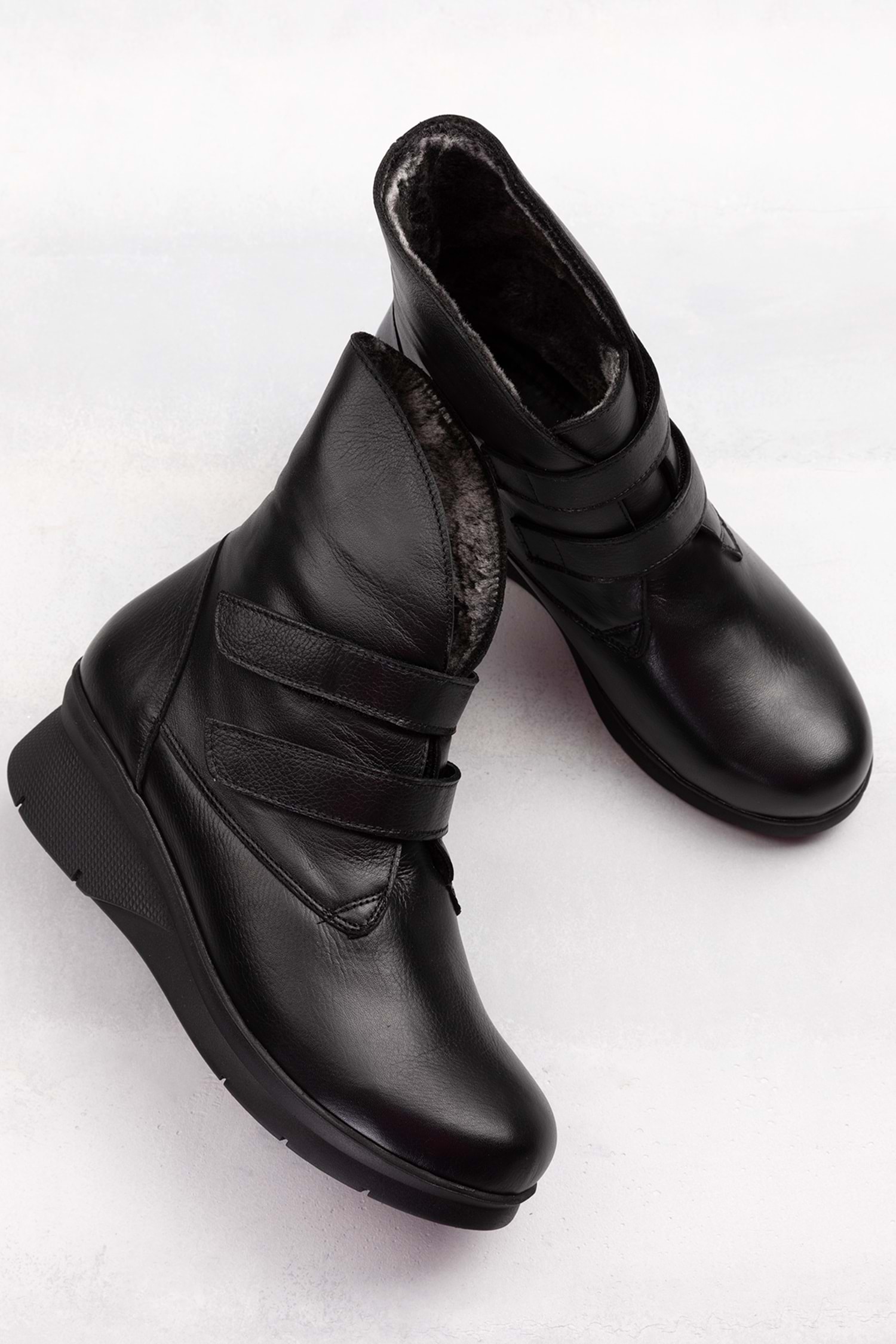 * Hakiki Deri * Standart Kalıp * Kaymaz Taban * Esnek ve Rahat * Topuk Boyu 4 cm * Kolay Giyim * Çift Cırtlı * İçi Kürklü