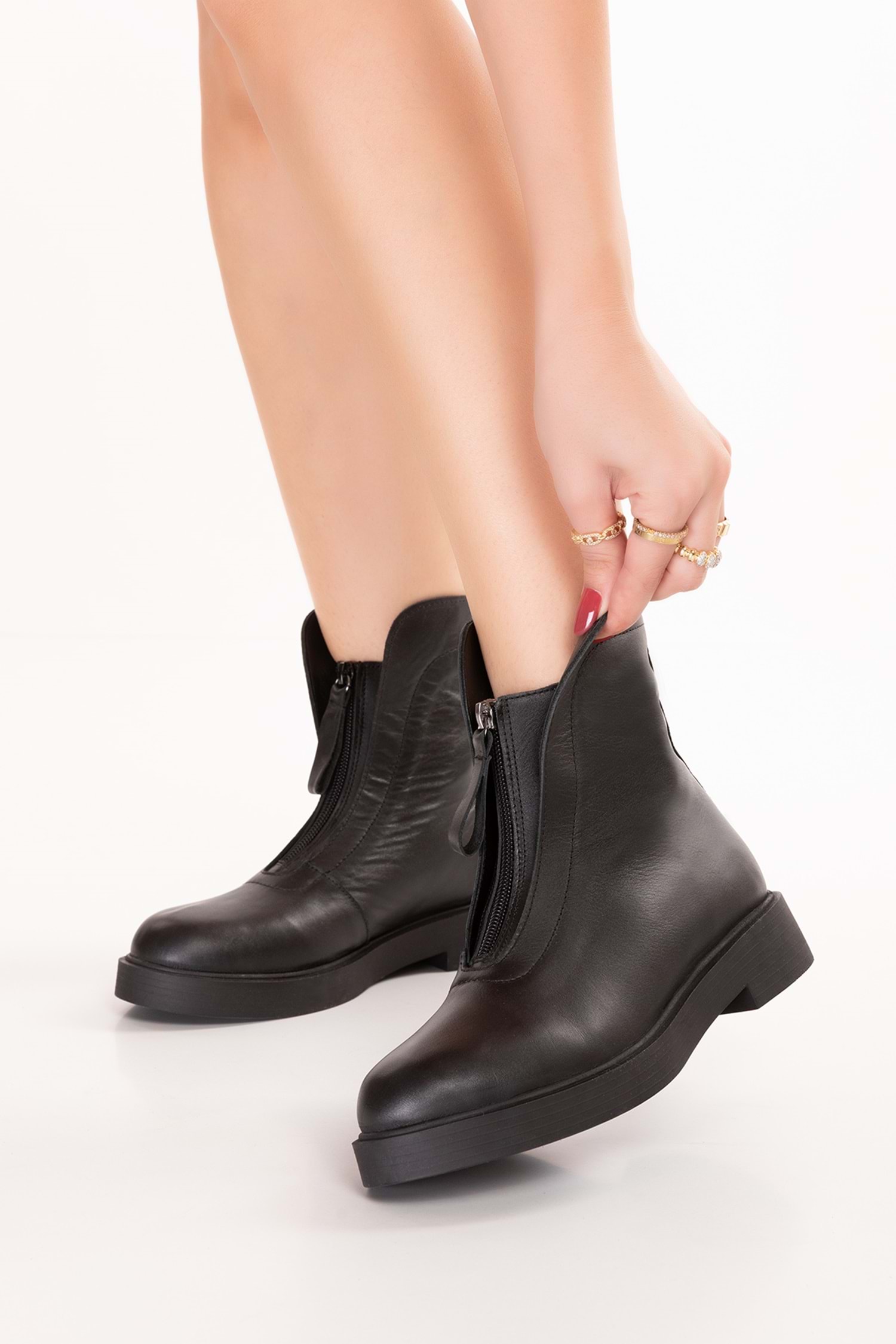 fermuarlı kadın bot, hakiki deri düz bot, sade siyah kadın bot, gondol fermuarlı bot, günlük rahat deri bot