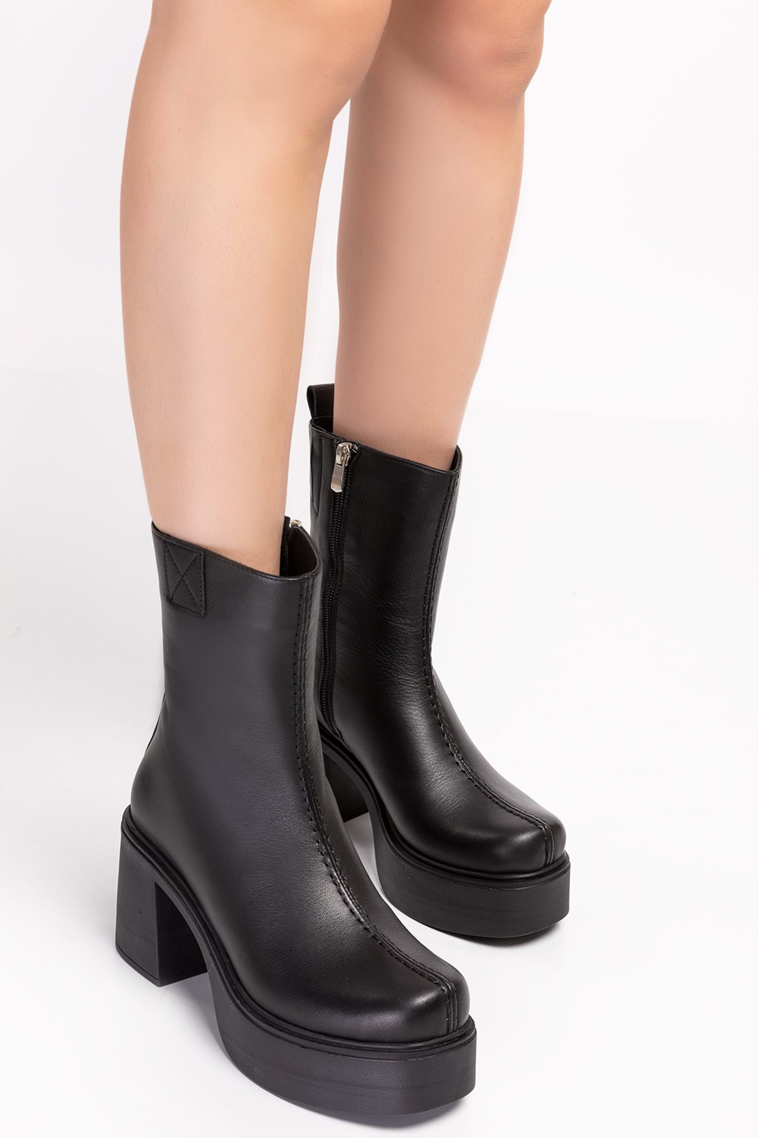 * HAKİKİ DERİ * STANDART KALIP * TOPUK:8CM * PLATFORM:4CM * TOPUKTAN İTİBAREN UZUNLUK:27 CM KONÇ:28 CM