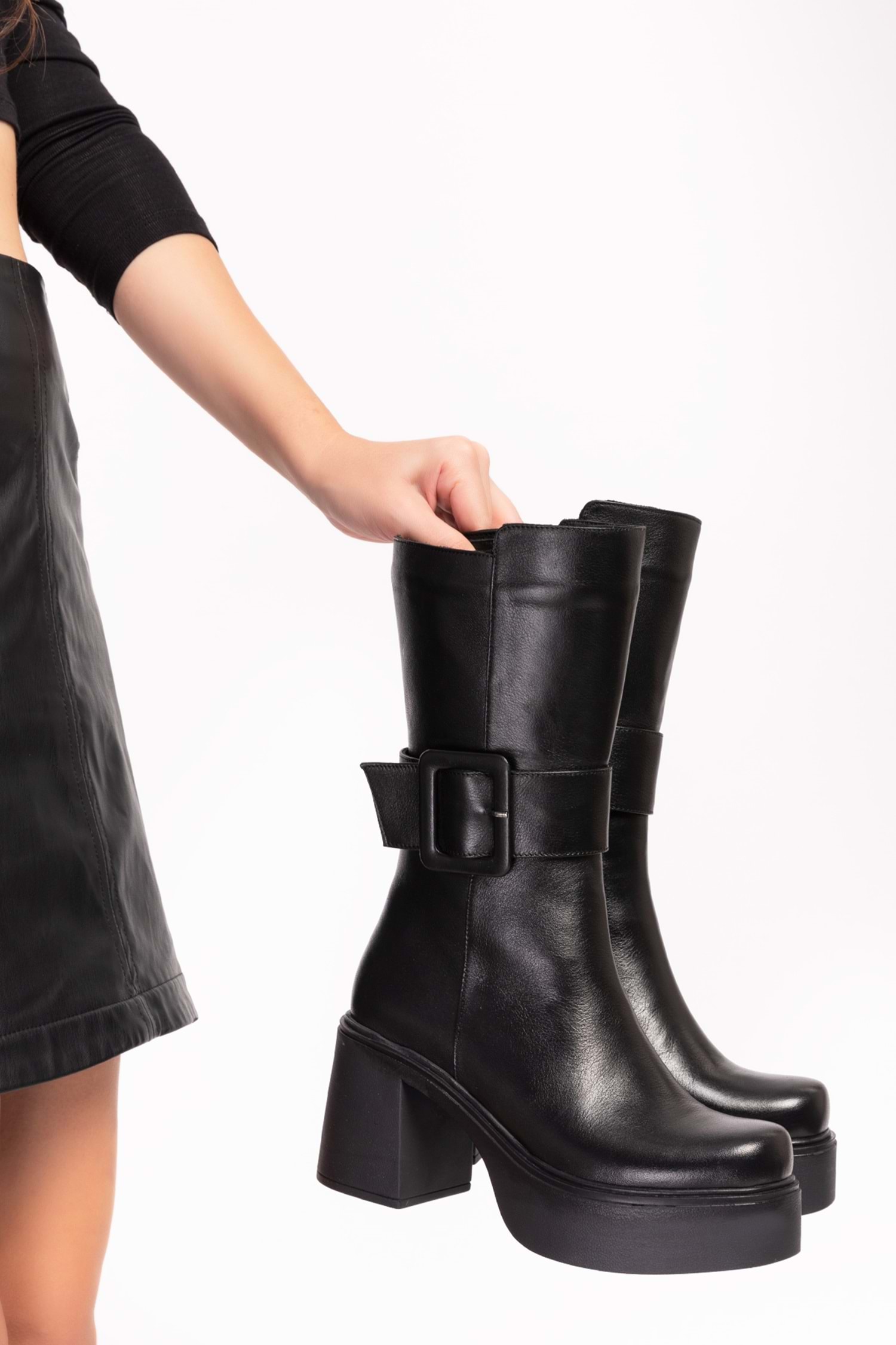 * HAKİKİ DERİ * STANDART KALIP * TOPUK:8CM * PLATFORM:4CM * TOPUKTAN İTİBAREN UZUNLUK:27 CM KONÇ:28 CM
