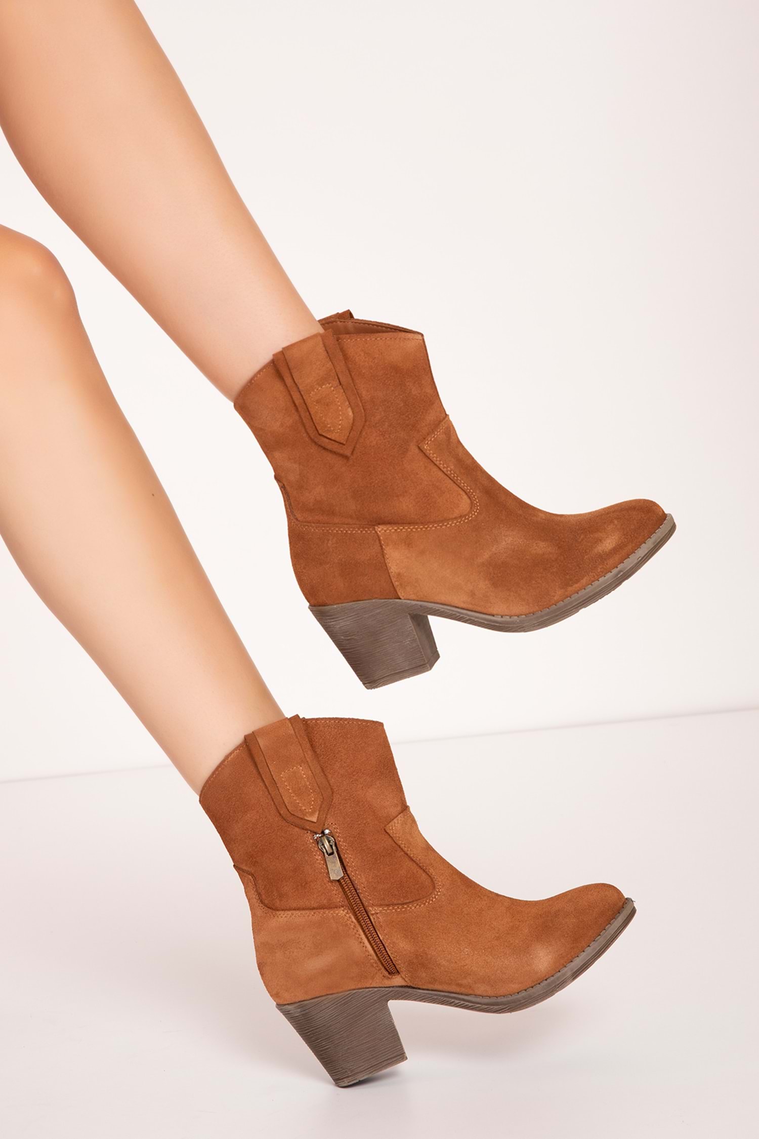 Gondol Kadın Hakiki Deri Western Tarz Bot anl.2800 - Taba Süet - 36