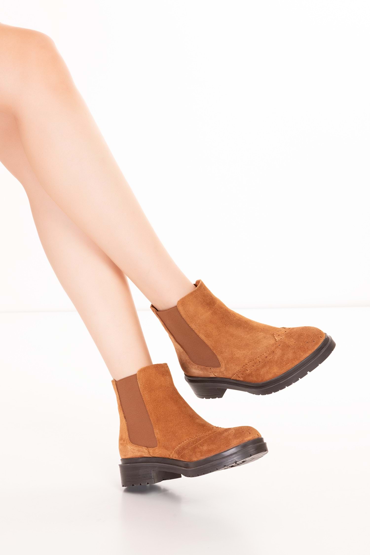 Gondol Kadın Hakiki Deri Yanları Lastikli Şık Bot Waleska - Taba Süet - 36