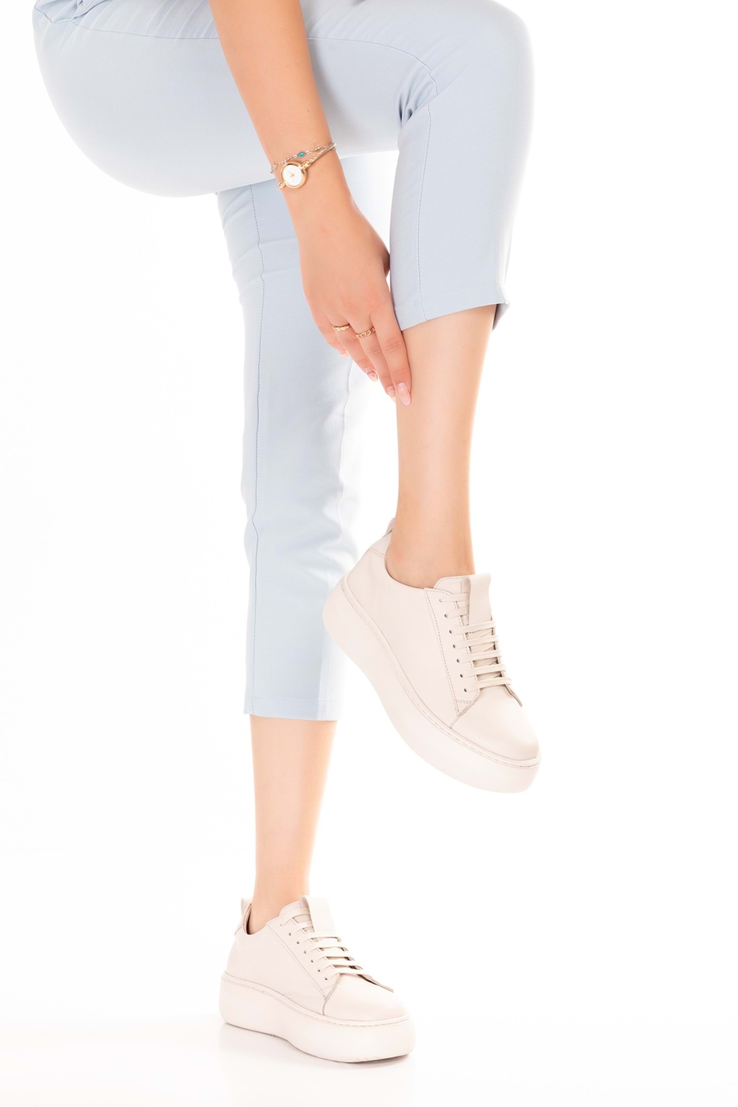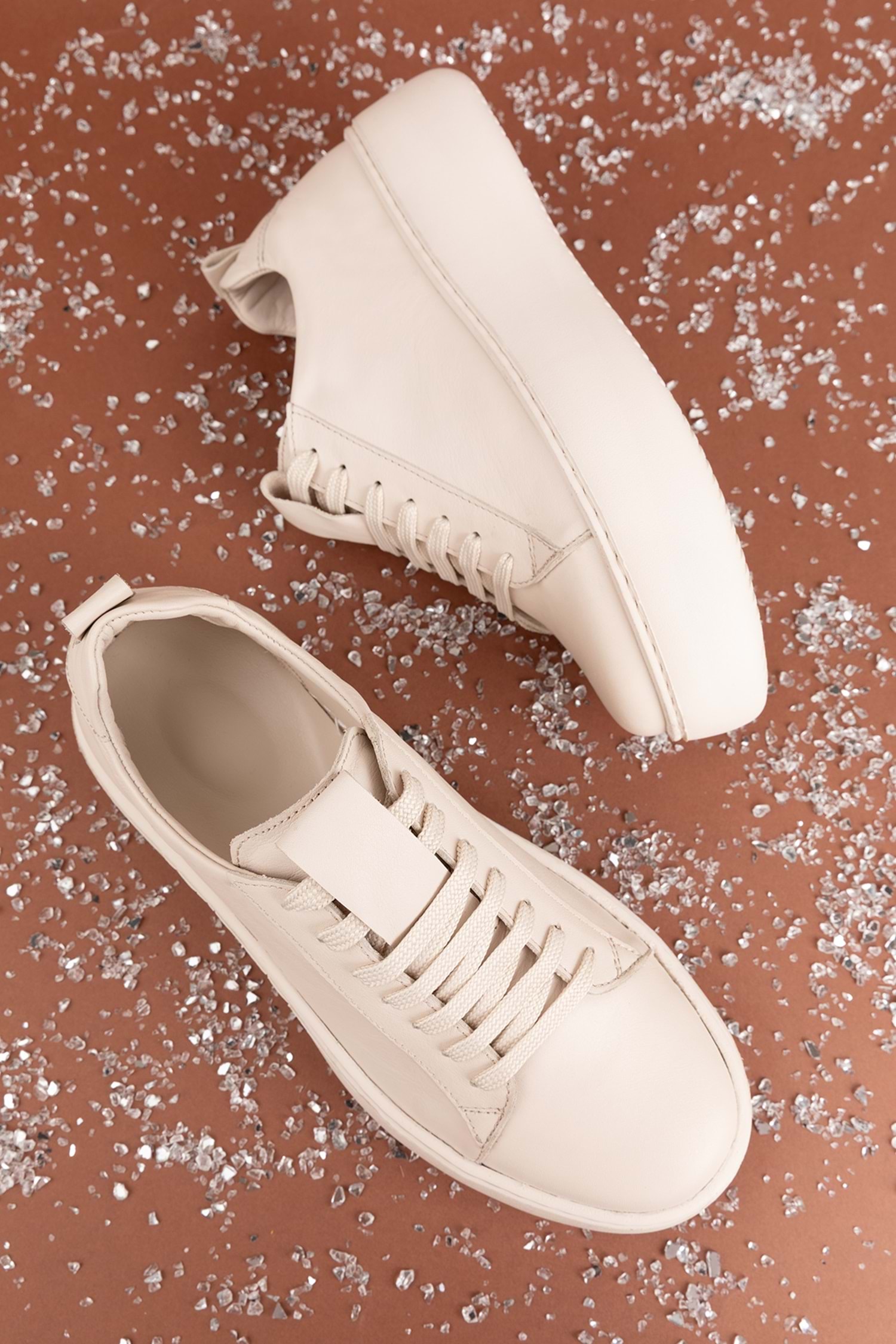 Zarif ve modern çizgileriyle günlük stilinize kolayca uyum sağlar. Spor şıklığı sevenler için hem konforlu hem de zamansız bir modeldir. Nötr tonları sayesinde pastel takımlar, keten pantolonlar veya denim kombinlerle kusursuz görünüm oluşturur. Şehir yürüyüşlerinden hafta sonu gezilerine kadar çok yönlü kullanım sunar.