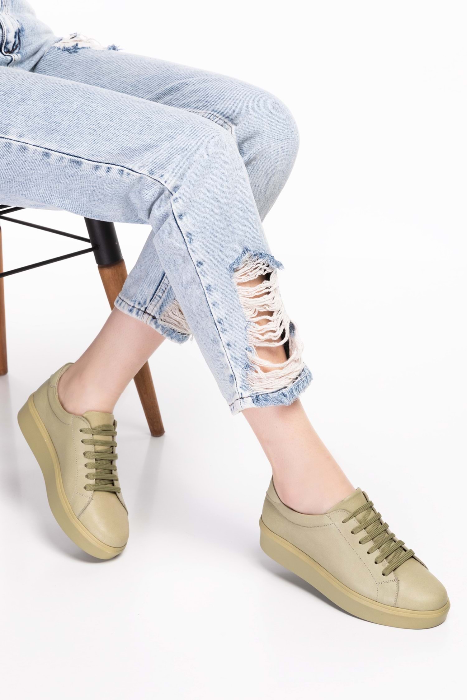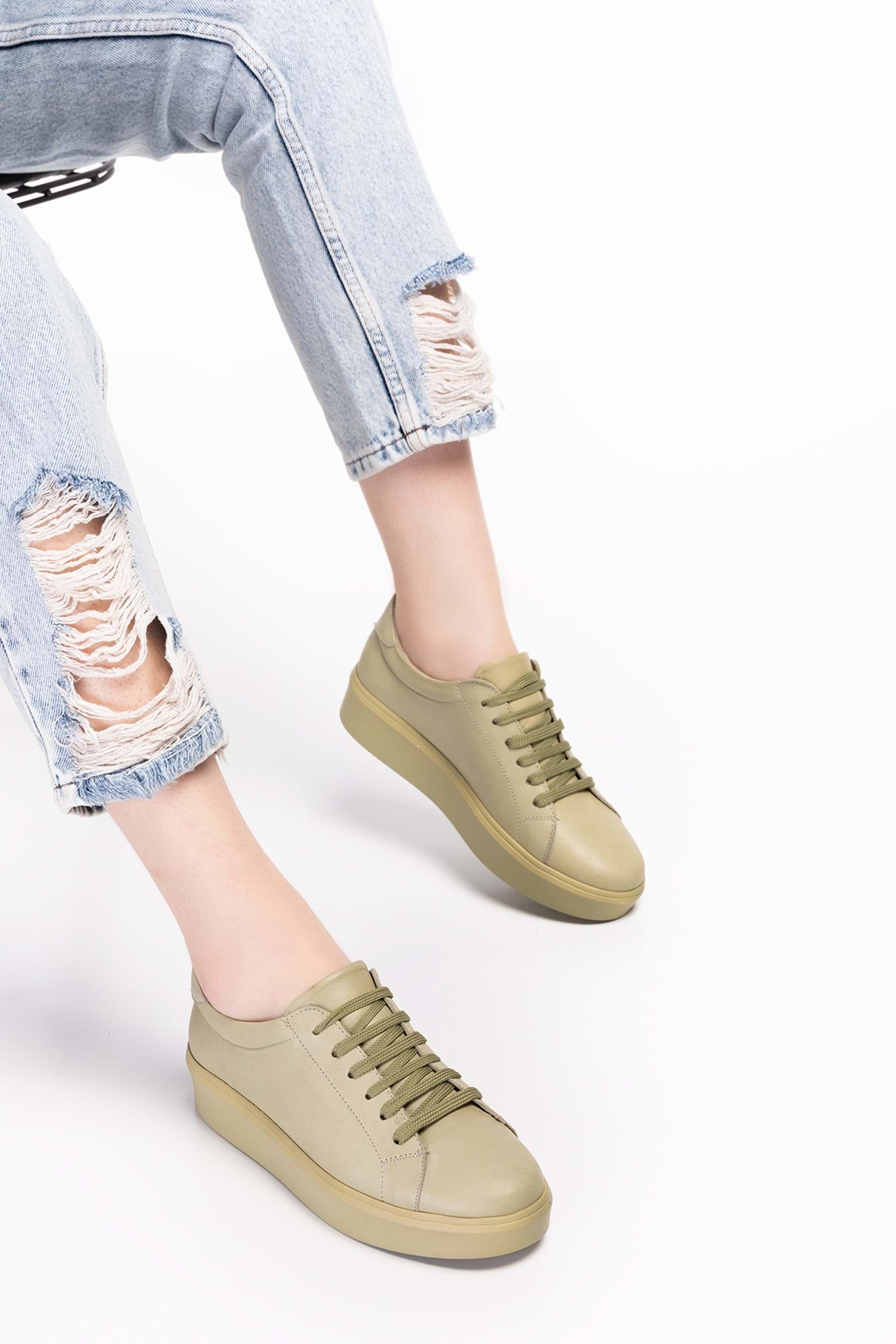 Gondol Hakiki Deri Anatomik Taban Spor Ayakkabı ell.6839 - Yeşil - 36