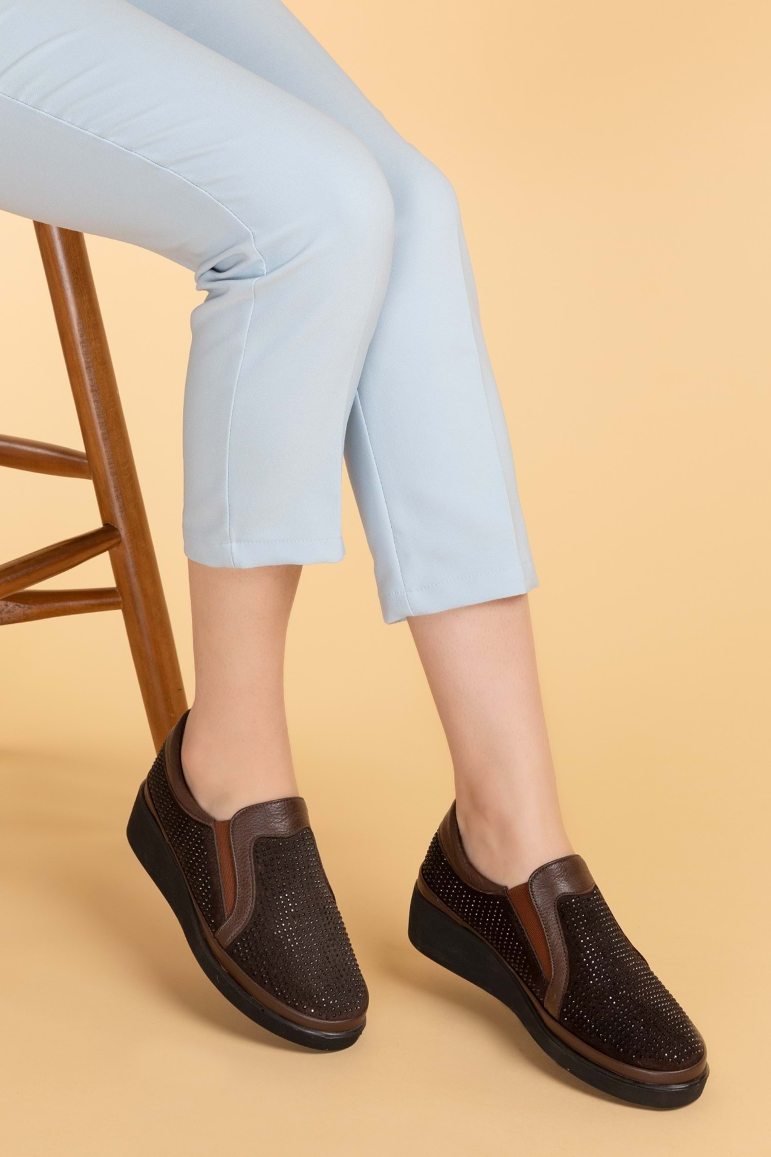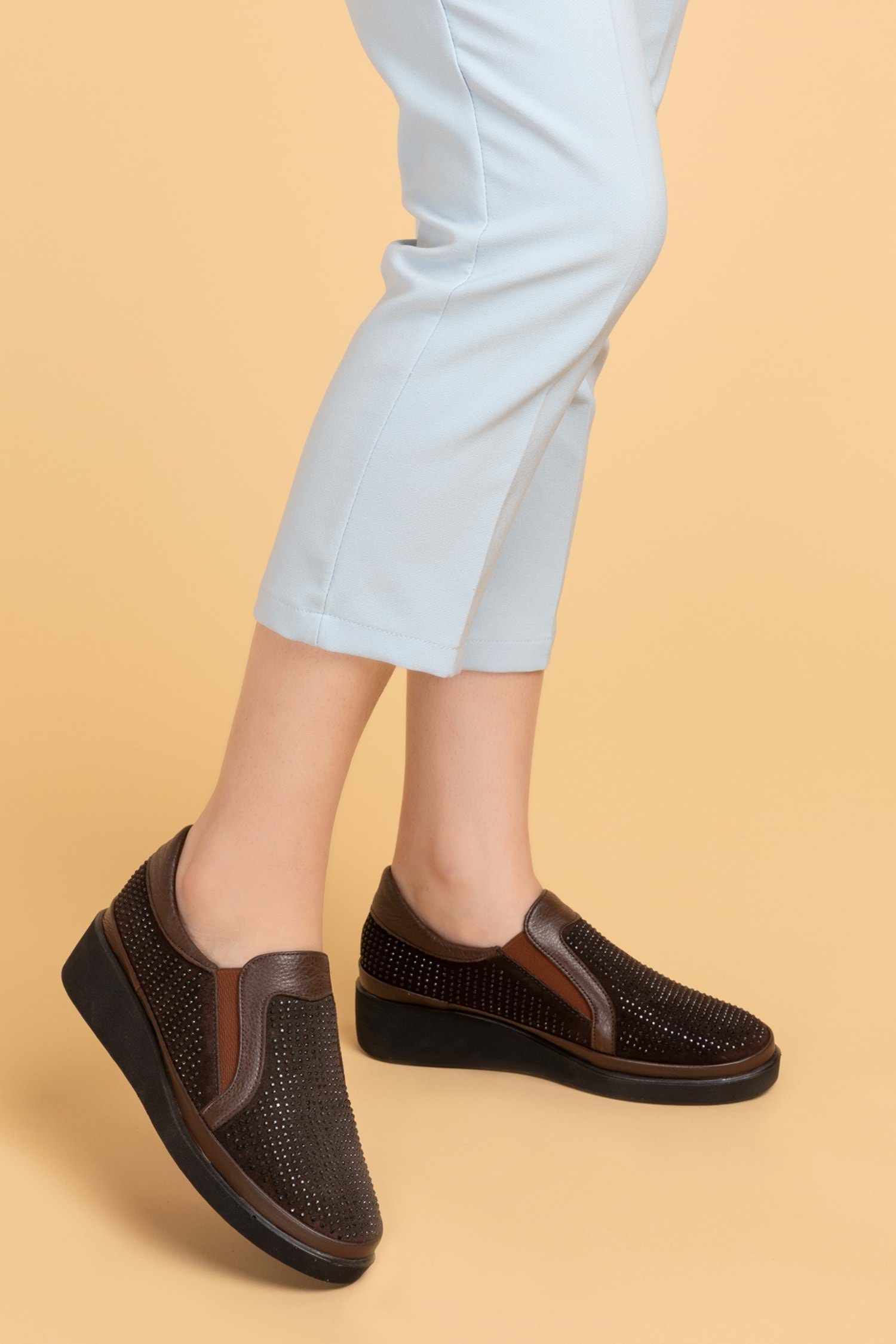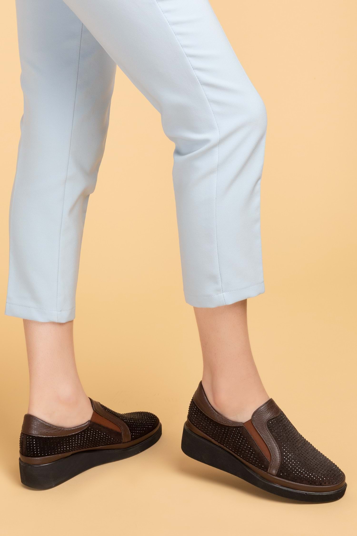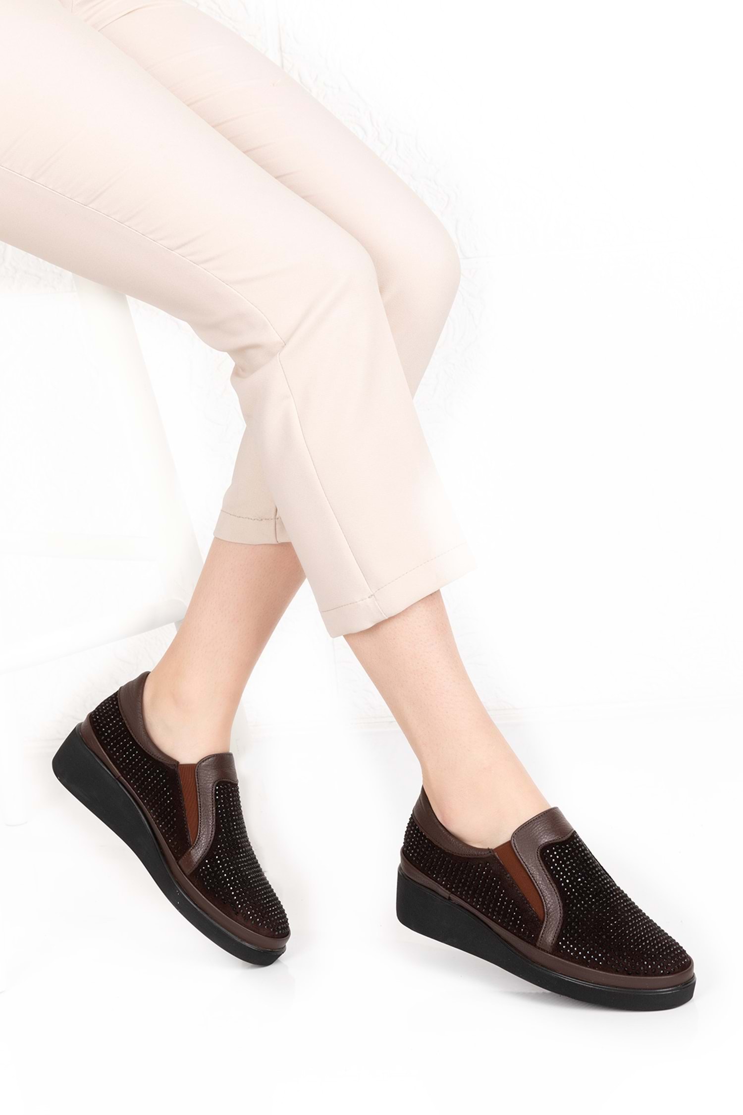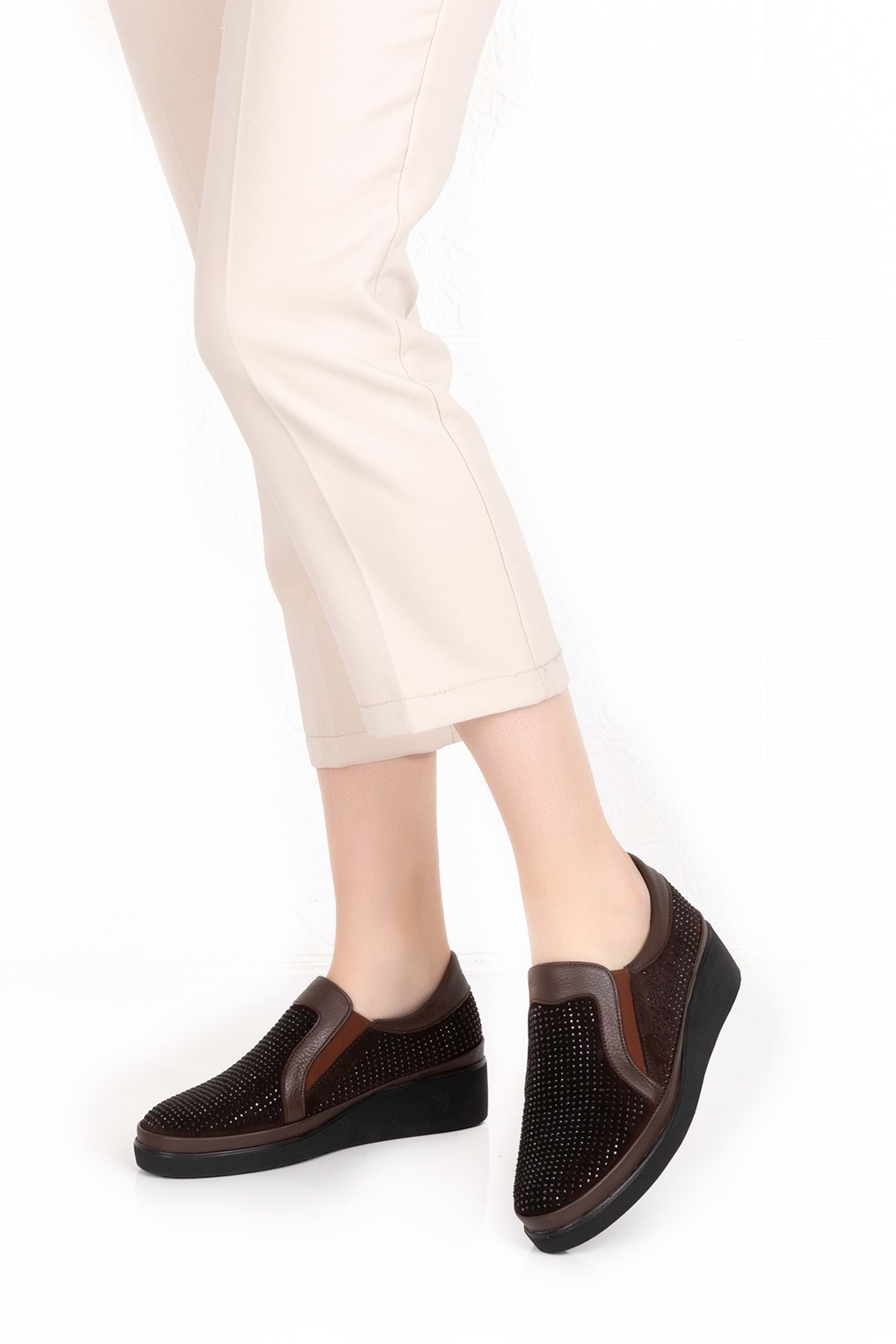 * Hakiki Deri * Taş Detaylı * 4 cm Topuk * Anatomik Taban * Günlük Rahat