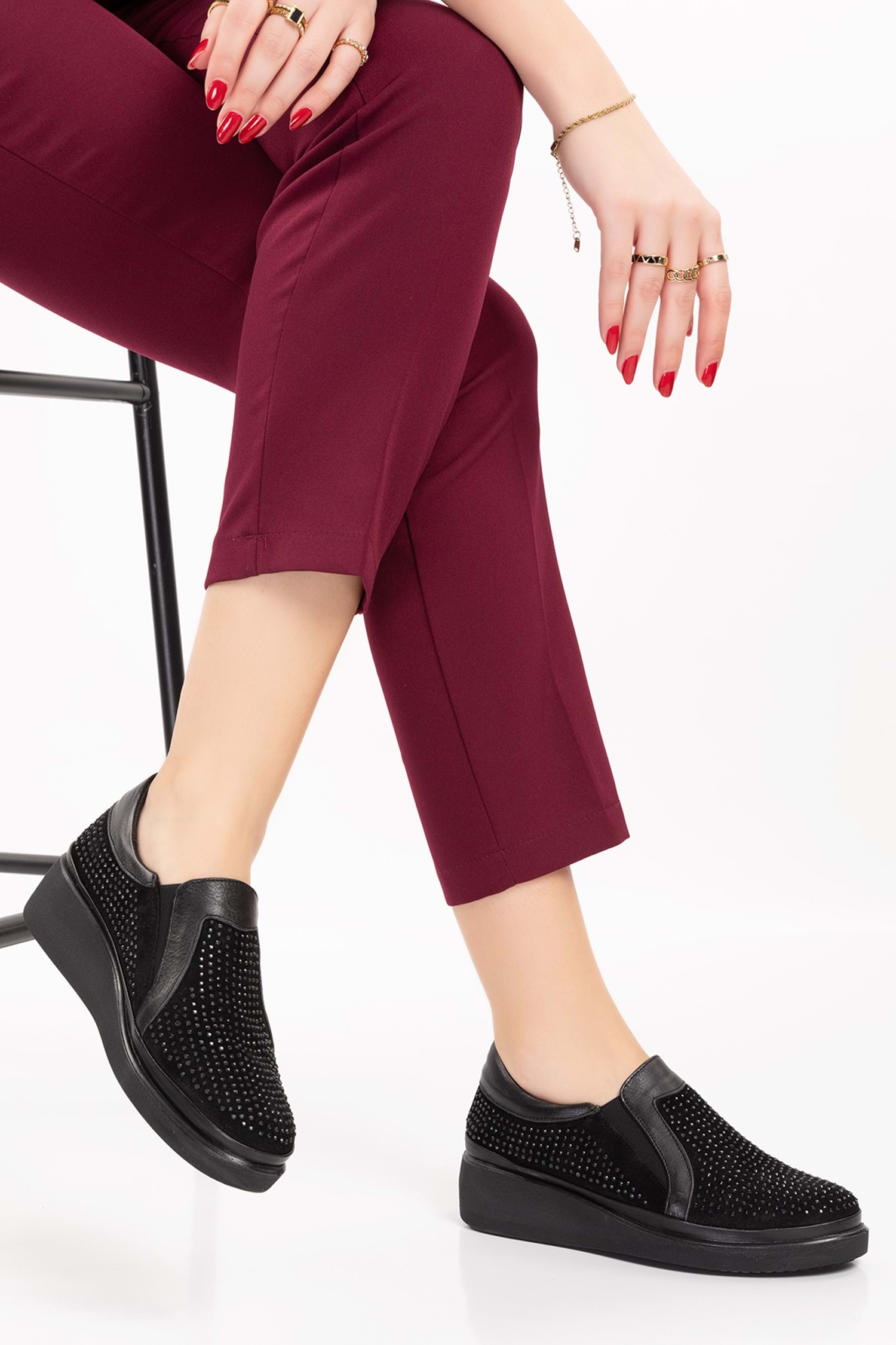 * Hakiki Deri * Taş Detaylı * 4 cm Topuk * Anatomik Taban * Günlük Rahat