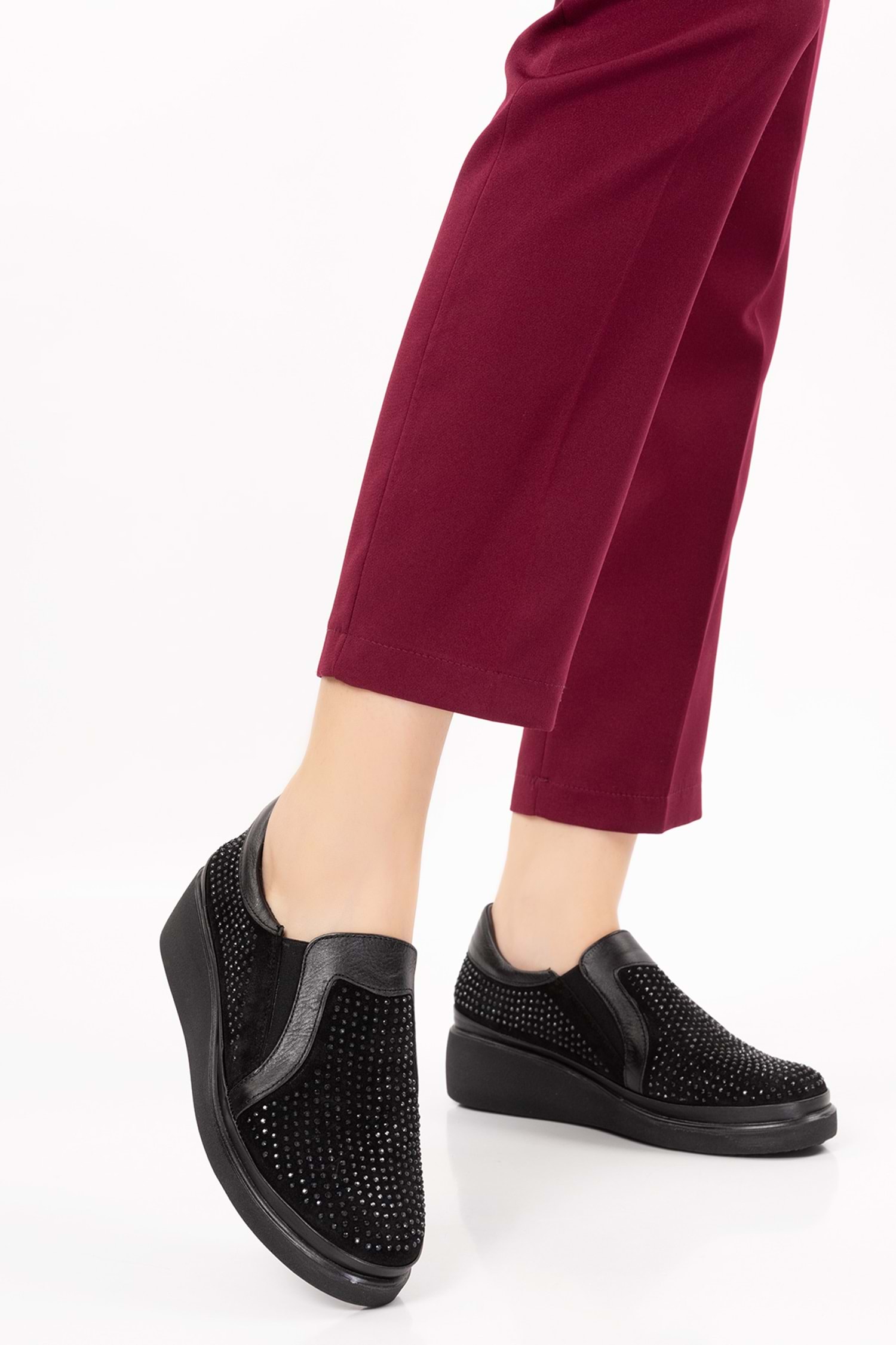 * Hakiki Deri * Taş Detaylı * 4 cm Topuk * Anatomik Taban * Günlük Rahat