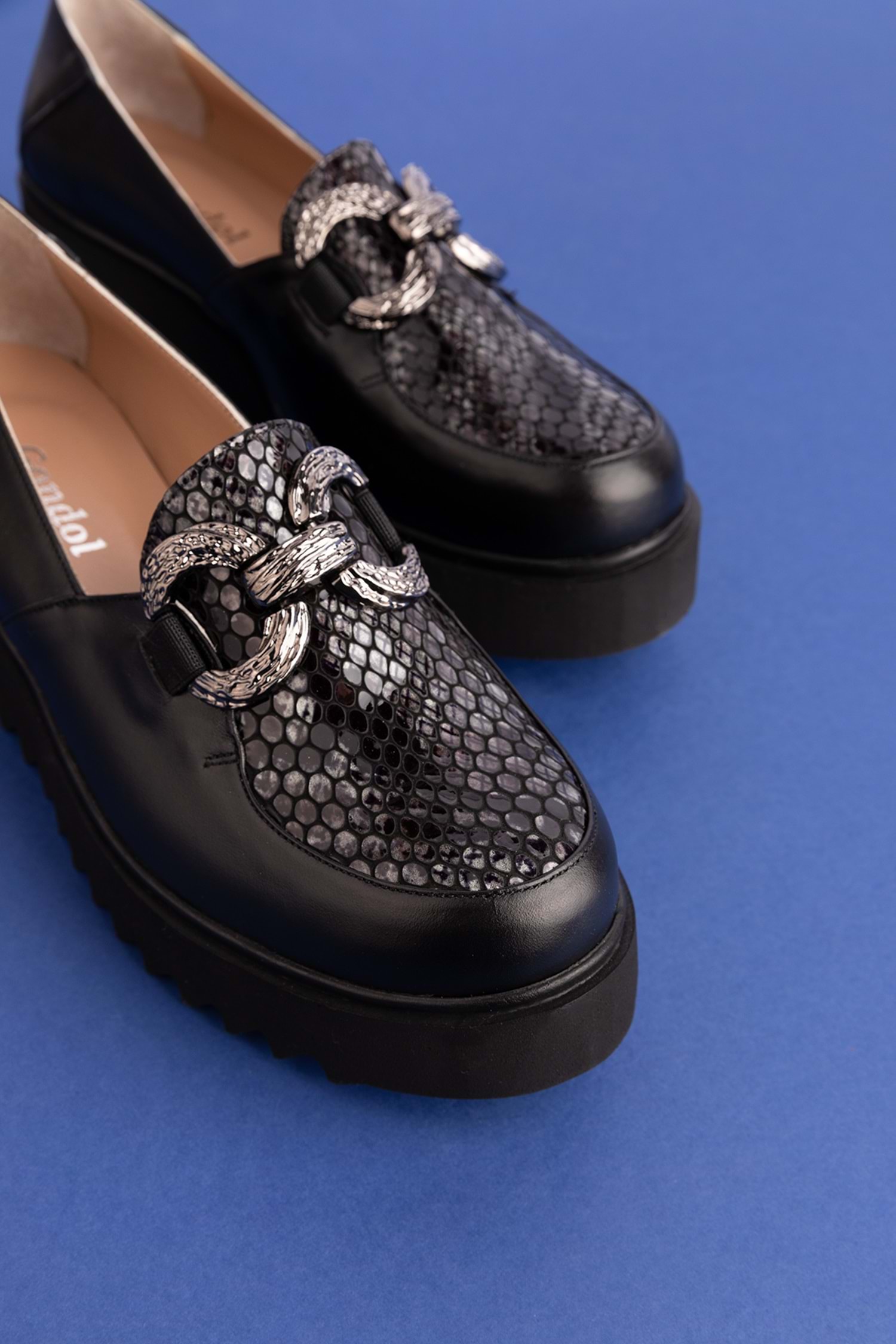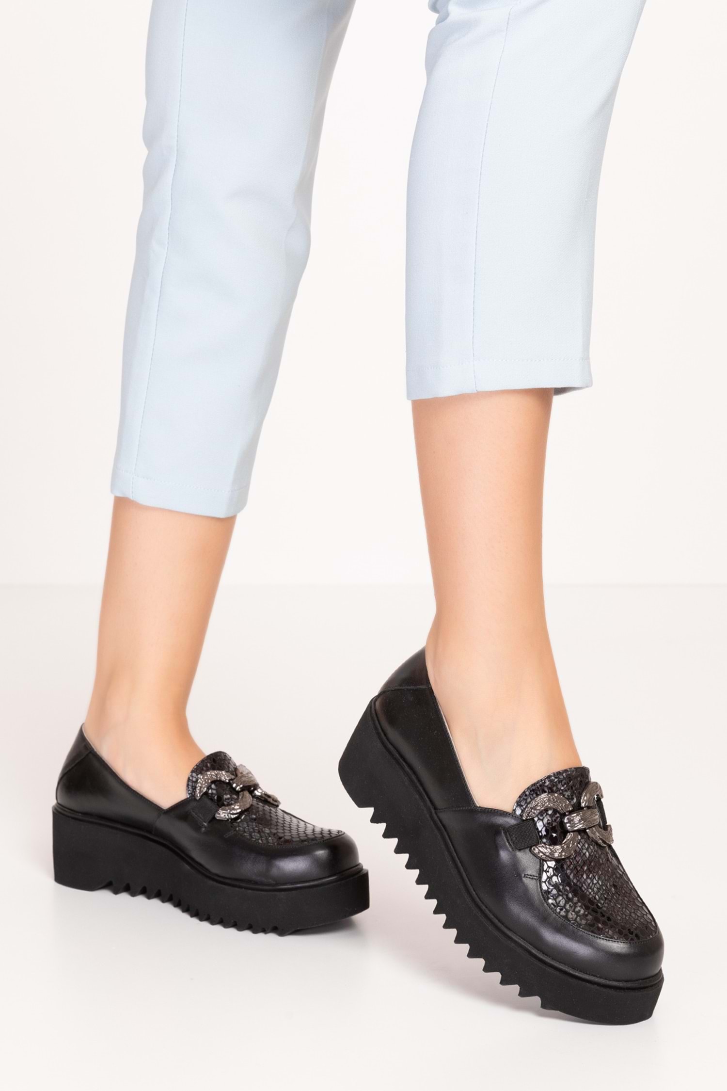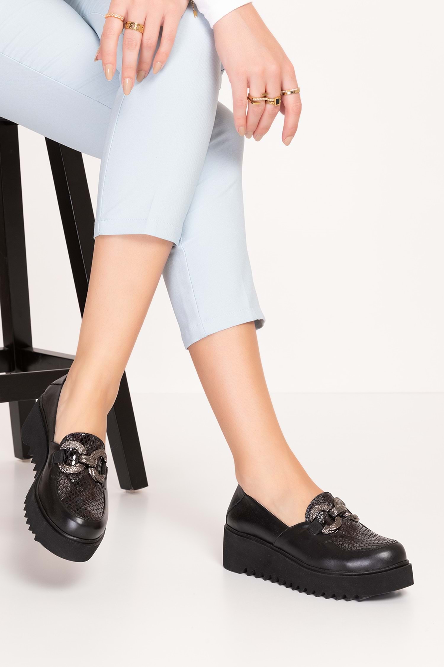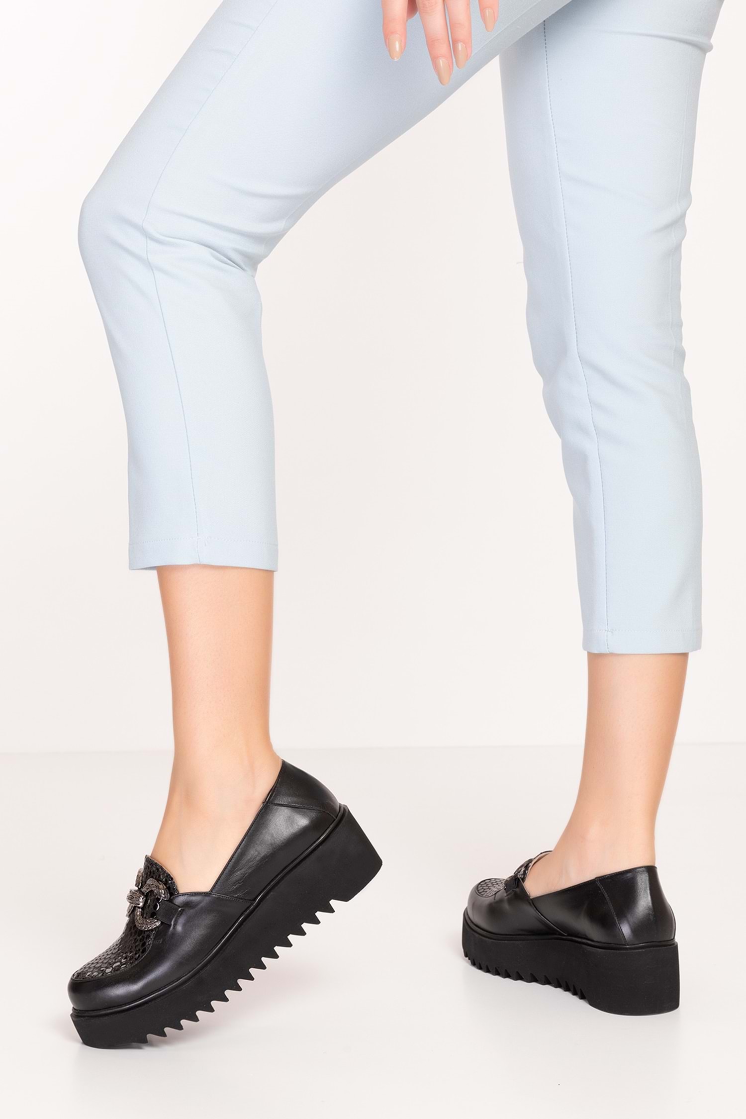 Gondol Hakiki Deri Dolgu Topuklu Tokalı Ayakkabı ast.8403 - Siyah Petek - 36