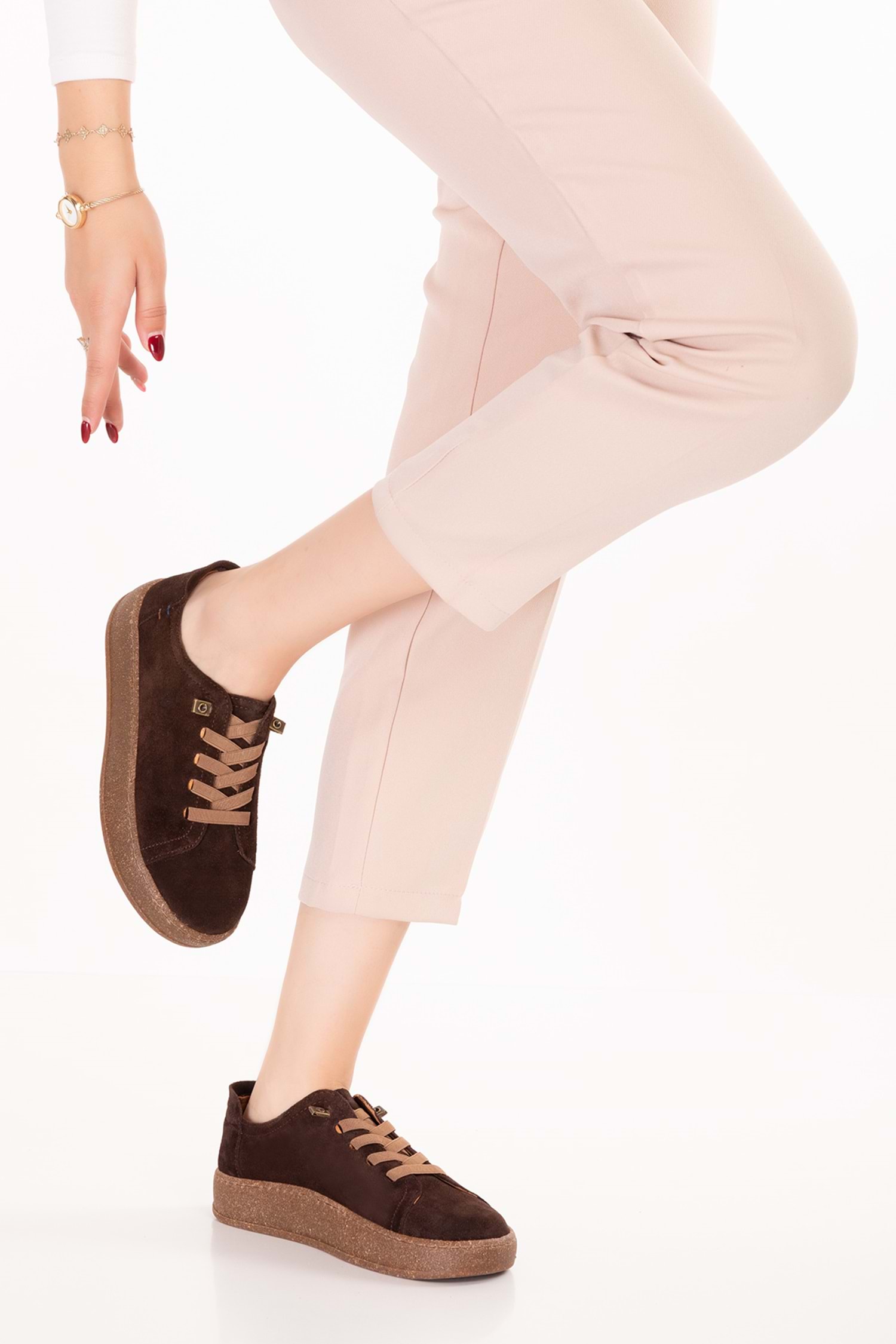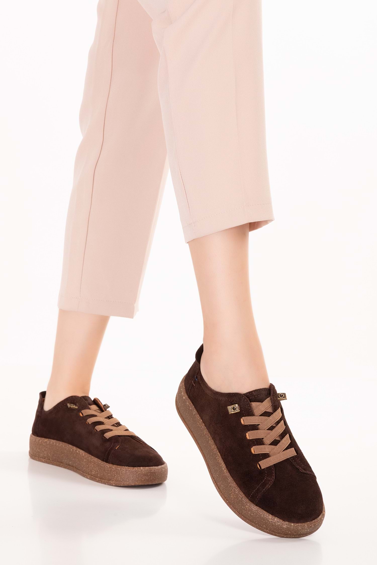 Gondol Hakiki Deri Günlük Rahat Lastik Bağcıklı Casual Ayakkabı in.525 - Kahve Süet - 36