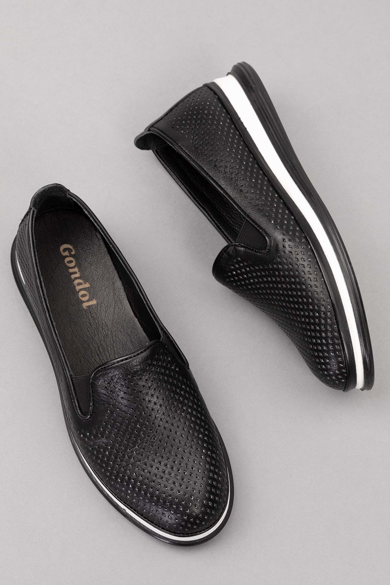 Gondol Hakiki Deri Günlük Rahat Yazlık Ayakkabı yt.112 - Siyah - 40