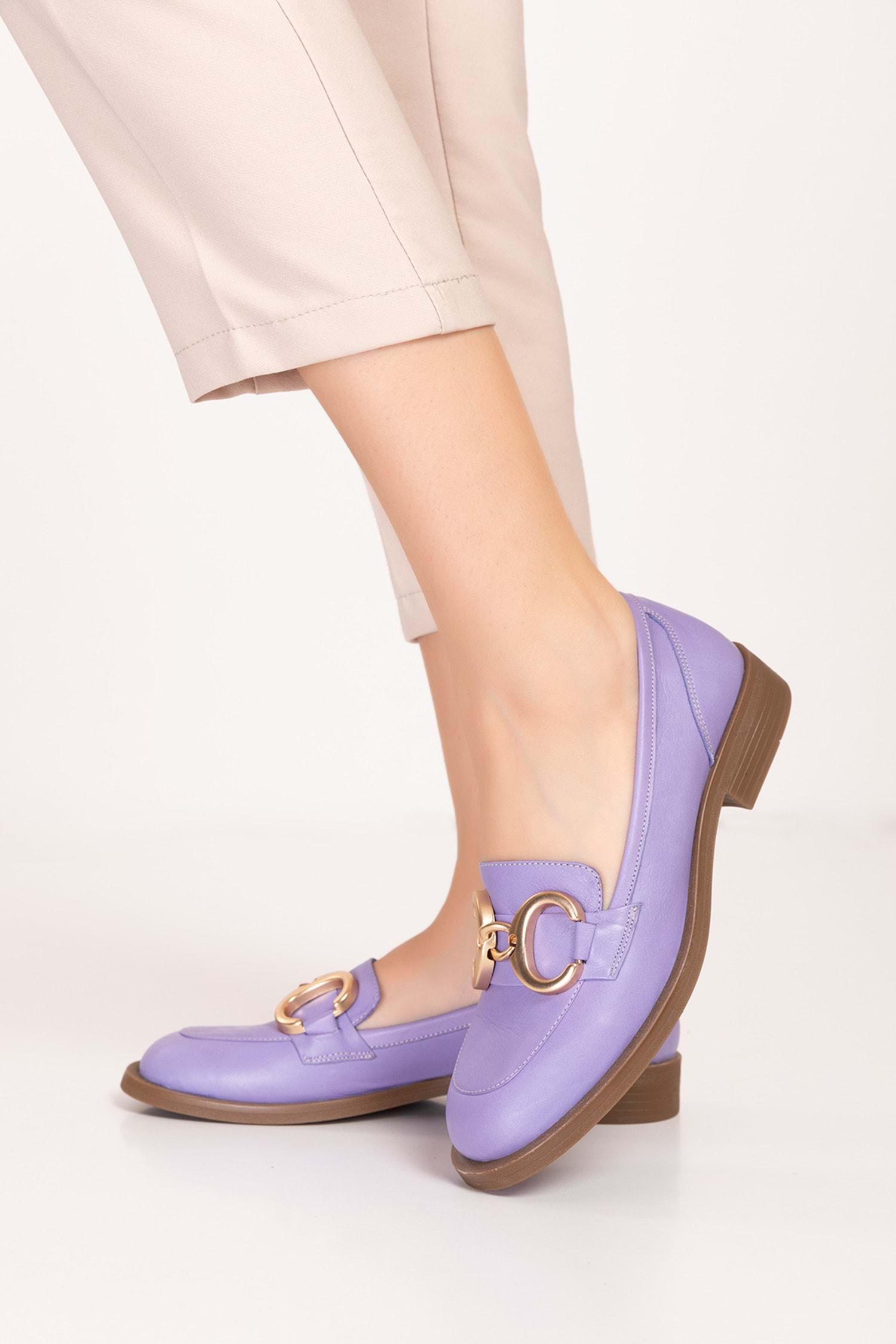 Gondol Hakiki Deri Günlük Toka Detaylı Loafer alpx.322 - Mor - 36