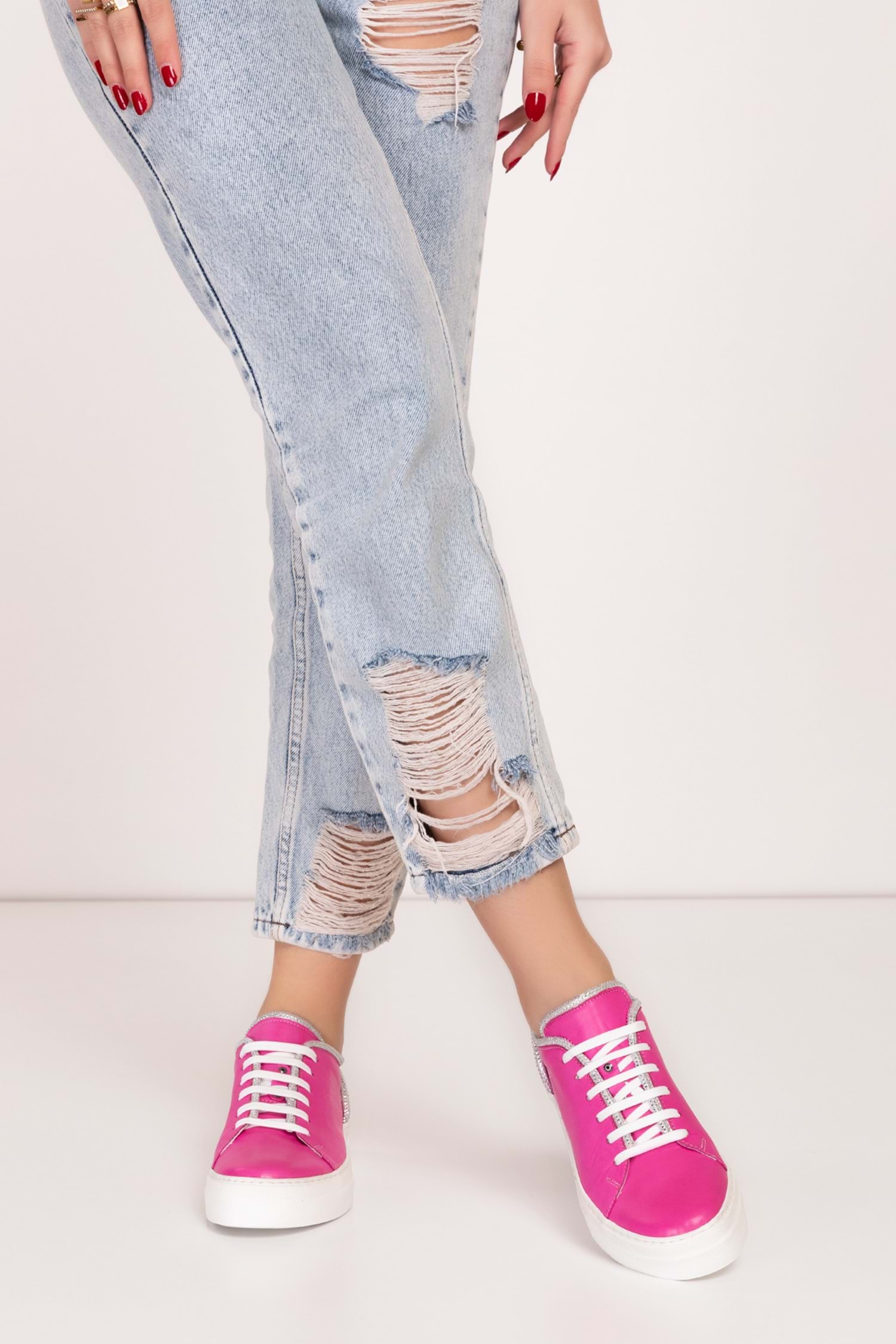 Gondol Hakiki Deri Taş Detay Anatomik Taban Spor Ayakkabı Als.1358 - Barbie - 35