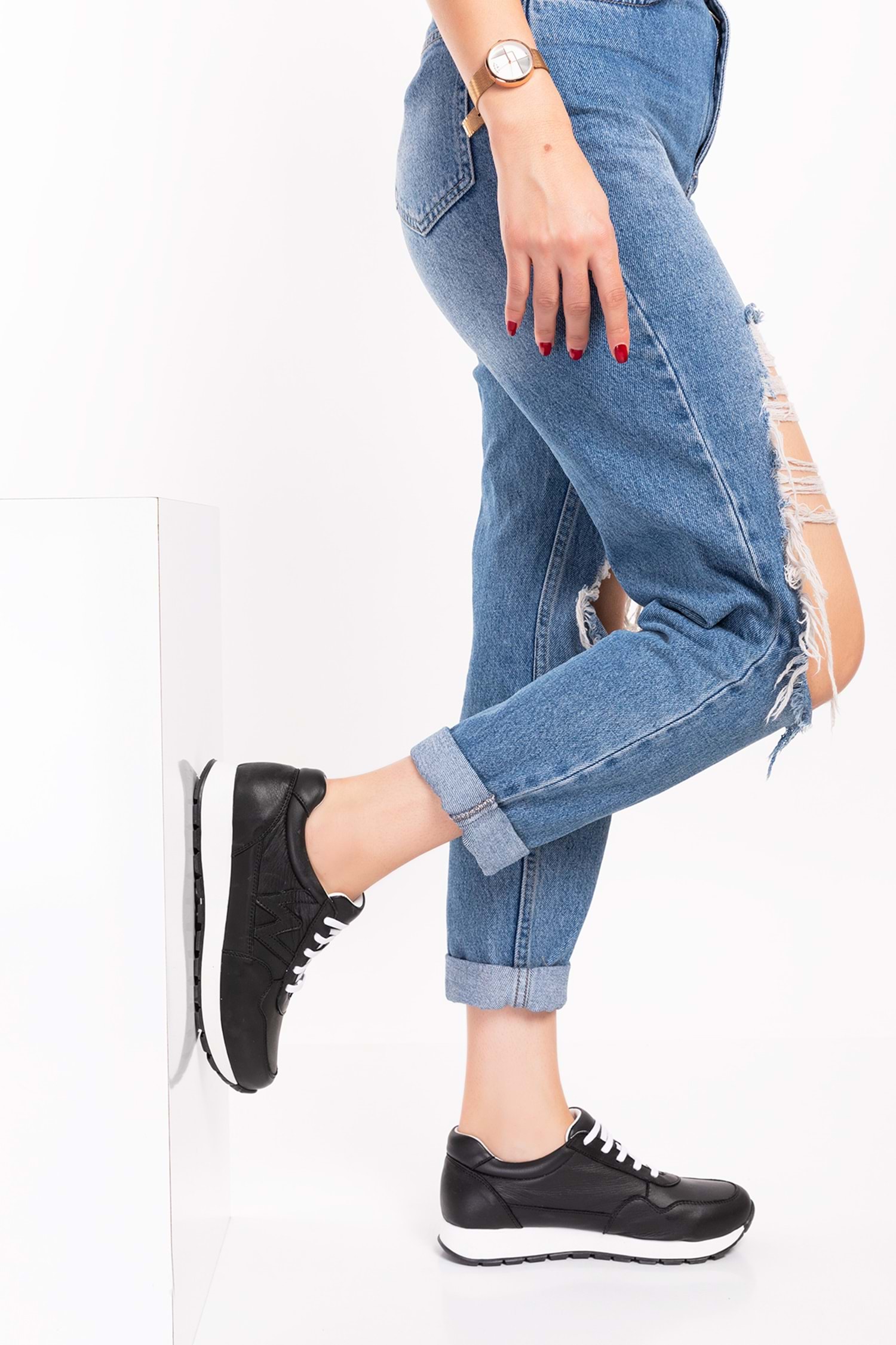 Gondol Içi Dışı Hakiki Deri Anatomik Taban Spor Ayakkabı flf.444 - Siyah - 36