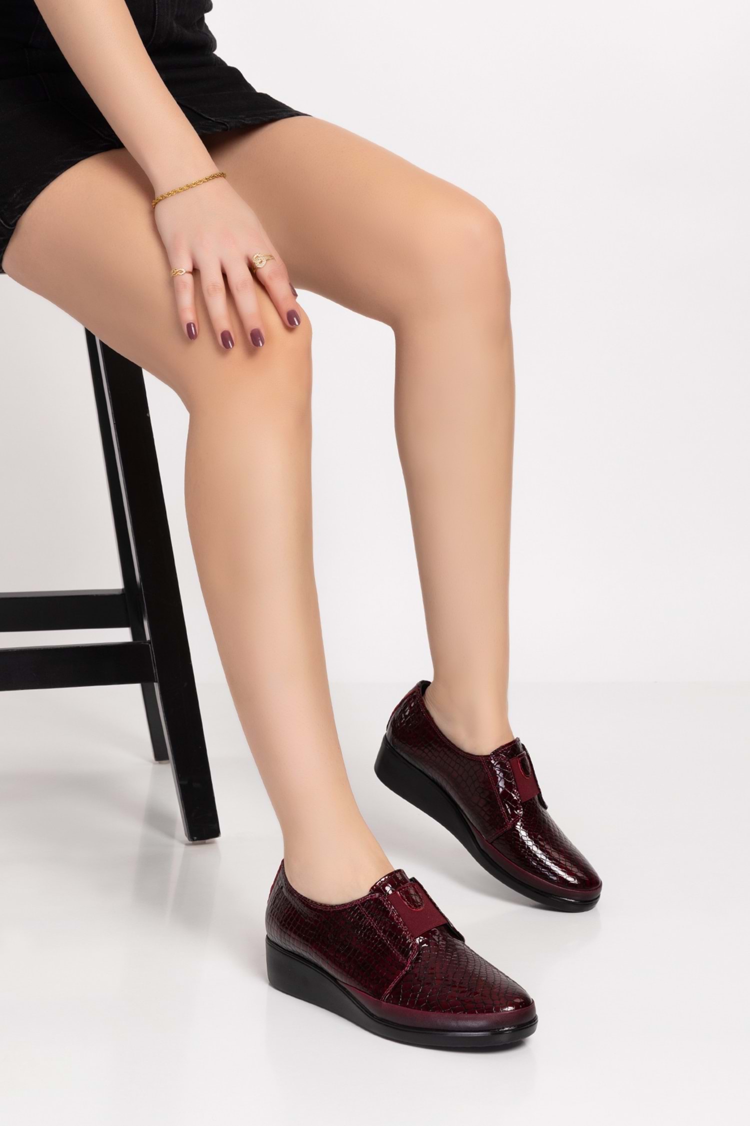 Gondol Kadın Hakiki Deri Anatomik Taban Rahat Ayakkabı elnr.1201-1 - Bordo Petek - 41