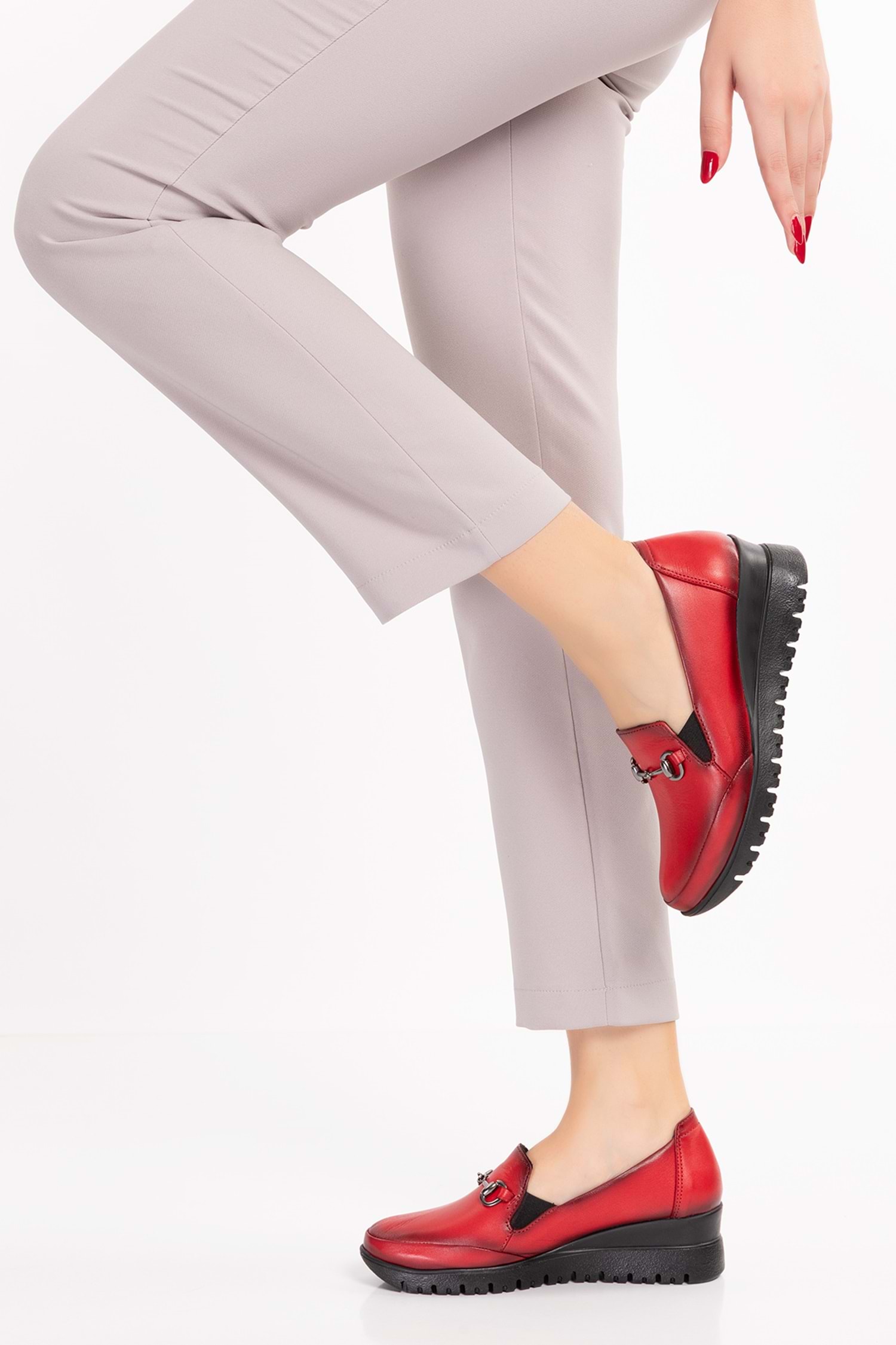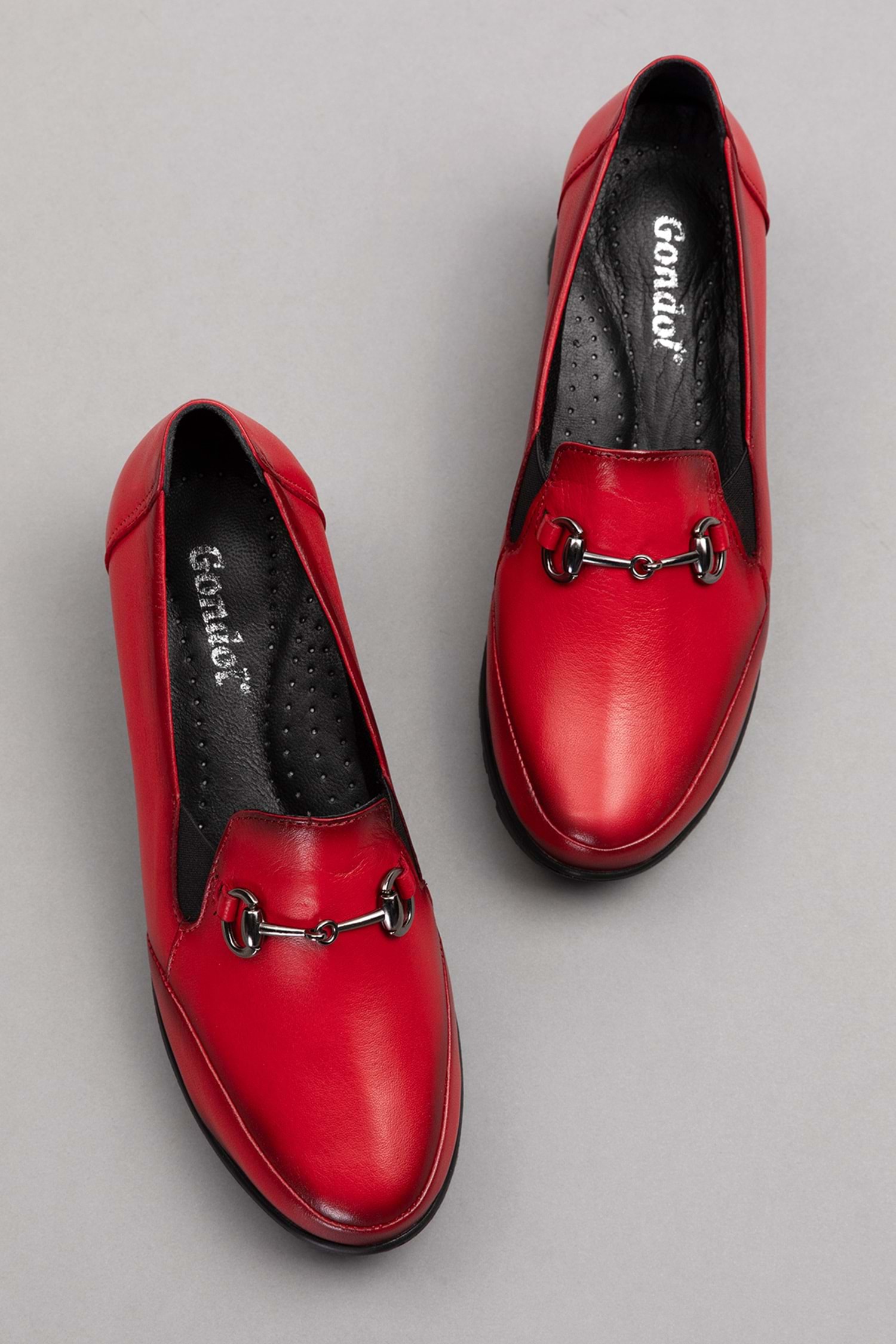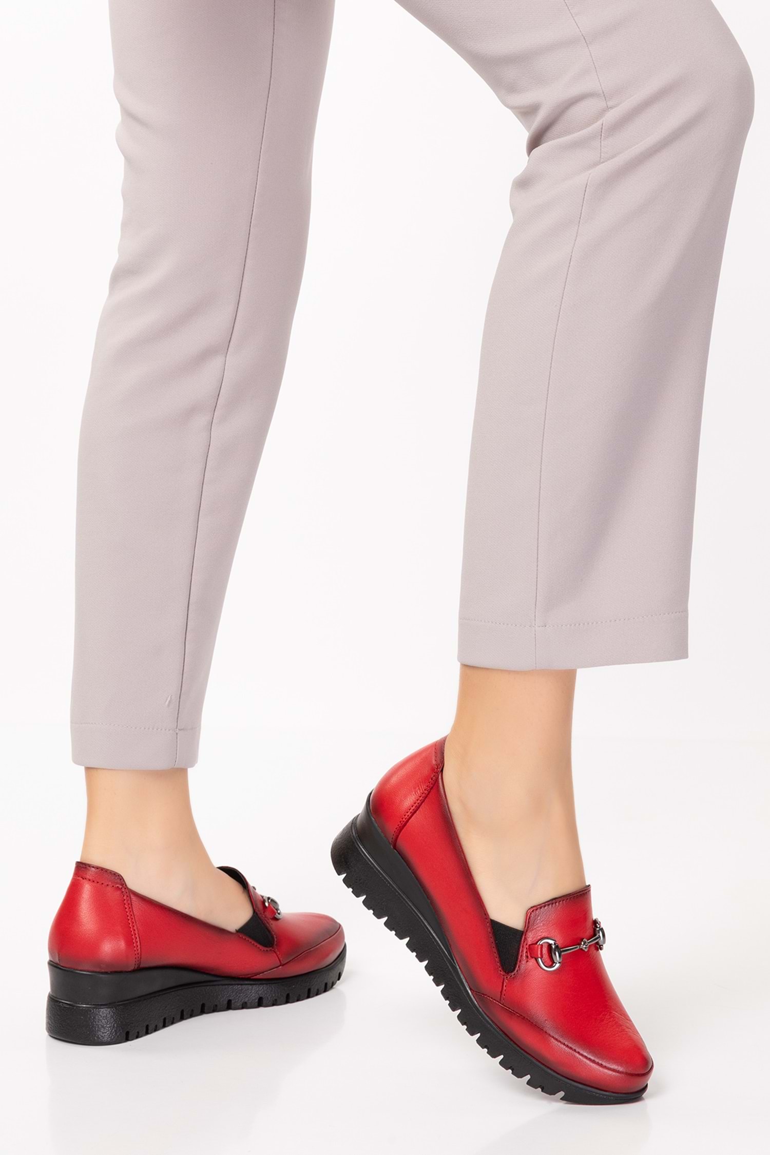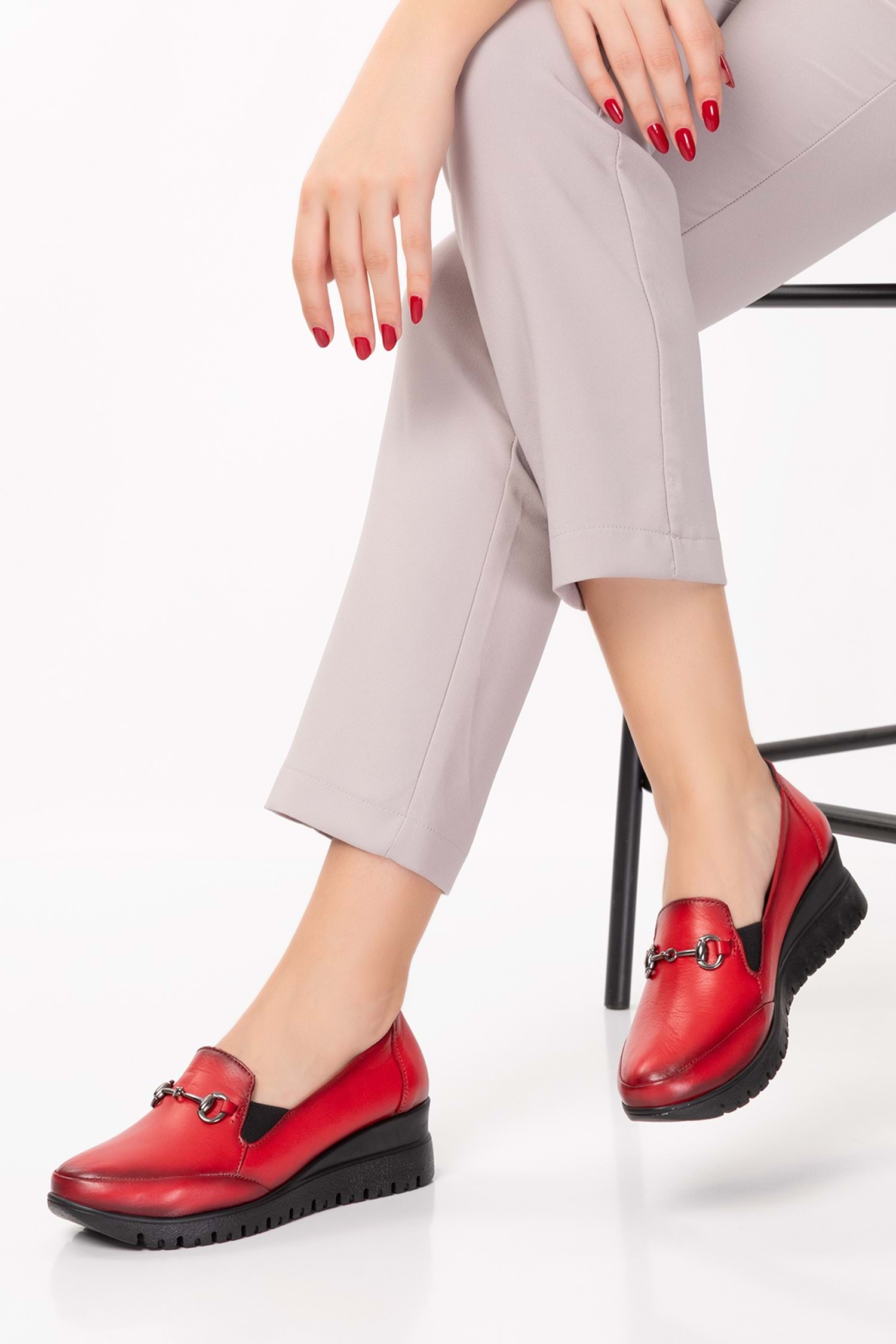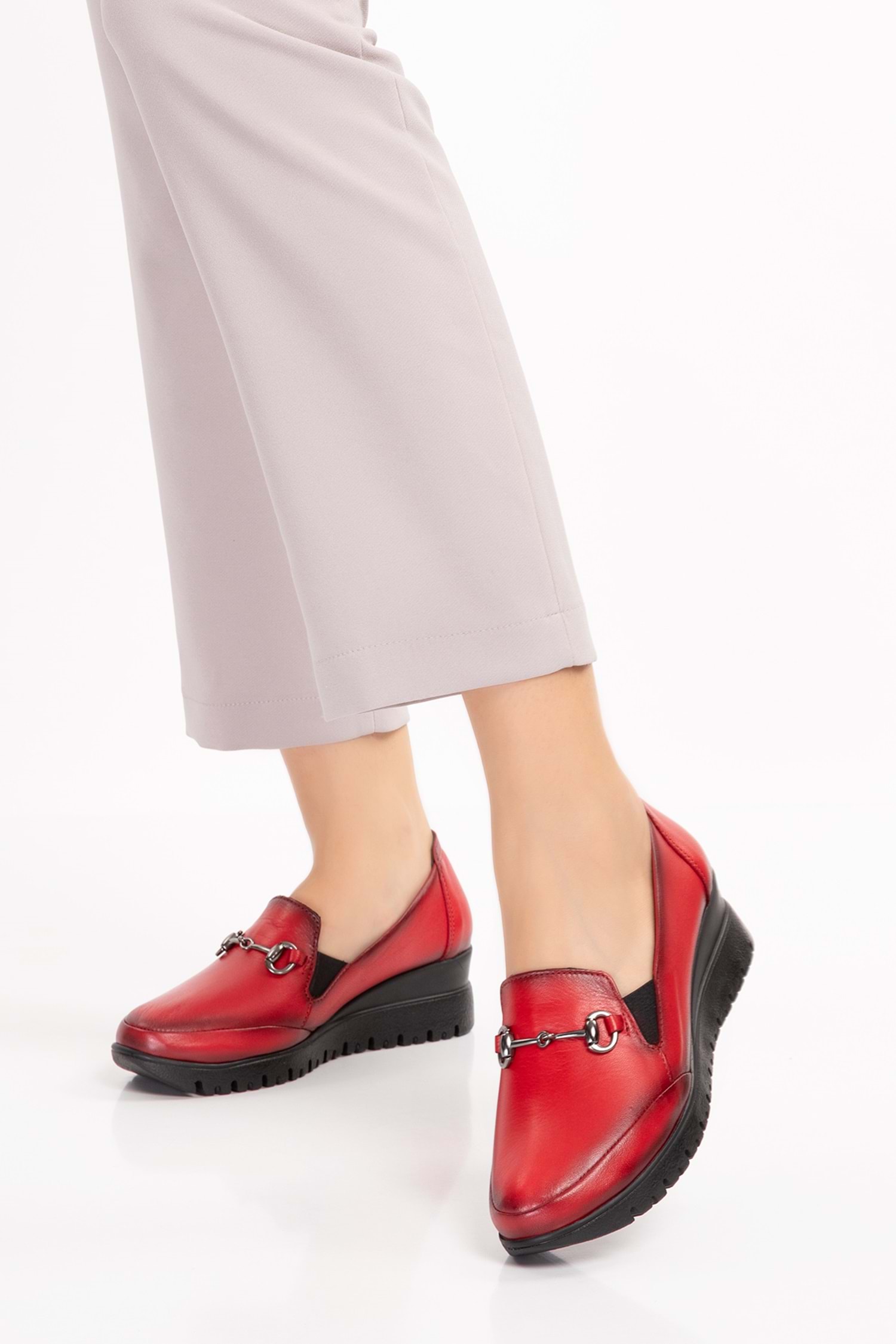 Gondol Kadın Hakiki Deri Anatomik Taban Tokalı Casual Ayakkabı pyt.6210 - kırmızı - 40