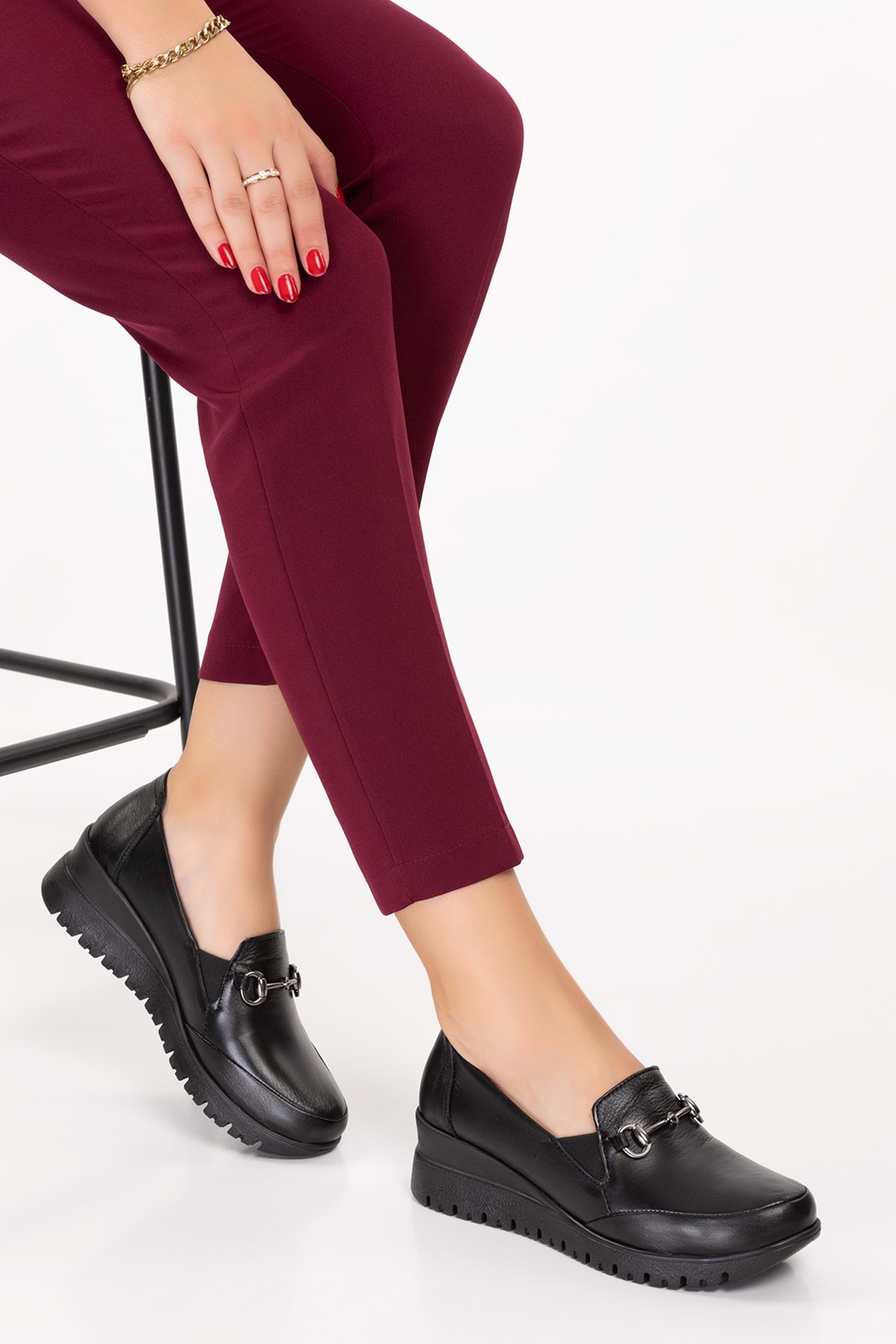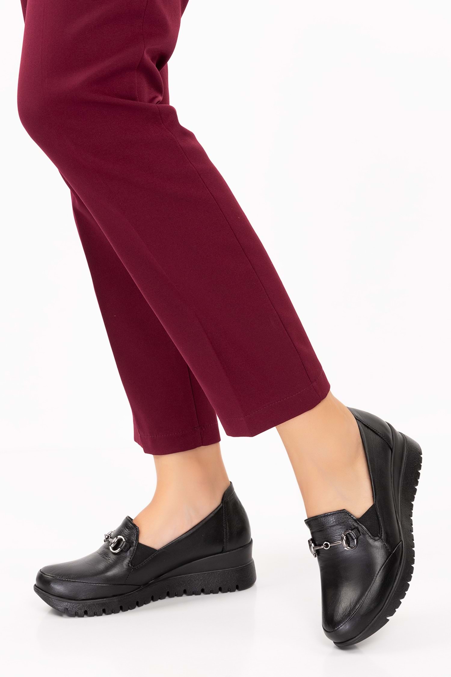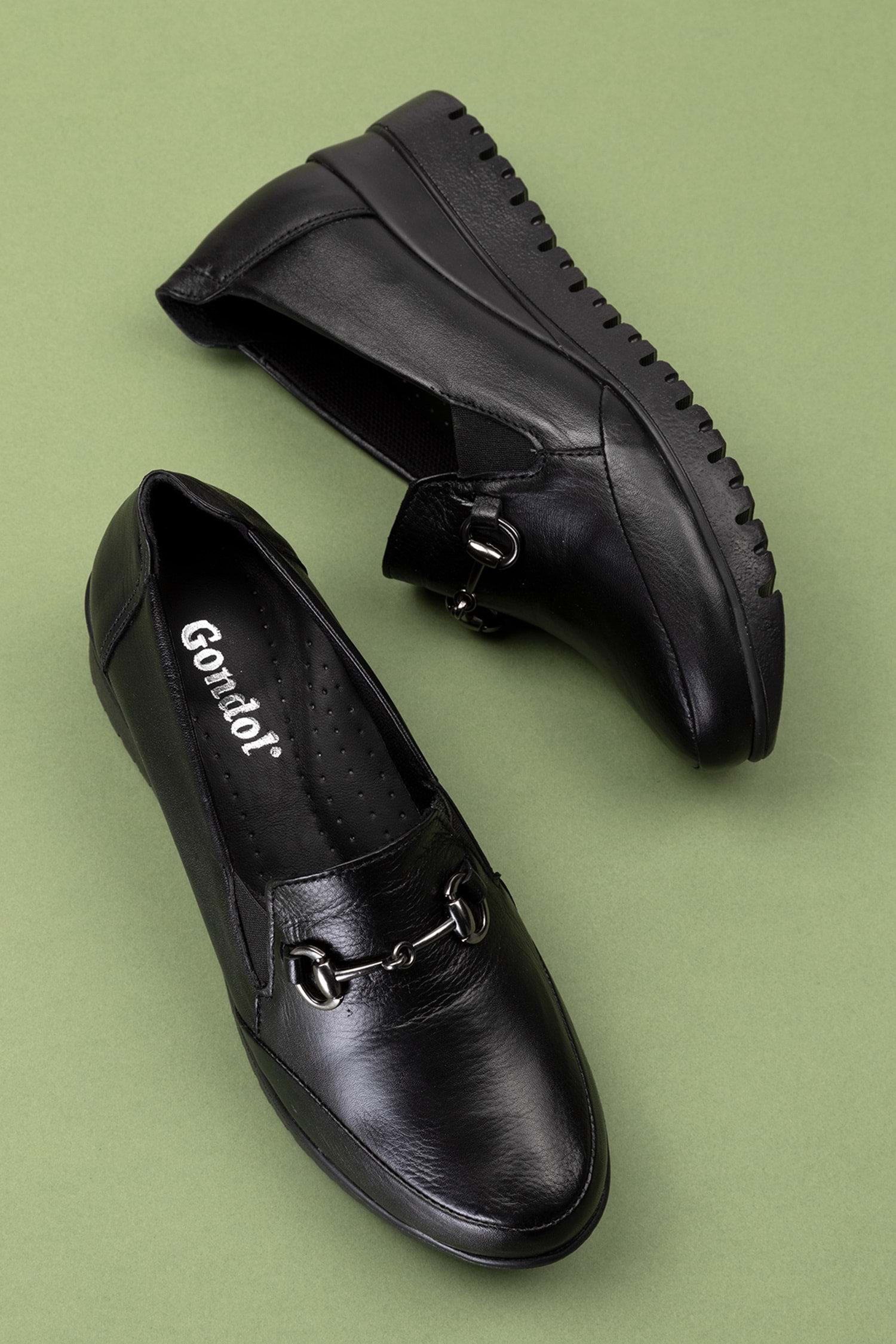 Gondol Kadın Hakiki Deri Anatomik Taban Tokalı Casual Ayakkabı pyt.6210 - Siyah - 37