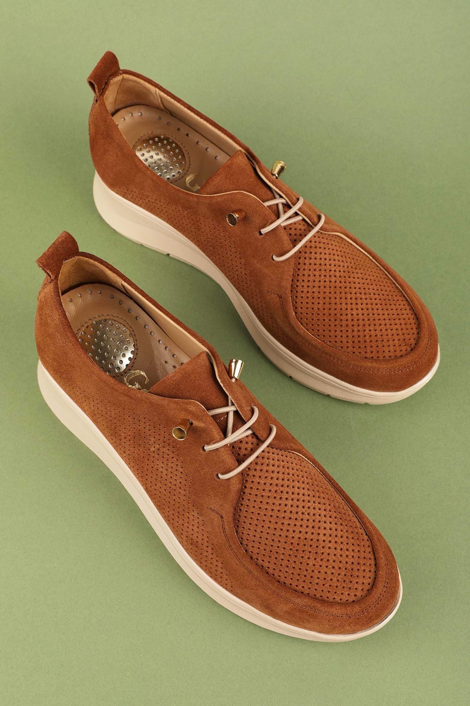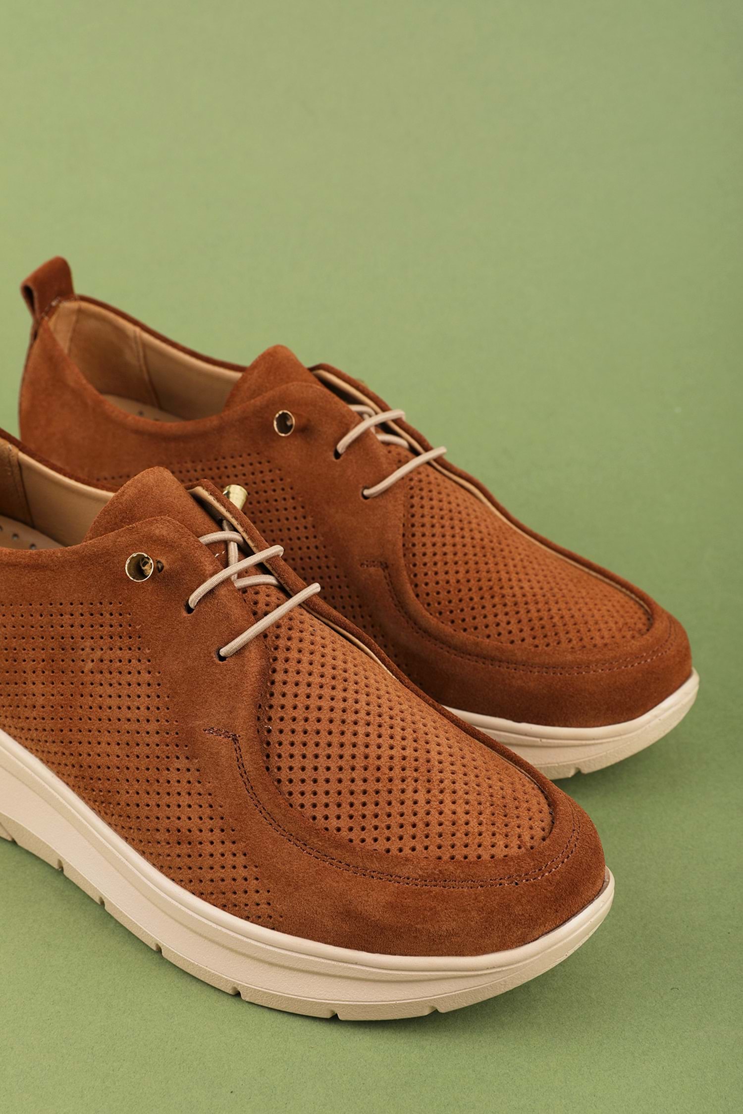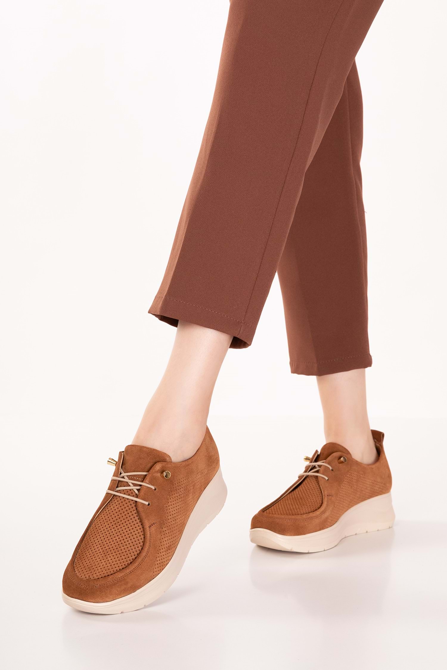 Özellikler • %100 hakiki süet deri • Delikli, nefes alabilen üst yüzey • Bağcıklı şık detay • Hafif ve esnek taban • Kaymaz taban yapısı • Günlük kullanıma uygun • Standart kalıp 4 cm topuk