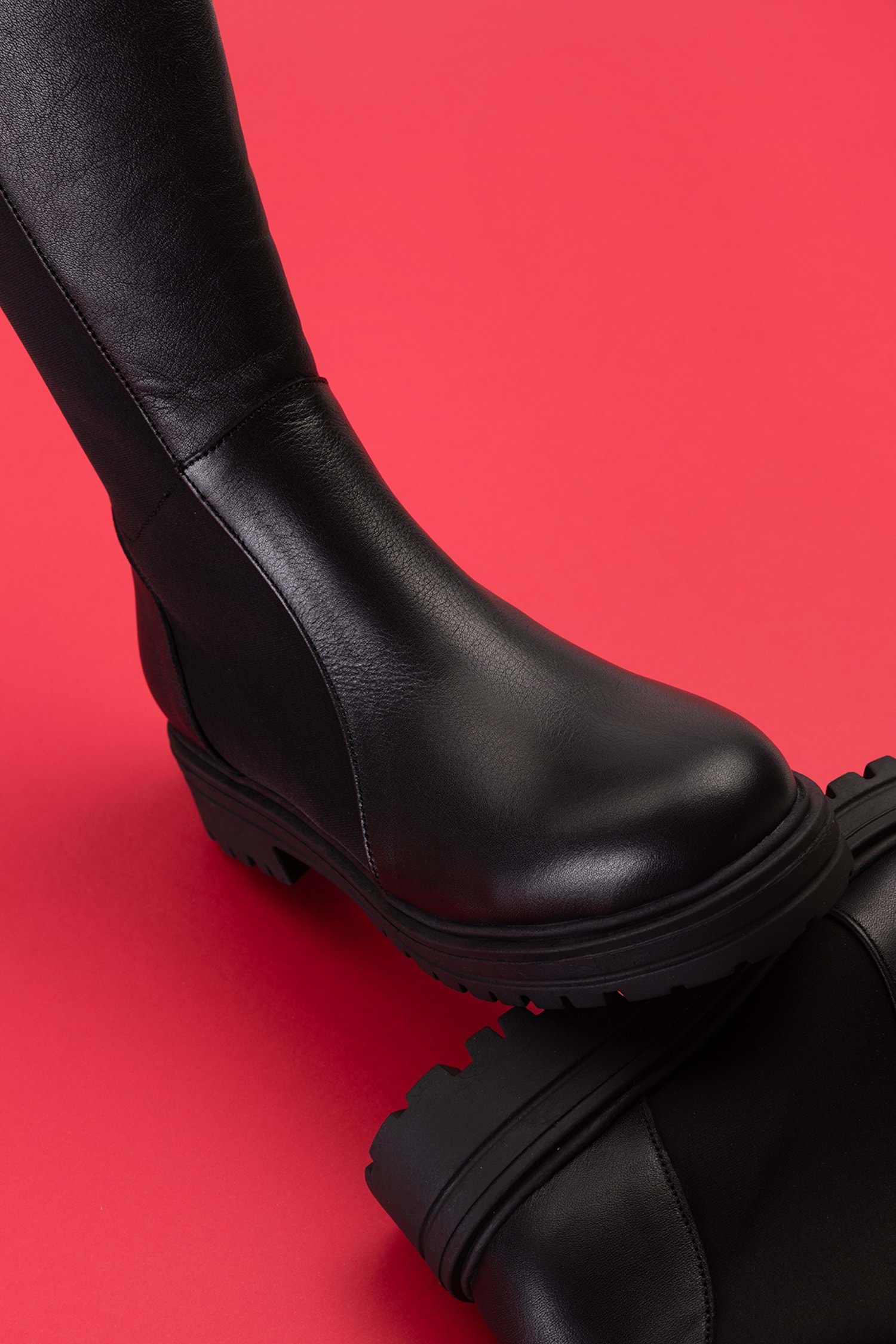 Gondol Hakiki Deri Arkası Latikli Esnek Binici Çizme anl.2708 - Siyah - 40