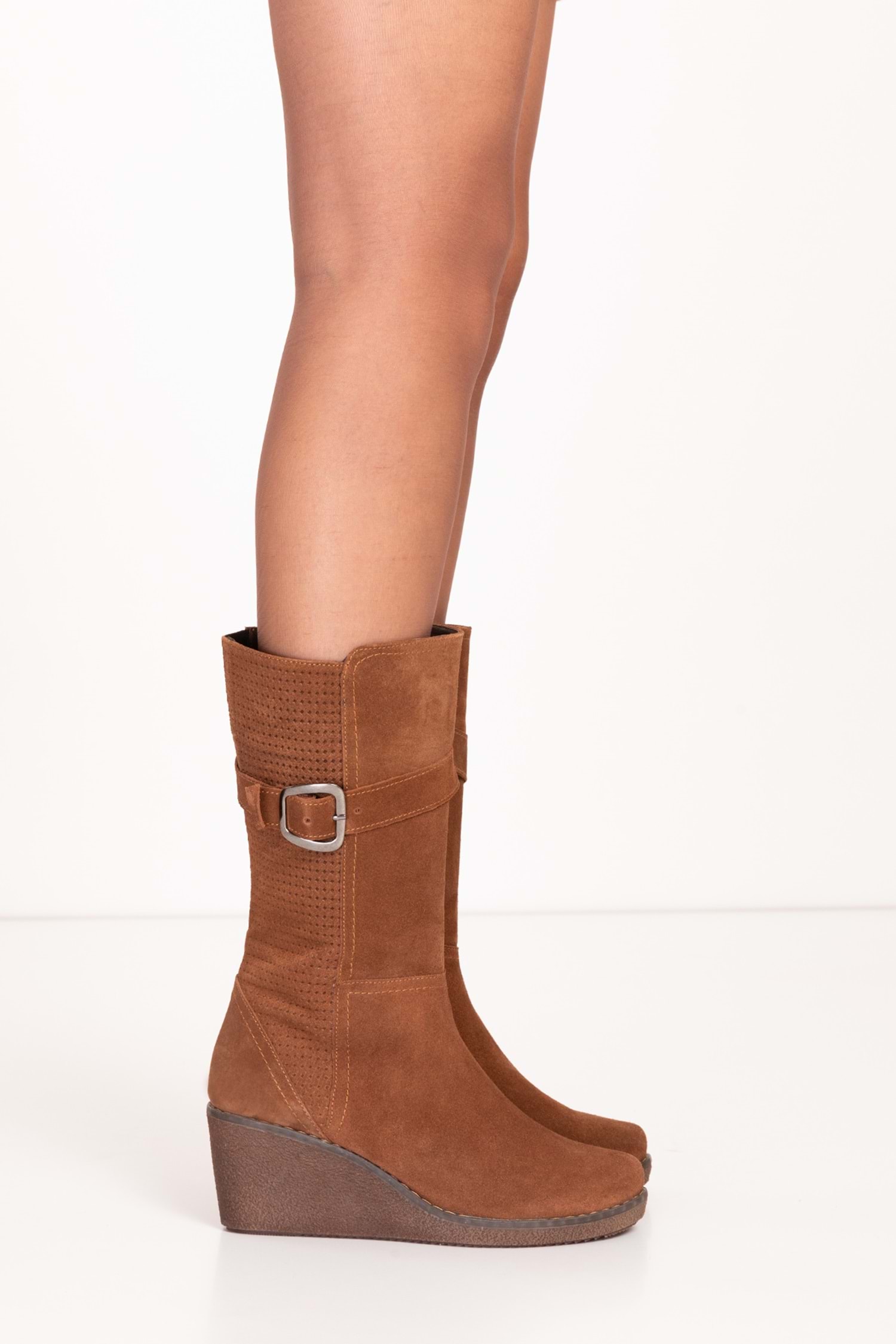Gondol Hakiki Deri Dolgu Topuklu Günlük Çizme ell.7063 - Taba Süet - 34