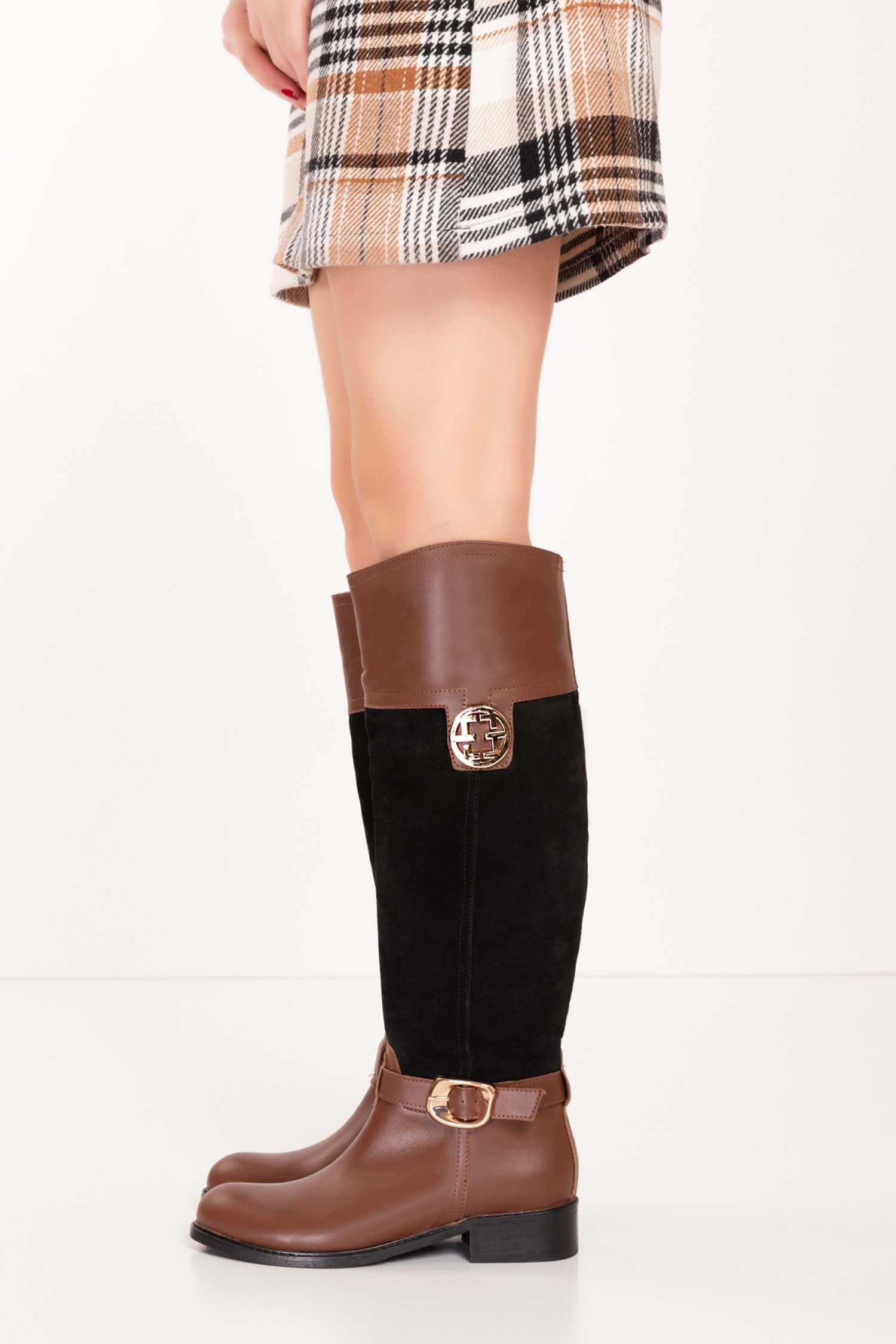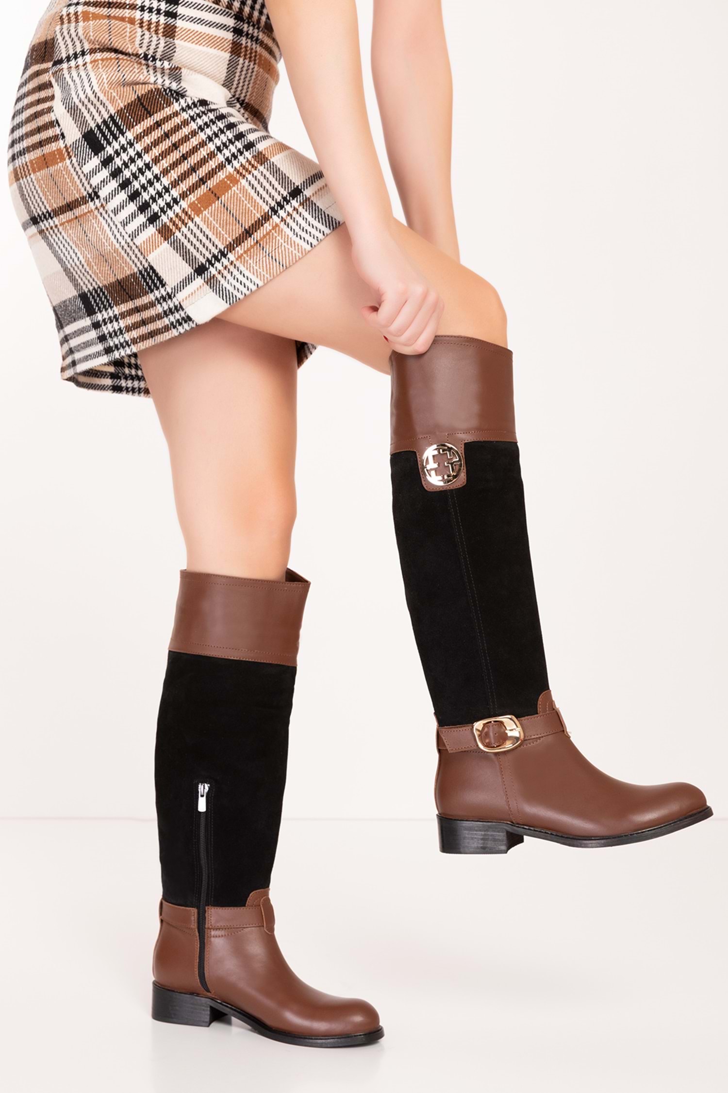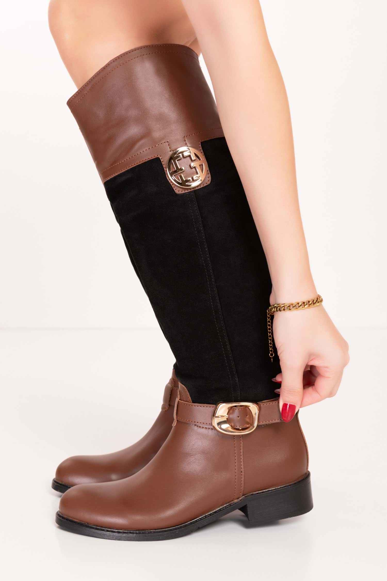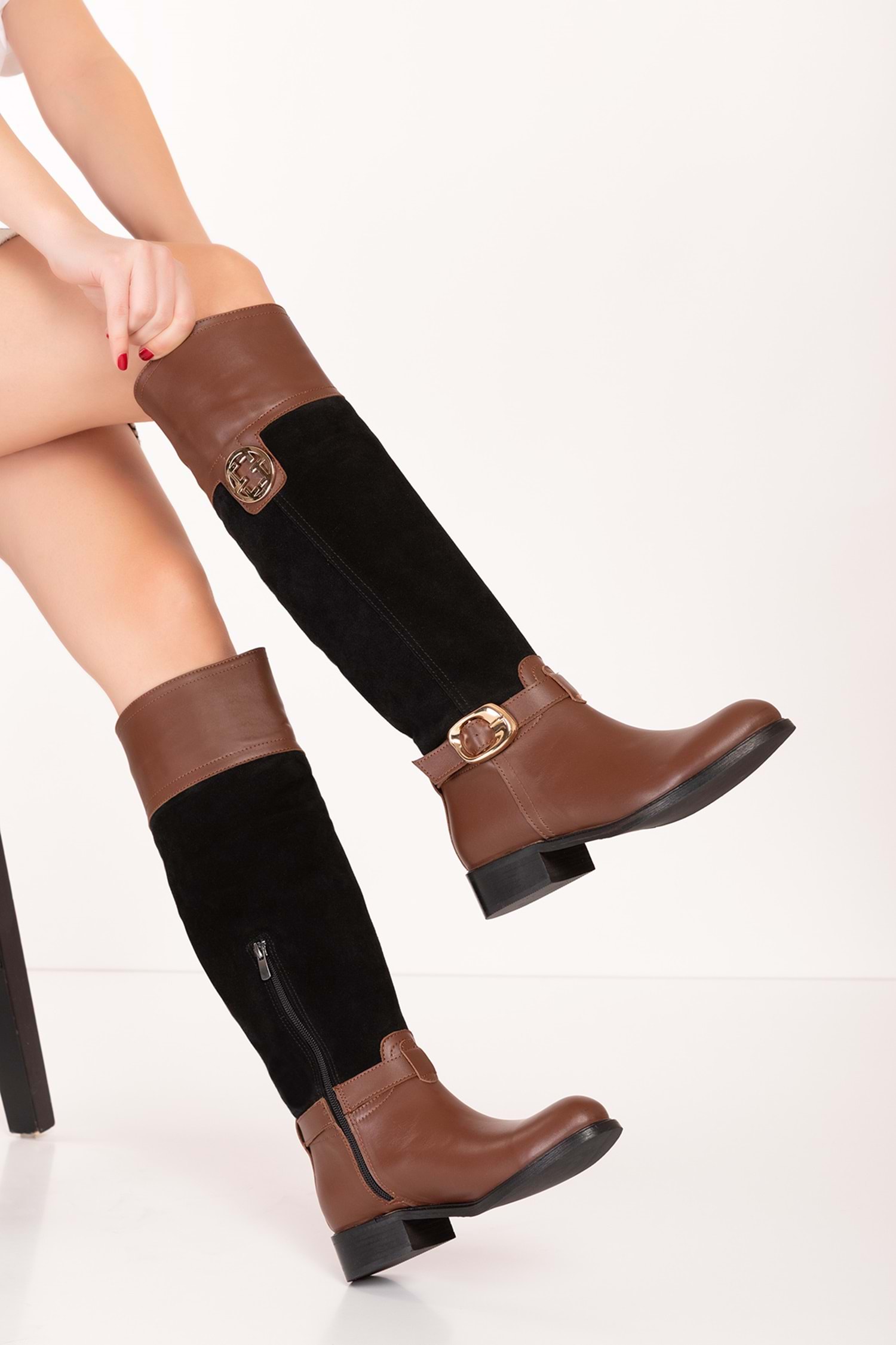 Hakiki Deri Topuklu Çizme İçi Sıcak Astar Topuk Boyu : 3 cm Konç : 39 cm Uzunluk : 48 cm Standart Kalıp
