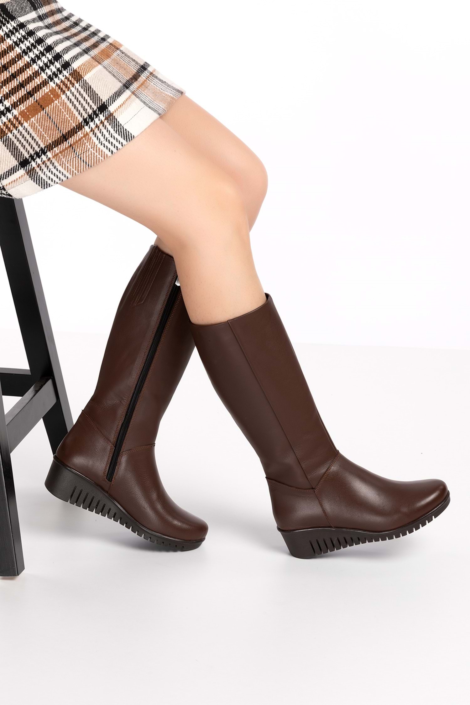 Gondol Hakiki Deri Sıcak İç Astar Dolgu Taban Çizme-gndl.2007 - Kahverengi - 36
