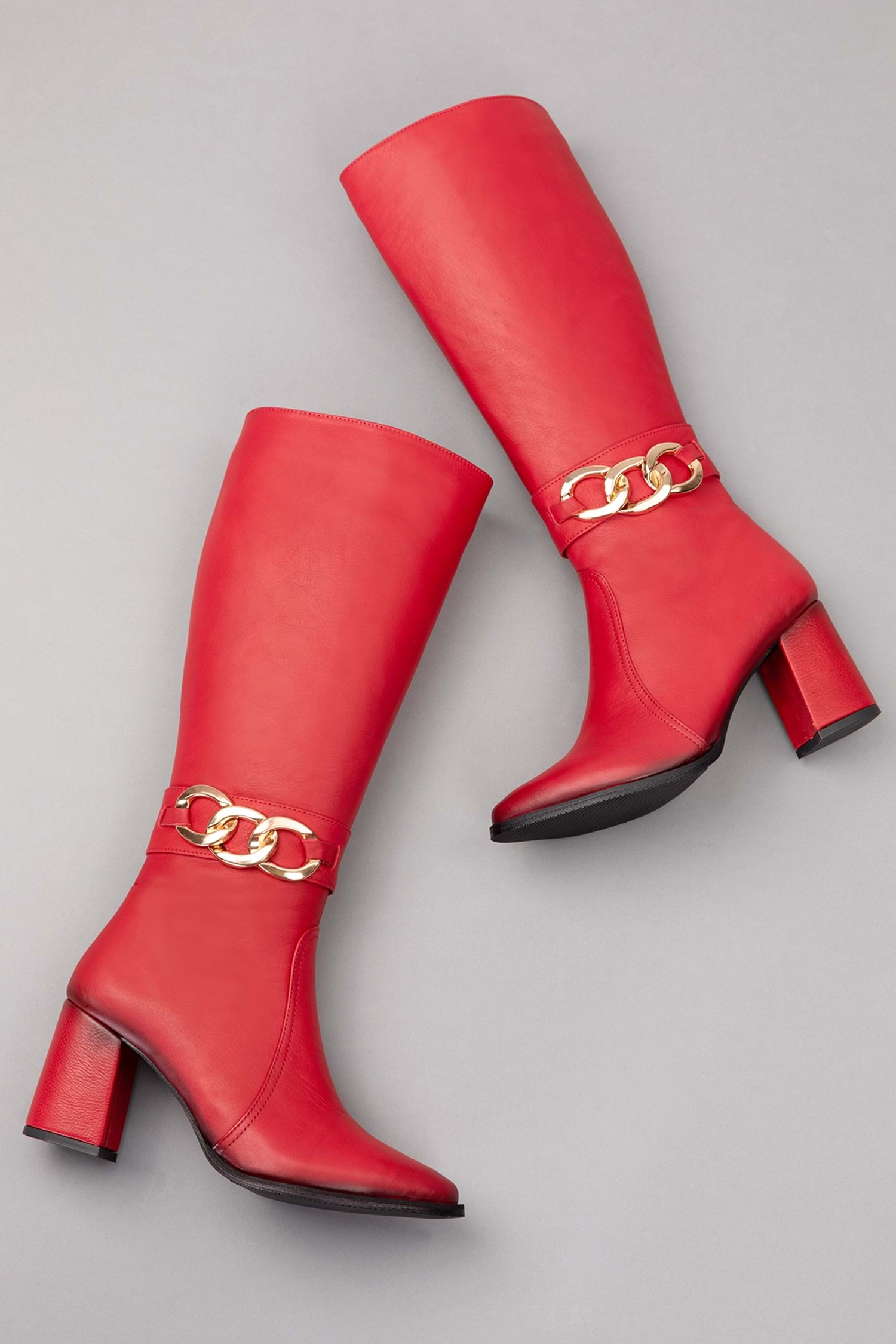 Gondol Hakiki Deri Zincir Detaylı Topuklu Çizme anl.2703 - kırmızı - 42
