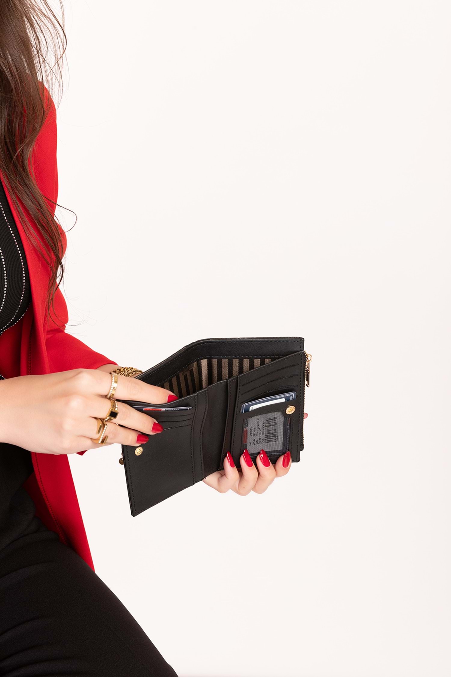 Genişlik : 15 cm Yükseklik : 9,5 cm Derinlik : 2 cm İç Yapı Özellik : Üç Bölmeli / Fermuarlı Orta Bölme Taşıma/Tutuş Şekli : ELDE Kapama Özelliği : FERMUARLI / MIKNATISLI Kart Kapasite : 8 Adet Kartlık / 2 Adet Para Göz