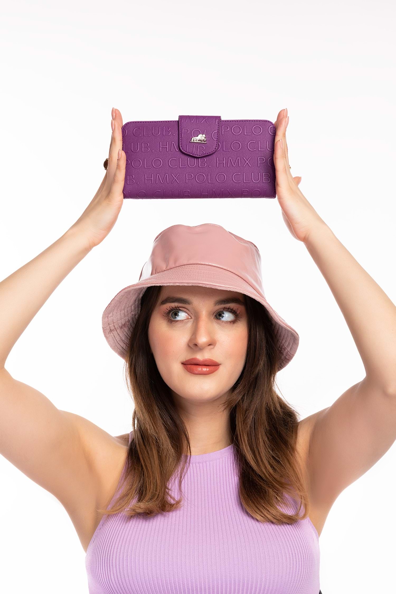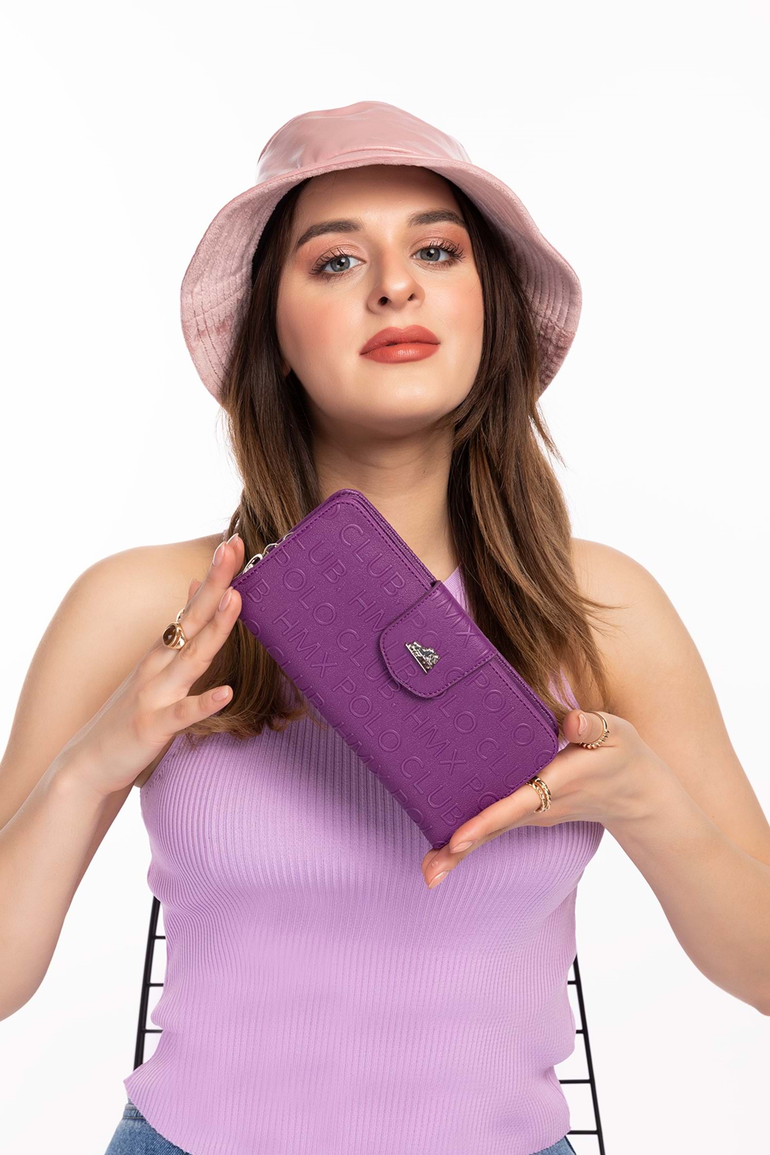 Gondol Hmx Büyük Boy Lüks Şık El Cüzdanı Hmx.370 - Mor Yazı