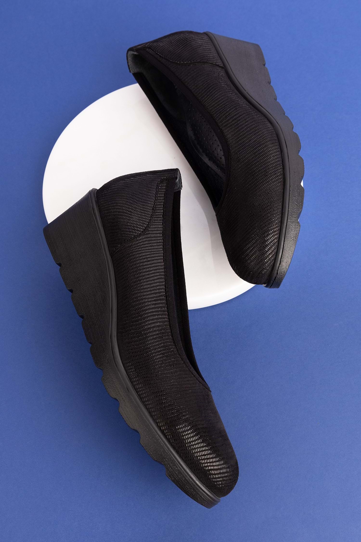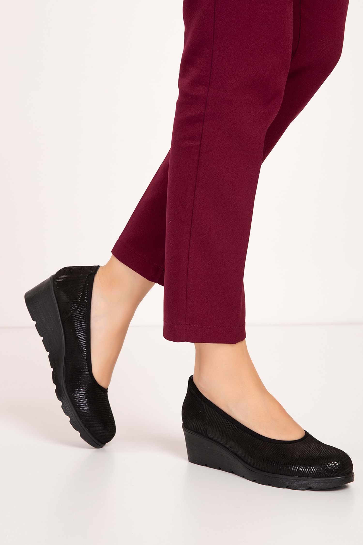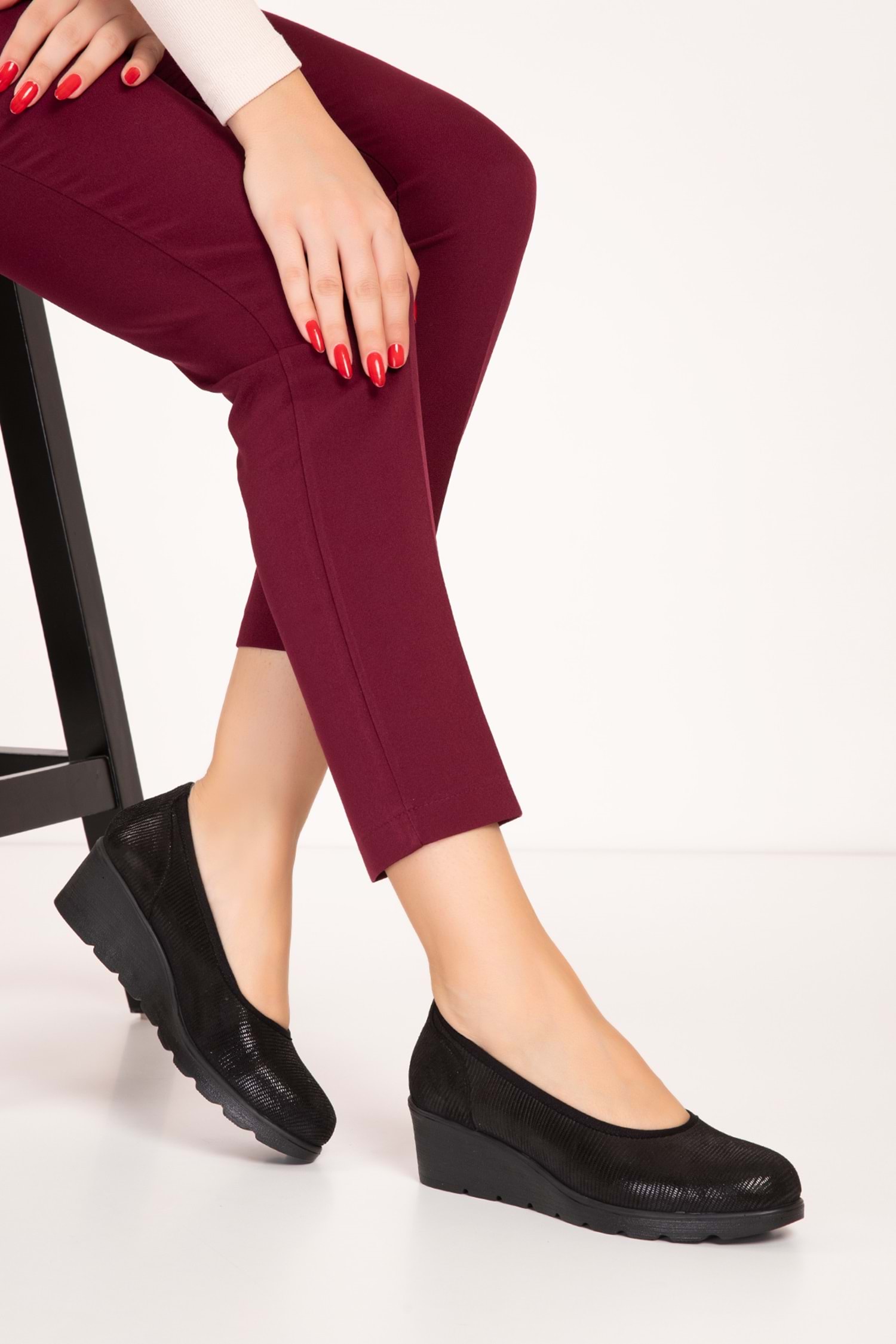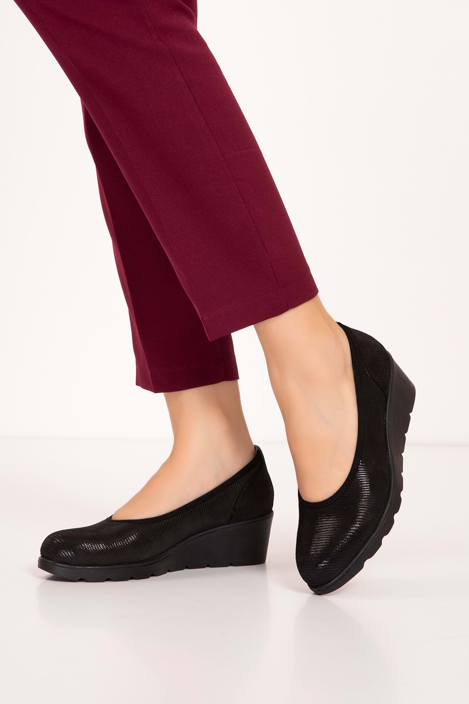 Gondol Hakiki Deri Dolgu Topuk Günlük Anne Ayakkabı ell.6806 - Siyah İguana - 36