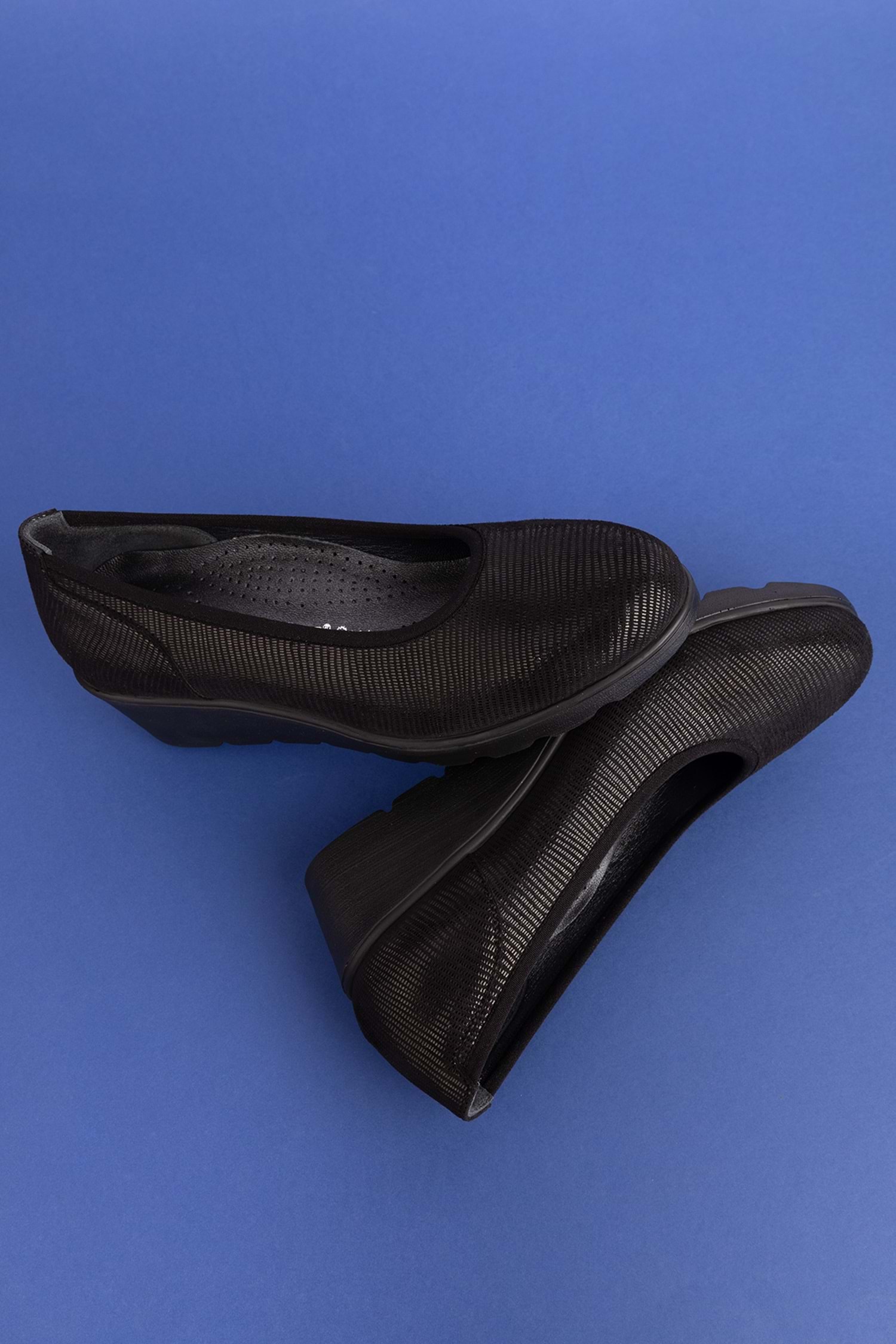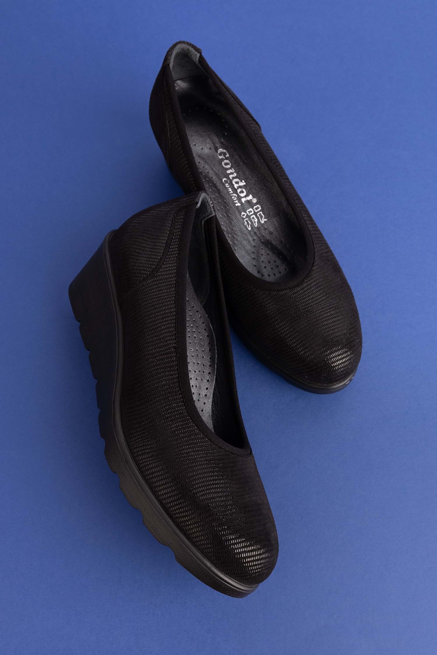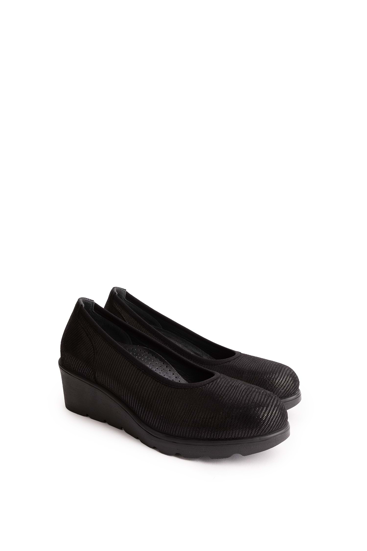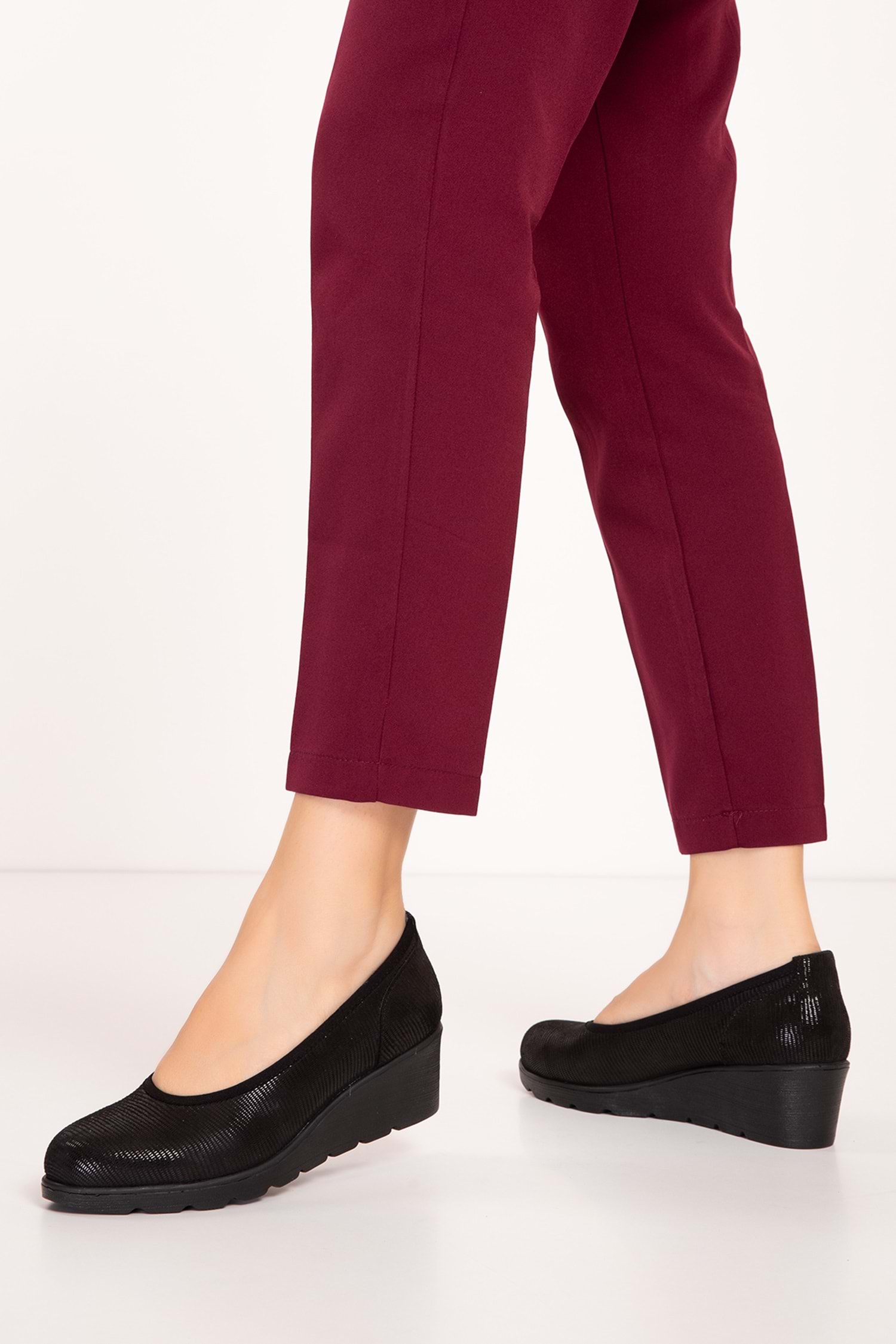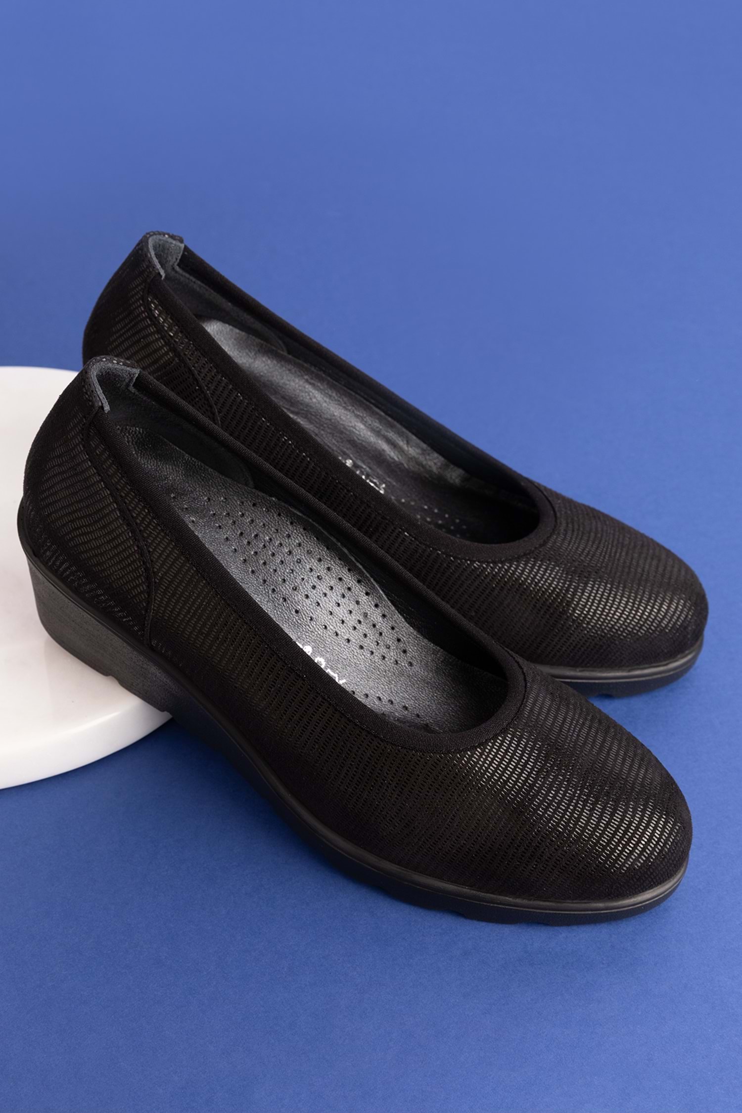 Gondol Hakiki Deri Dolgu Topuk Günlük Anne Ayakkabı ell.6806 - Siyah İguana - 36